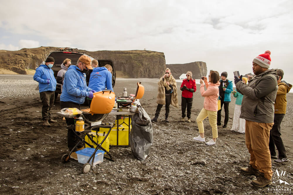 Have you worked up an appetite yet? This Iceland May wedding group did too, so on with lunch! But what kind of lunch experience can you have in remote areas of Iceland? After all, our locations do not come with bathrooms or cafes!