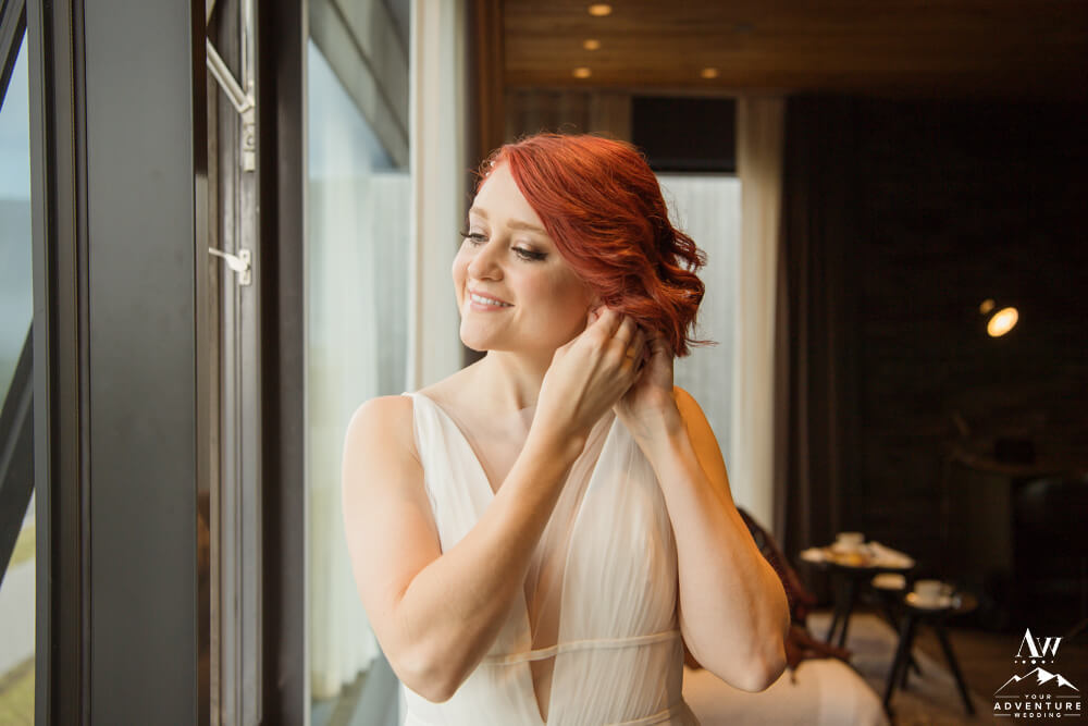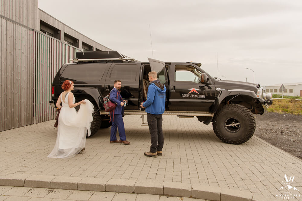 The morning began with a quite summer sunrise in the town of Vik. Our hairstylist, Iceland wedding photographer, and makeup artist all began doing their thing while Warren and Stacie relaxed. By 8am it was time to grab their “go bags” and embark on their long awaited experience driven elopement adventure!