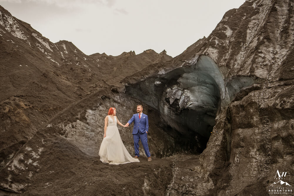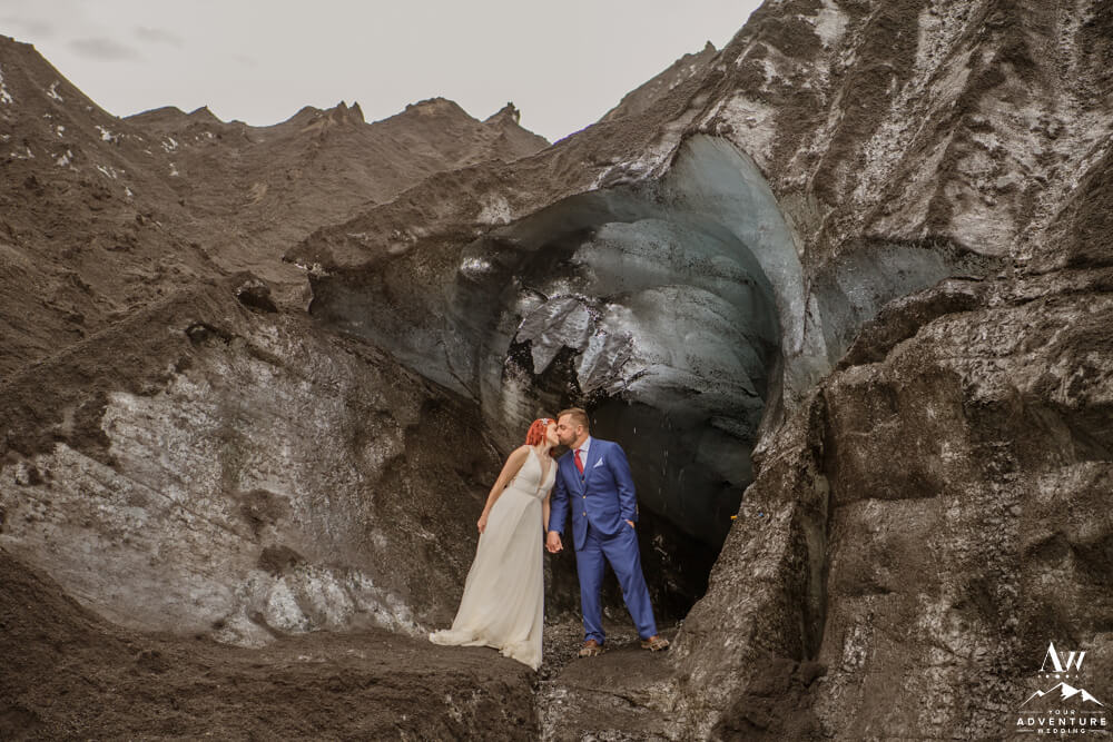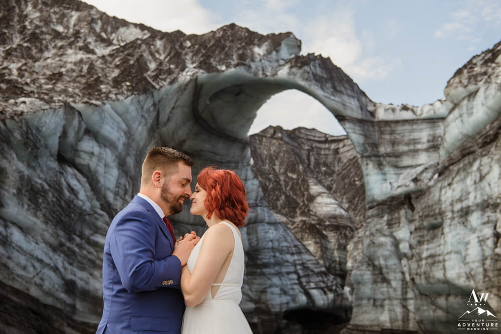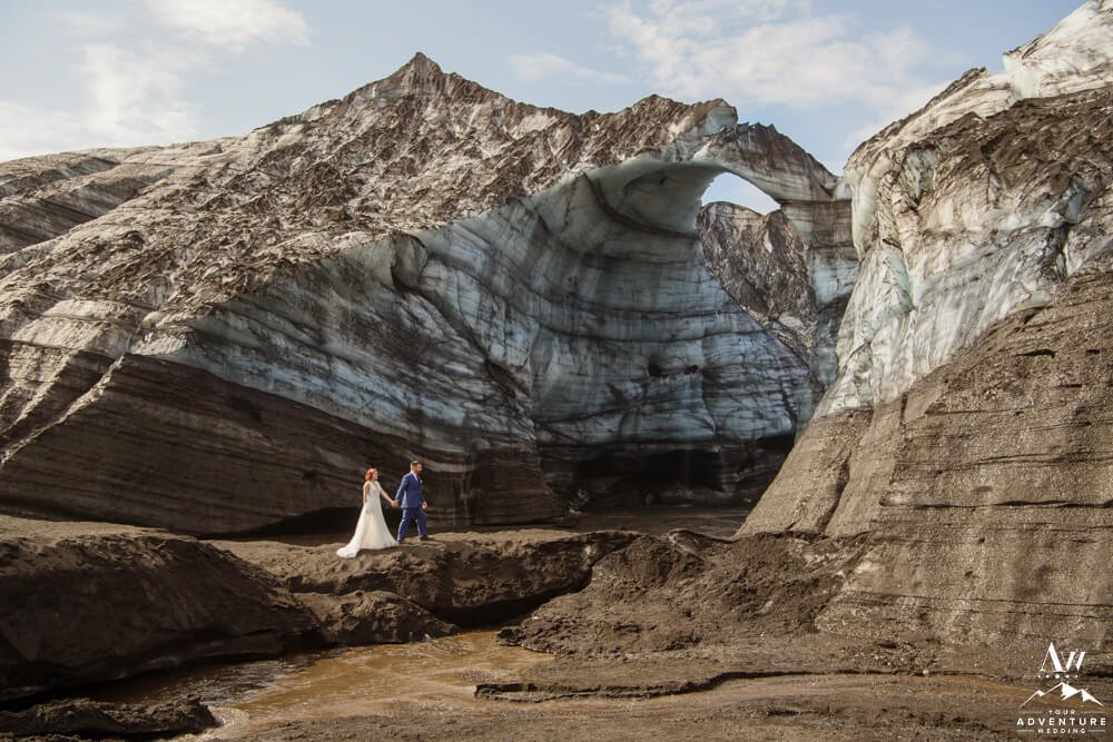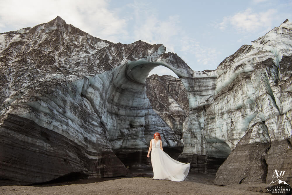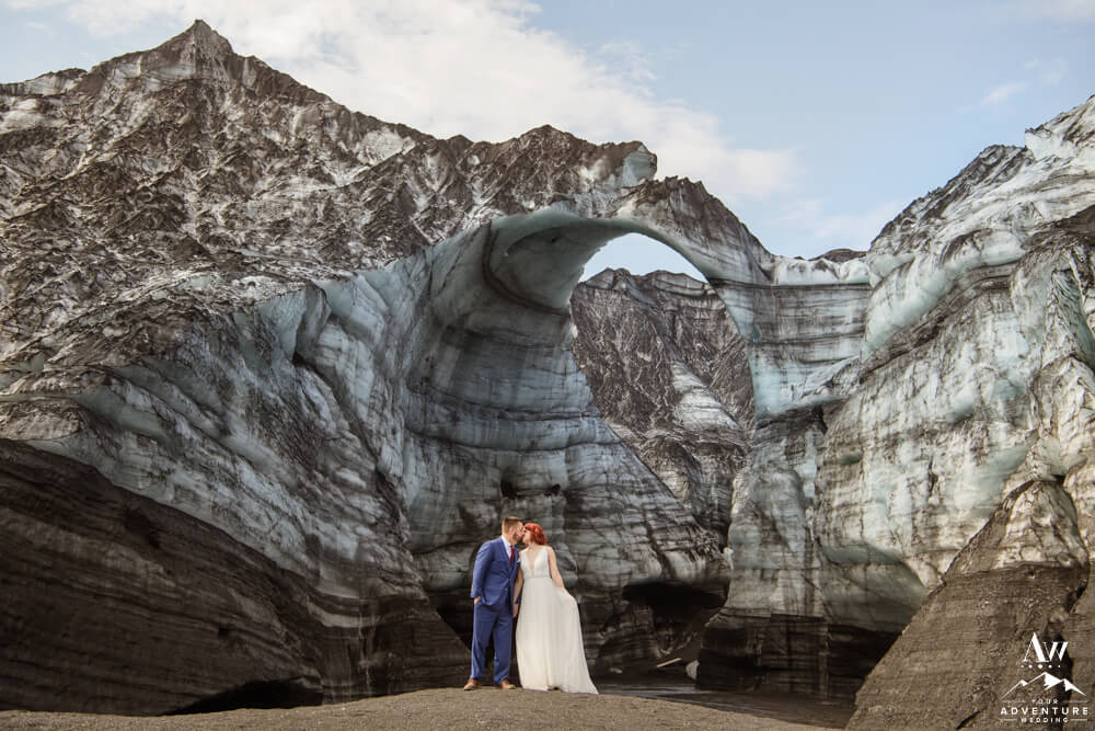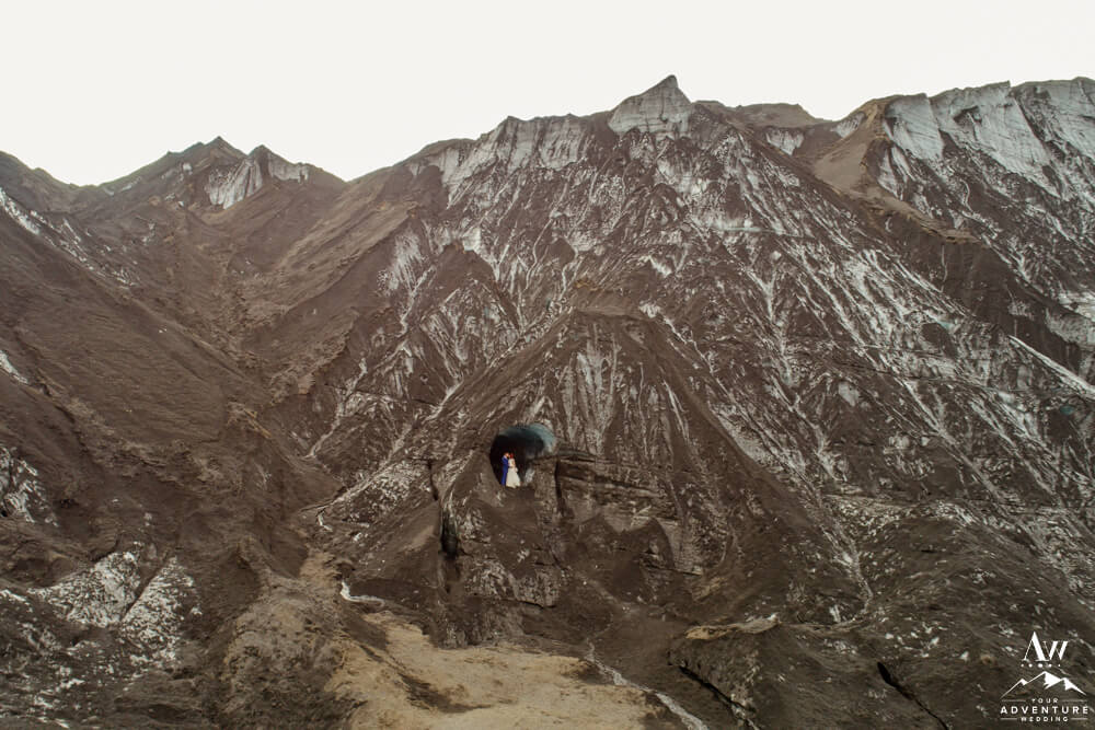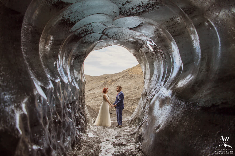 Glaciers are constantly changing. One of the many reasons, our Iceland Wedding Planner team scouts weekly. Because things change from week to week! We were thrilled to see a magnificent arch still standing tall the week leading up to their experience driven elopement. Seeing it in person and watching them witness it though was super special. For example, there was very much a otherworldly vibe that resonated.