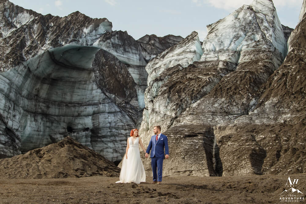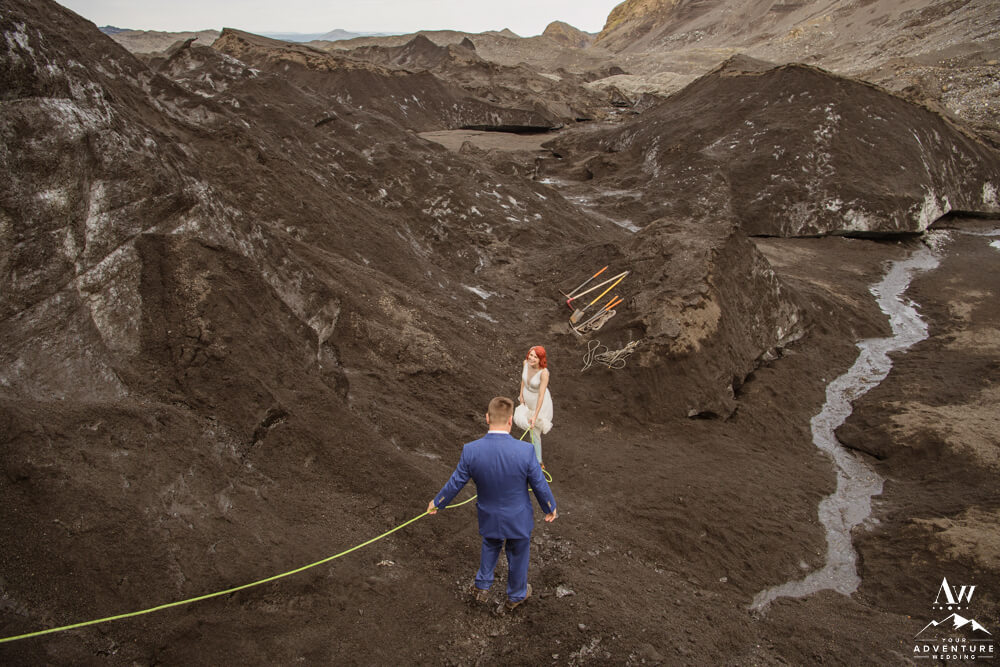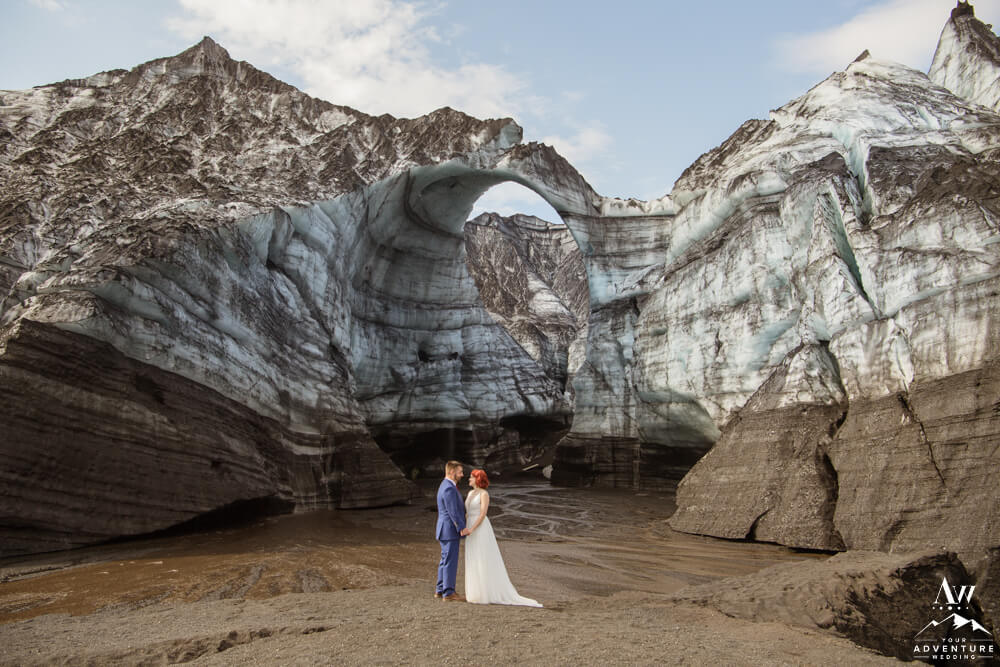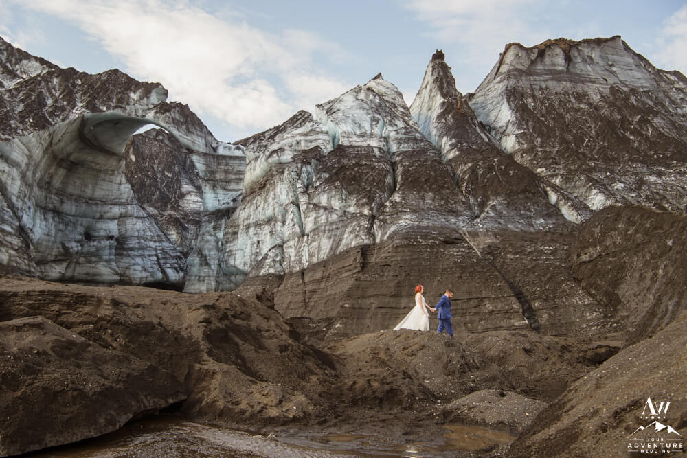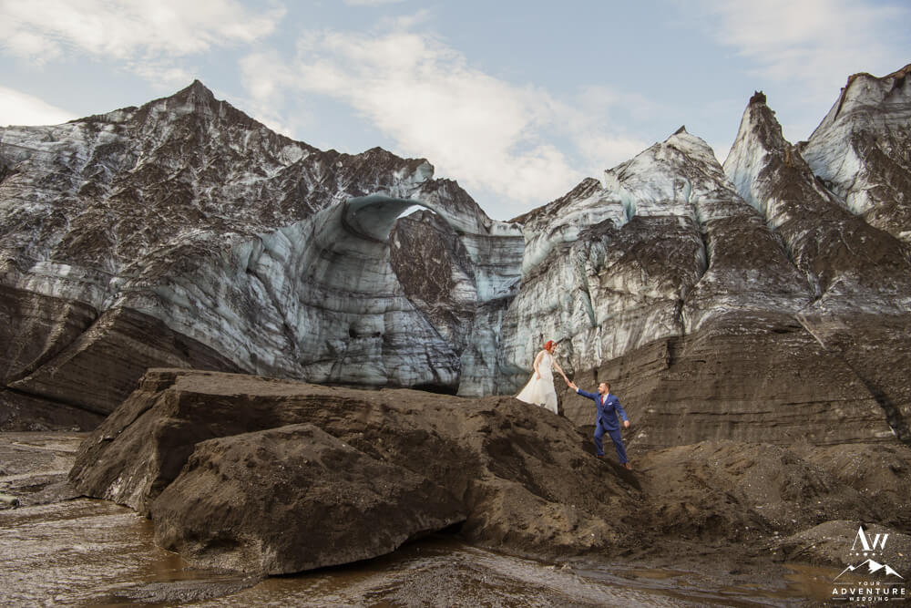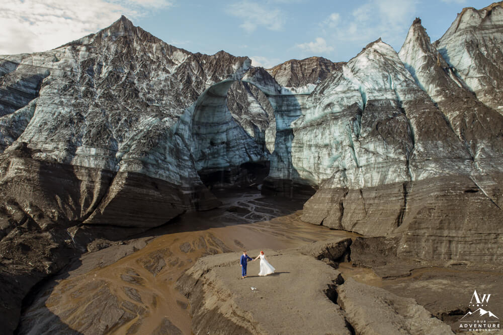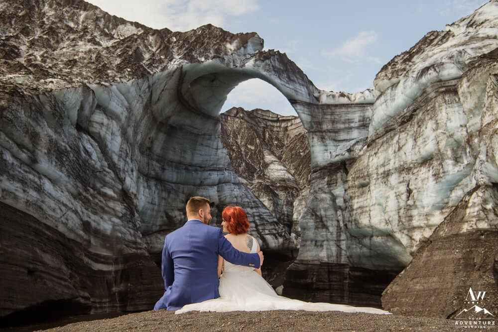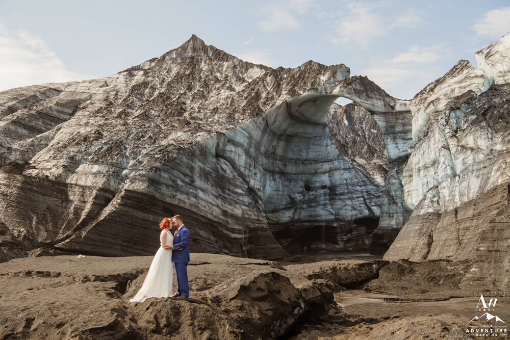 Glaciers are constantly changing. One of the many reasons, our Iceland Wedding Planner team scouts weekly. Because things change from week to week! We were thrilled to see a magnificent arch still standing tall the week leading up to their experience driven elopement. Seeing it in person and watching them witness it though was super special. For example, there was very much a otherworldly vibe that resonated.