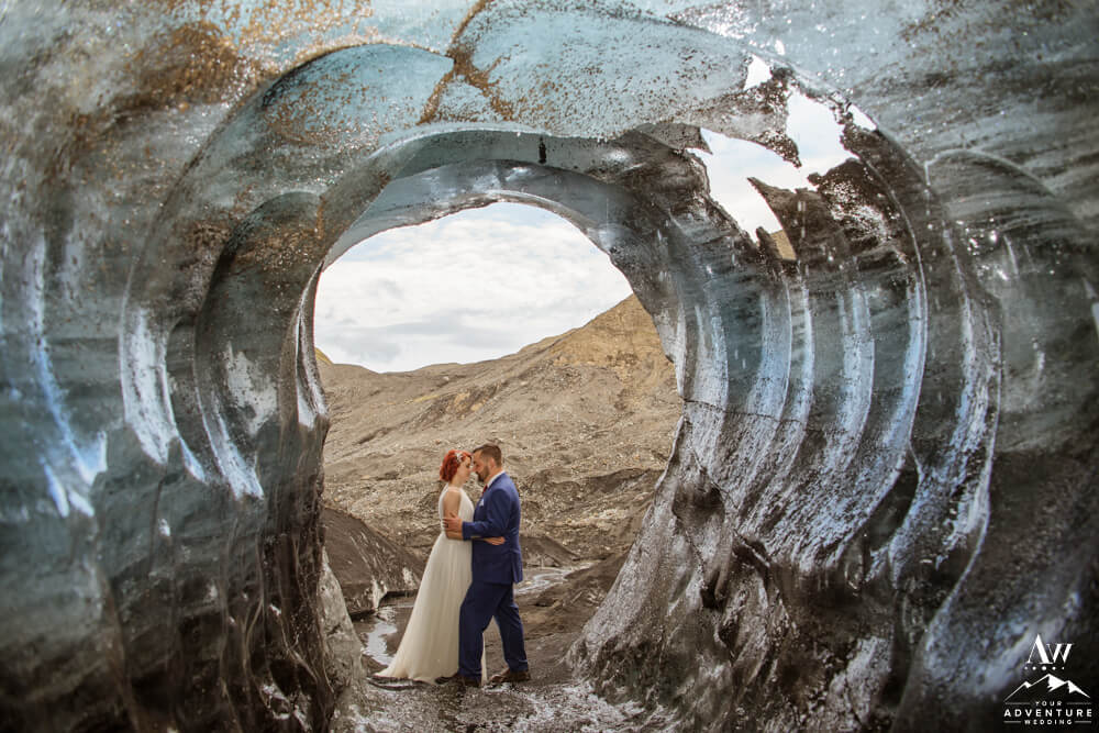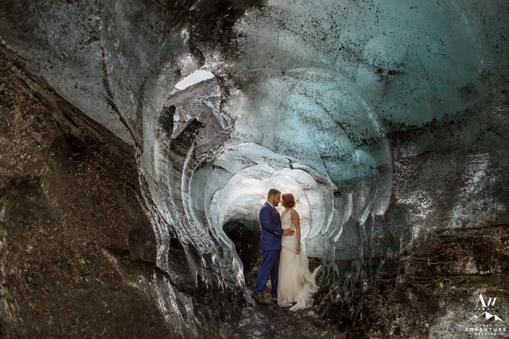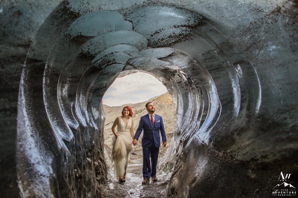 After their journey to the ice arch, it was time to move on to an ice cave! Although small, it was stunning in its own way. I might even dare to say, the perfect size for an experience driven elopement!