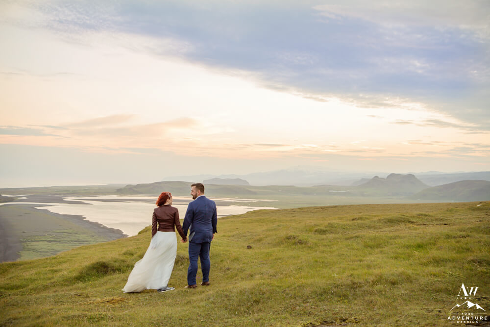 We are huge advocates of ending the night with something if our couples energy level remains high. Doesn’t have to be crazy… Maybe it’s simple shots in front of a fireplace, romantic midnight sun photos at a nearby spot, sunset photos, or crafted nighttime photos. Well the weather was fantastic after Warren and Stacie finished dinner so we headed up on top of a nearby mountain for sunset photos! Glorious way to end their experience driven elopement, truly! Hope their jampacked Iceland wedding leaves you inspired to plan one with your own twist… Feel free to contact us if discovering private property locations sounds exciting to you!