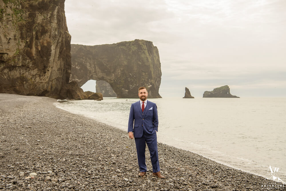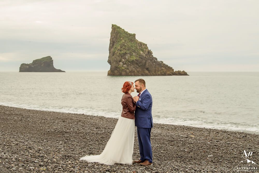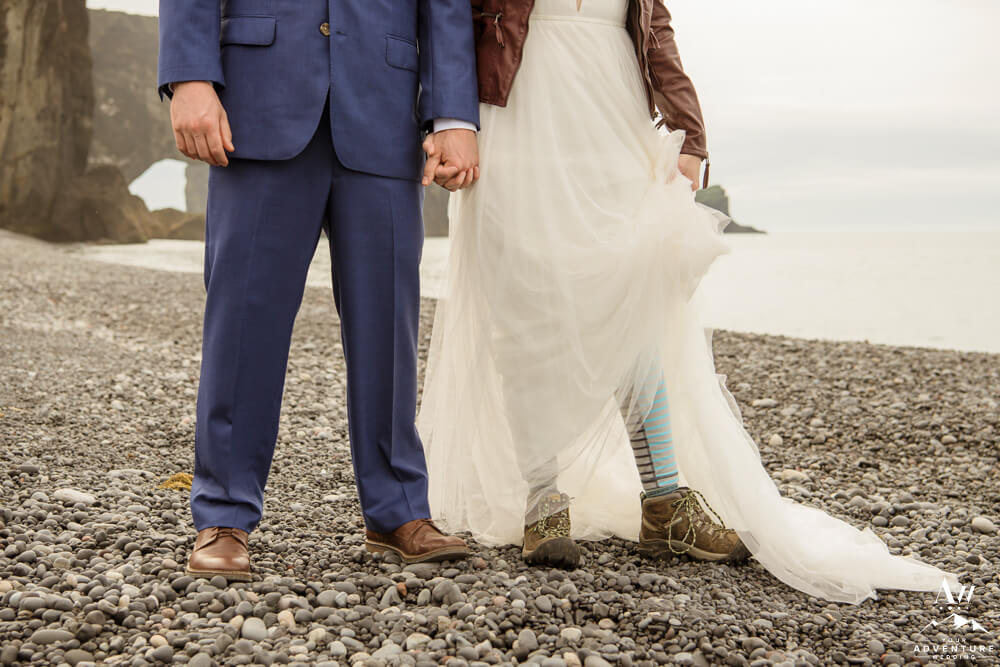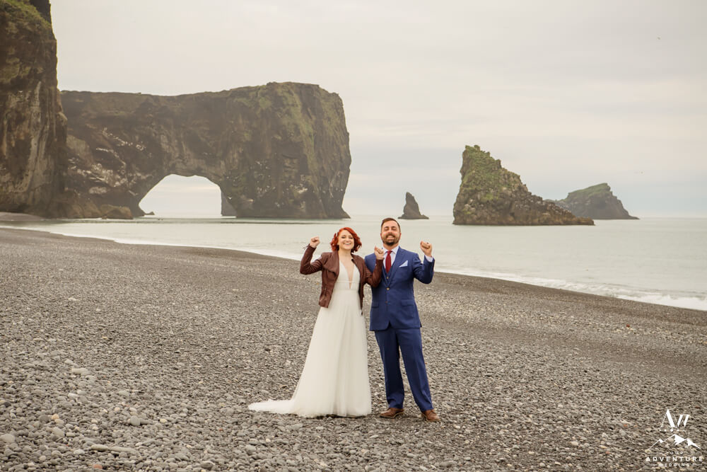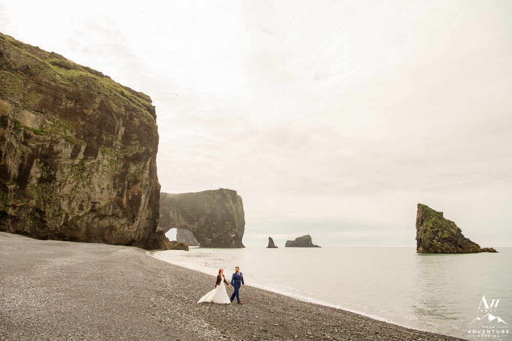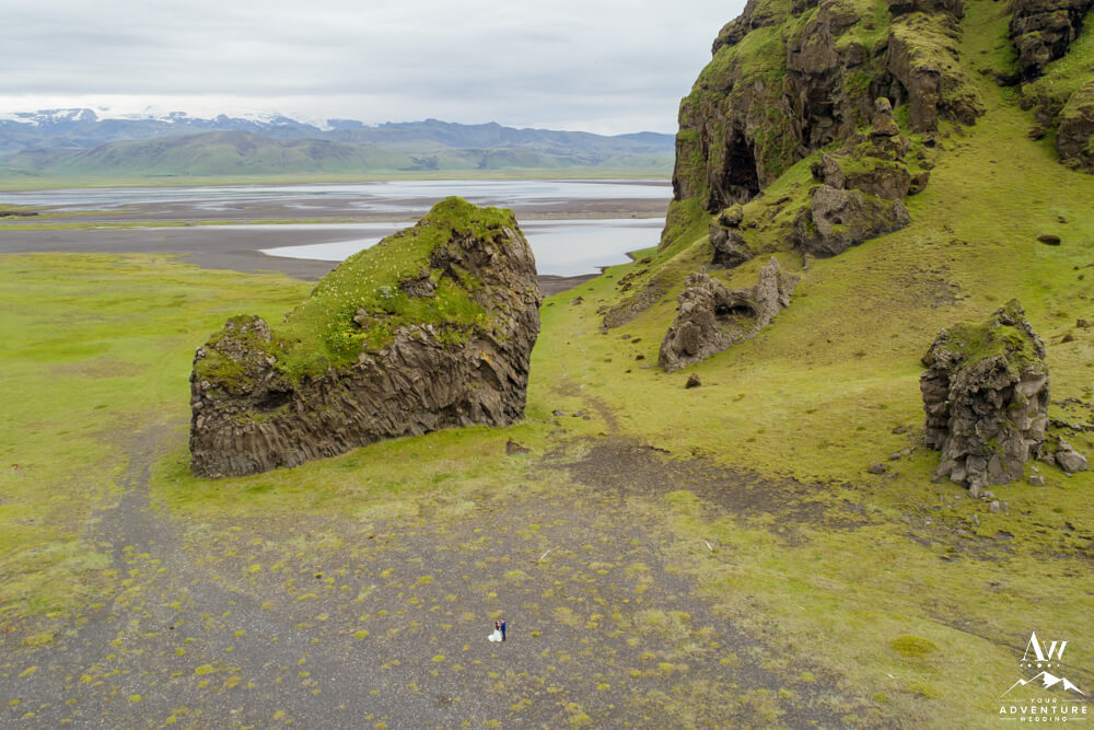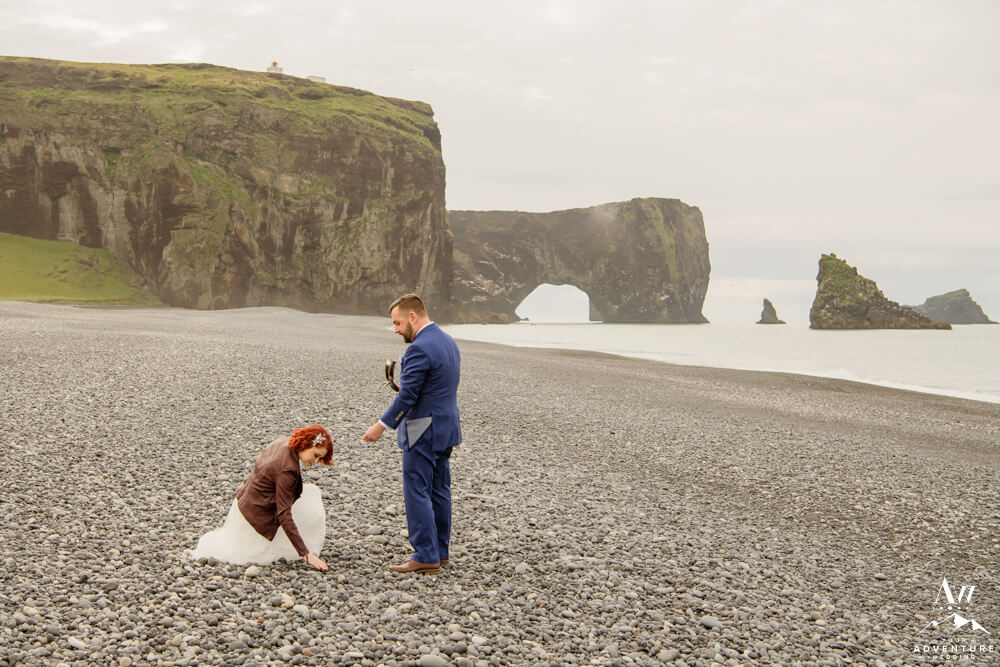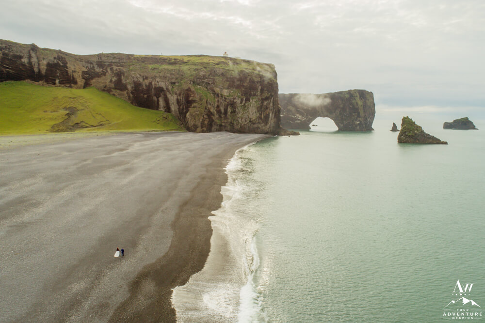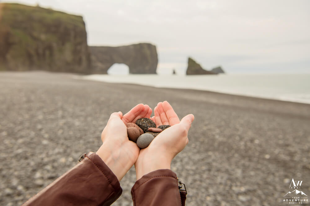 Following their Iceland beach wedding, these two collected basalt stones. And for sure marveled over the beauty and privacy… For example, they are part of the few in the world who get to experience the view from this direction of Dyrhólaey up close! Fair to say our Iceland elopement photographer was in total bliss doing the drone shots too! What a stunning perspective!