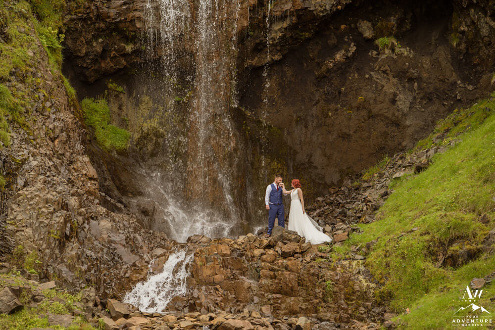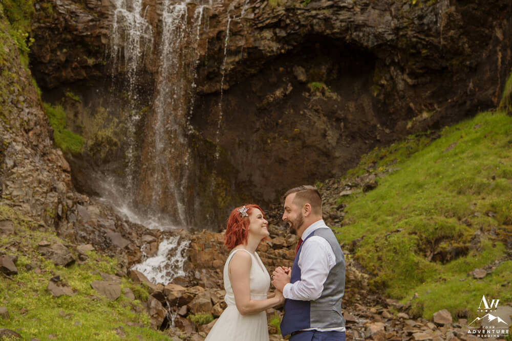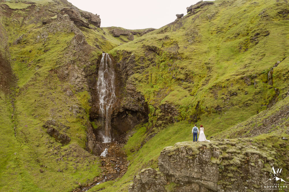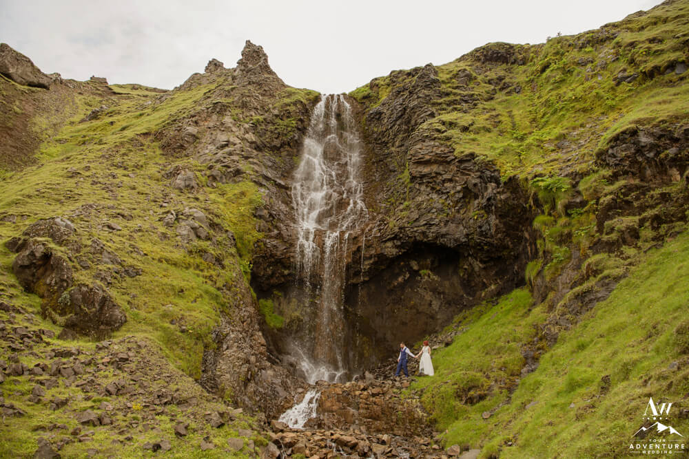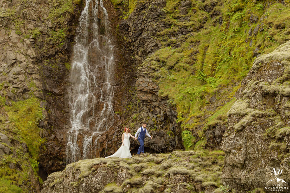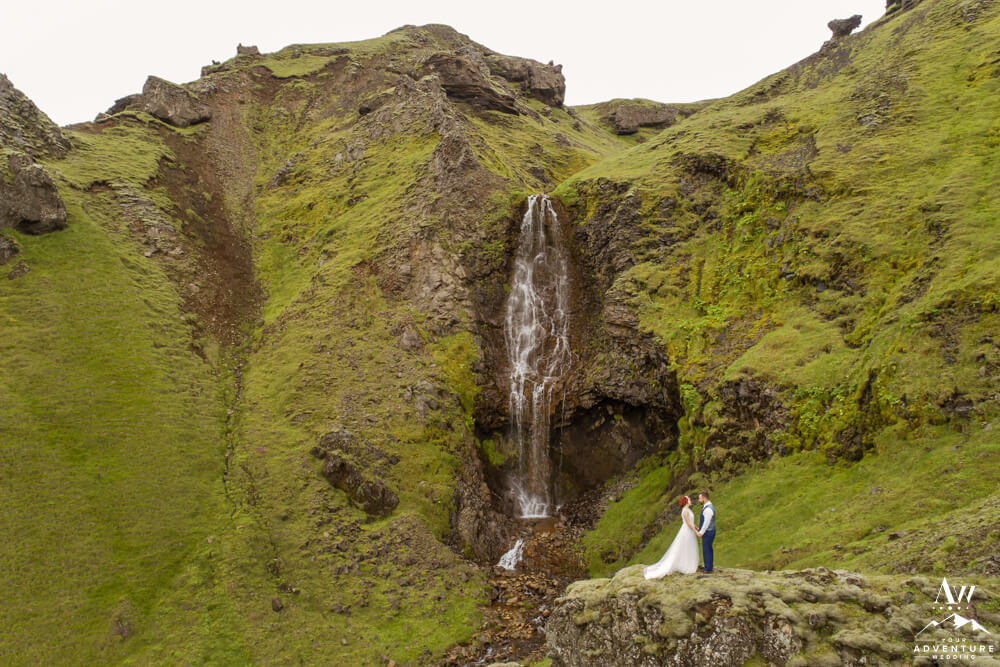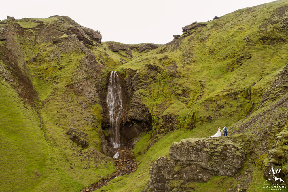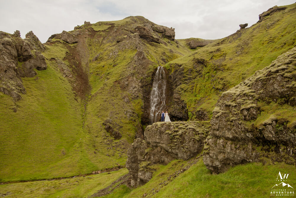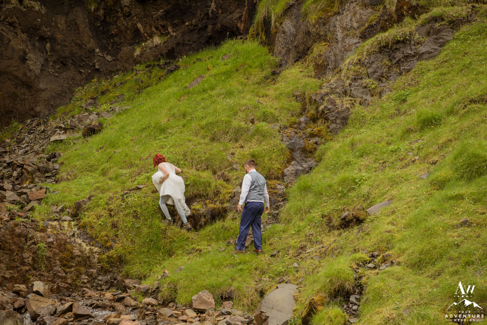 Sometimes getting to the location is half the fun! But when Stacie and Warren showed up at the next stop the waterfall took their breath away. And as they got closer and closer it somehow kept getting better too!! Our Iceland elopement photographer rocked some super cool drone shots as well…