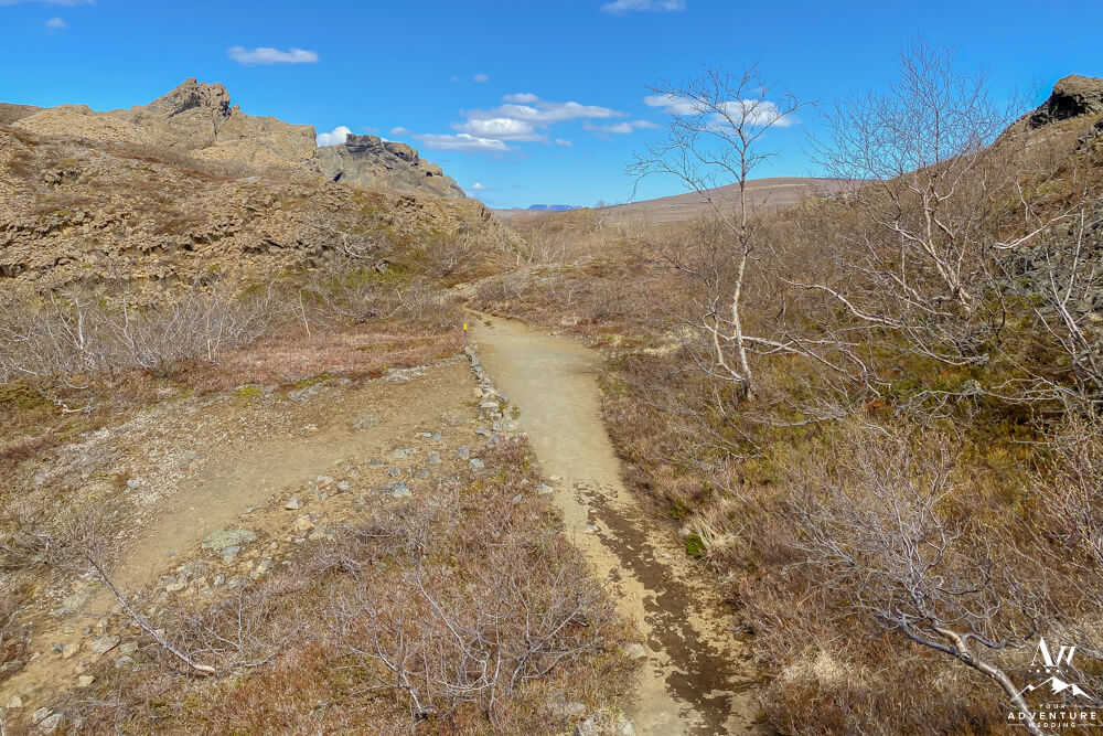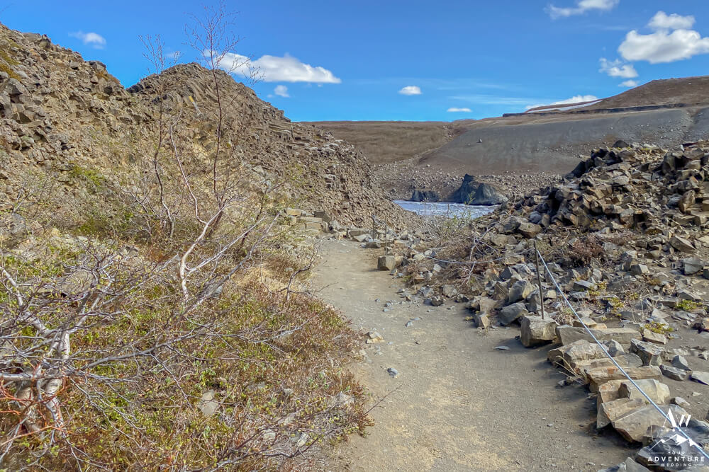 Next, you will make the turn from Road #862 and take the winding road to the left down towards the river. Furthermore, you’ll pass the campsite and finally arrive to the unmarked parking lot. When looking towards the river (named Jökulsá á Fjöllum), you’ll see the hiking path begin on the left hand side of the parking area.