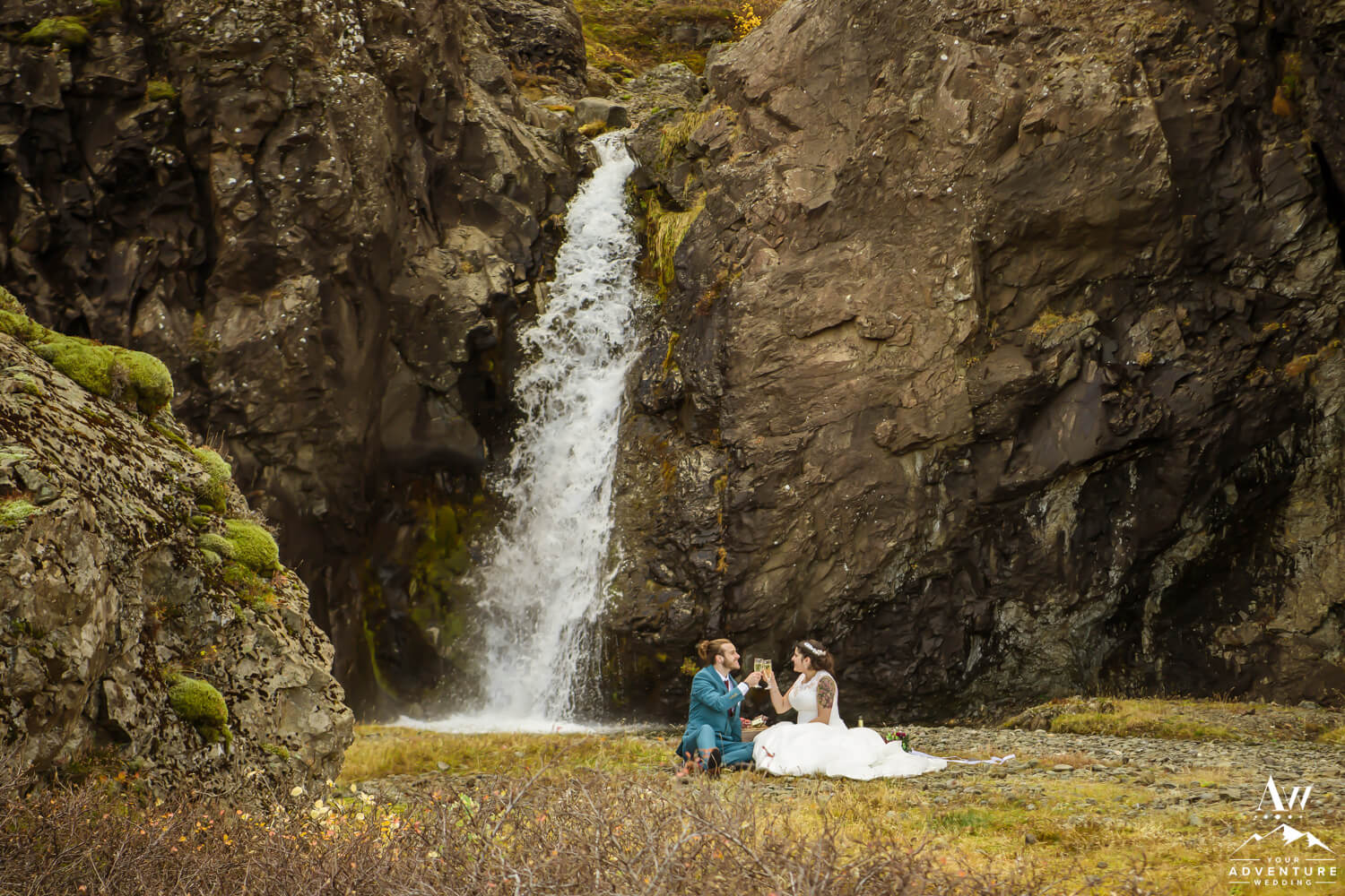 Warren and Stacie chose the seclusion and privacy of this little-known black sand beach to exchange their wedding vows. After an intimate beach ceremony, then raised a gin and tonic toast in a traditional Viking horn!
