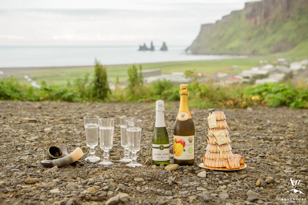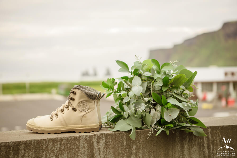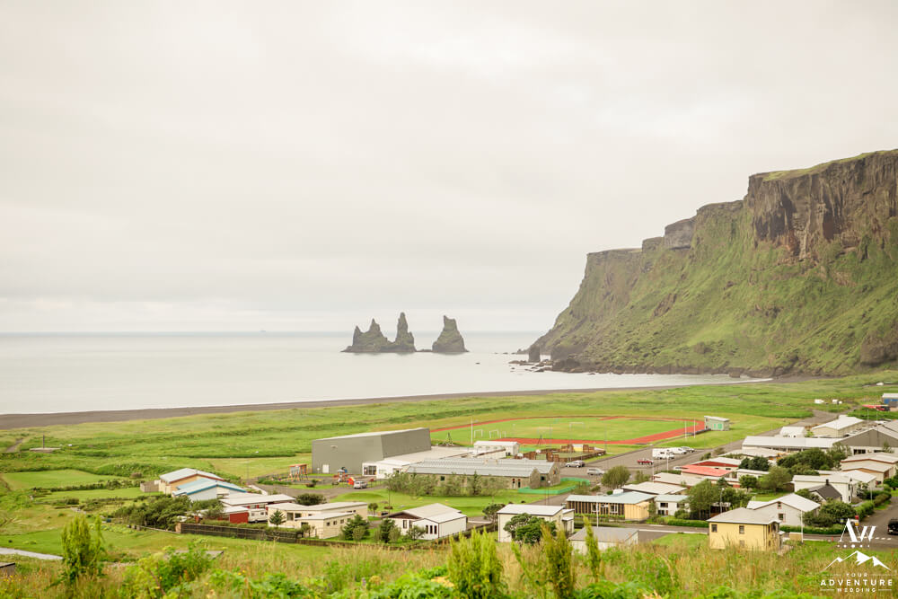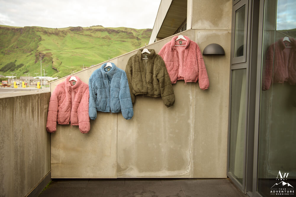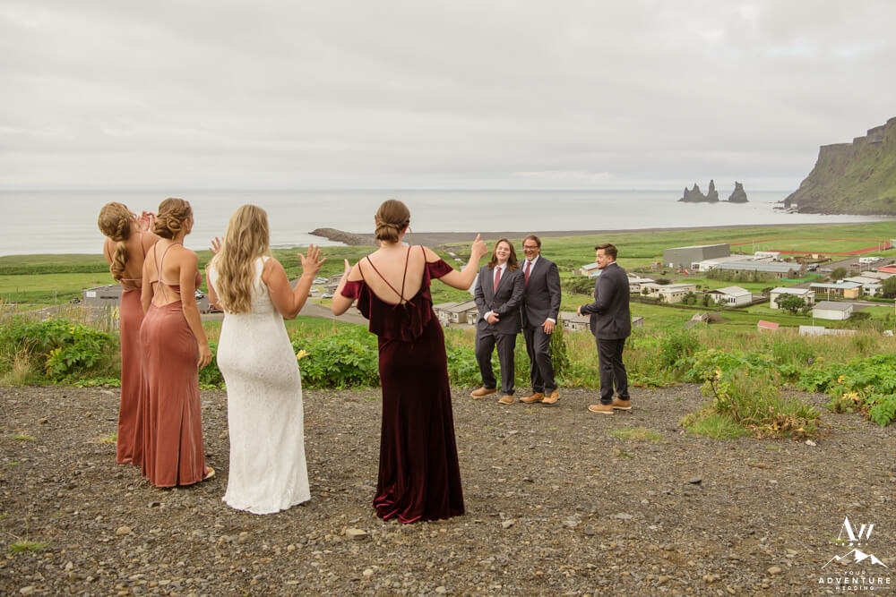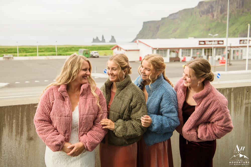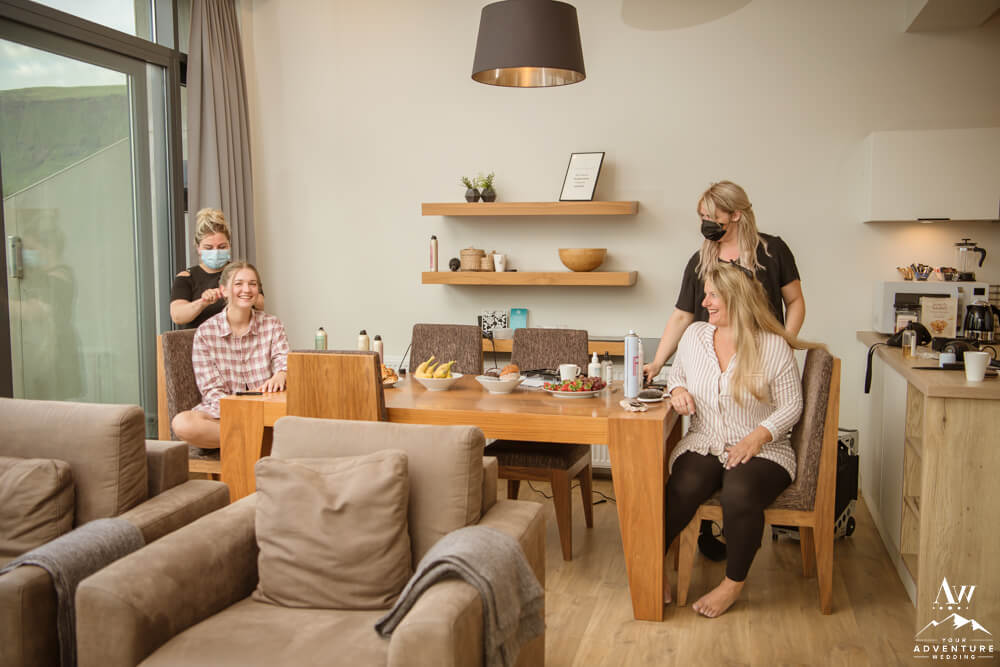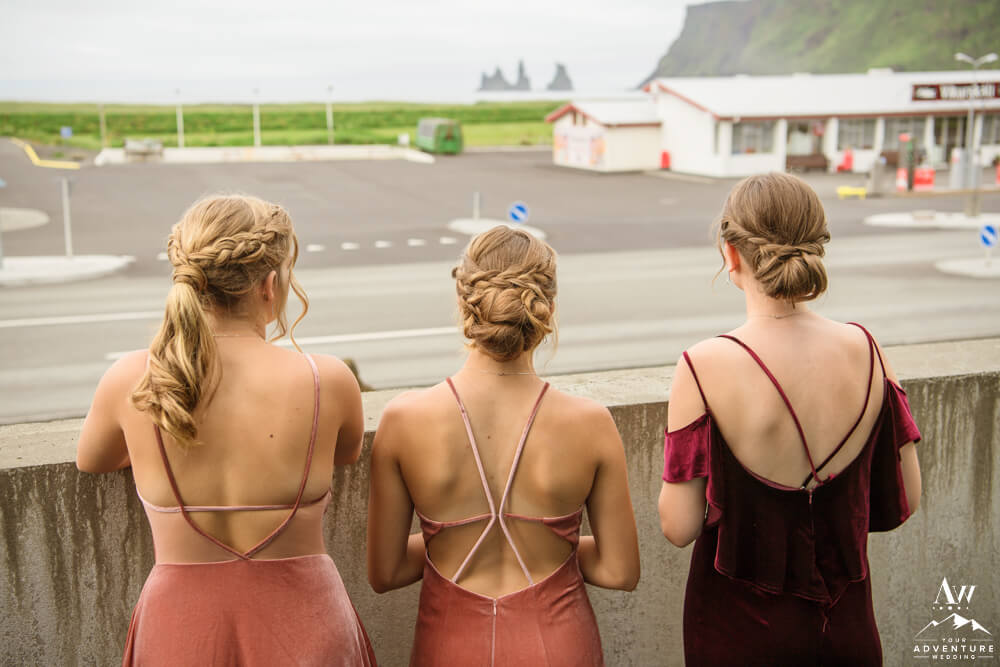 Plus the view from them might be one of the best in Vik! Seriously, what a cozy way to wake up on your wedding morning then with the view of the ocean and Reynisdrangar! Our Iceland wedding photographer went to work photographing all of the lovely details as our hair team also crafted some amazing styles on all of the ladies hair. After a few finishing touches, everyone grabbed their go bags for the day and headed up towards the Vik hilltop church!