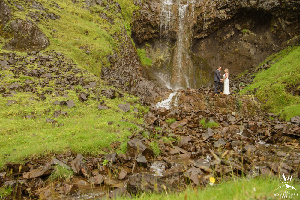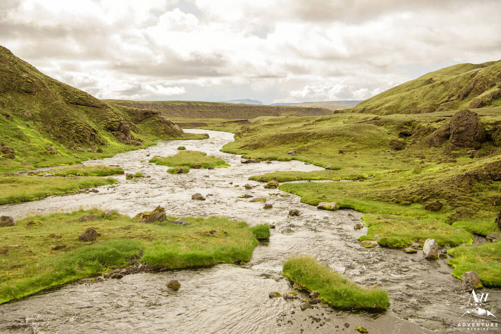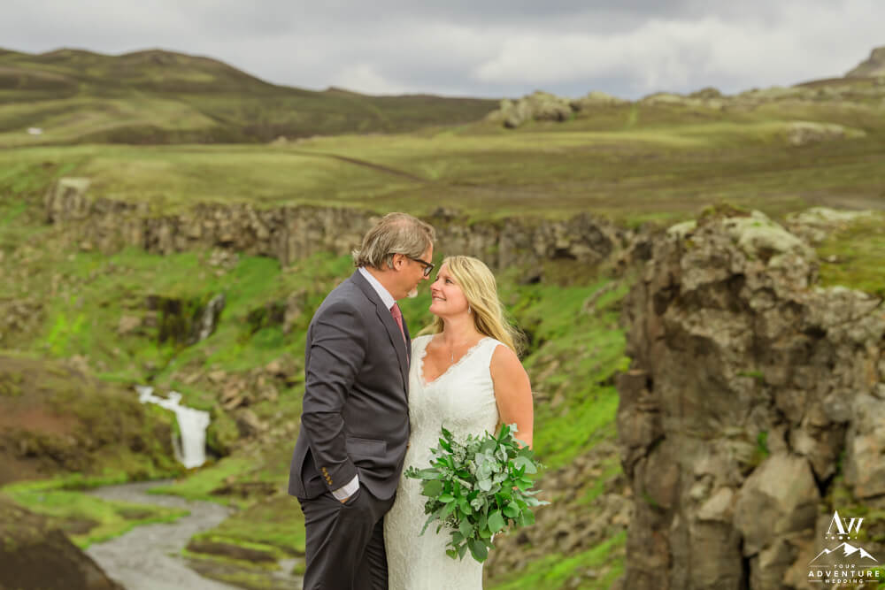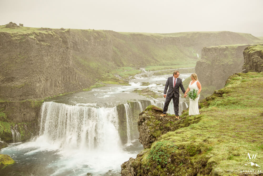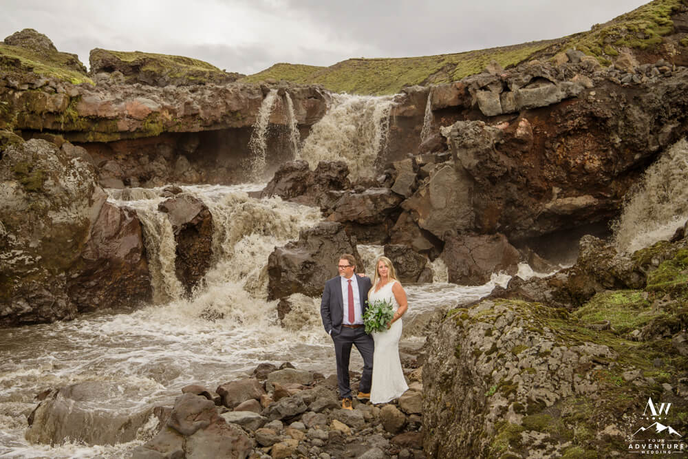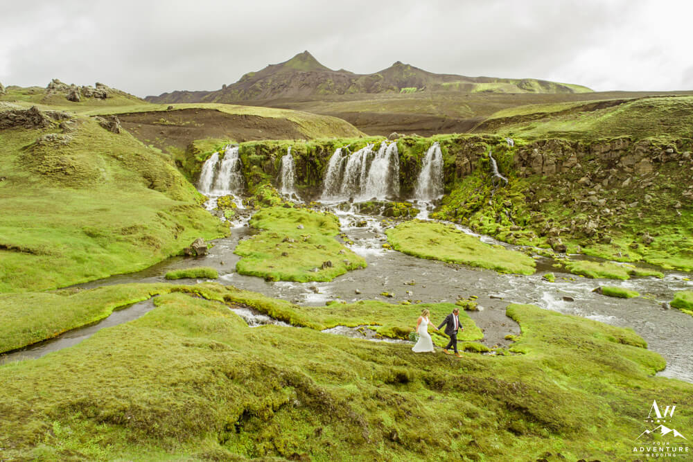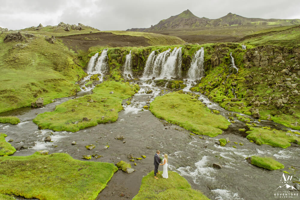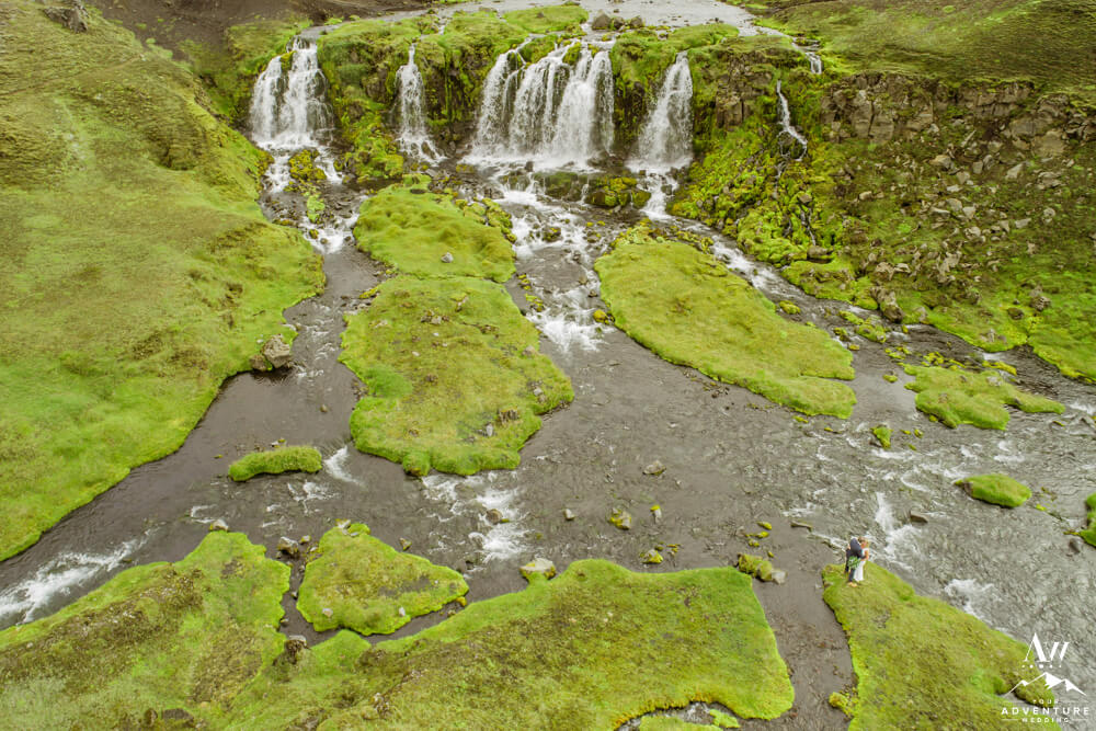 August in Iceland is hands down our most vividly green month. Therefore, exploring around in the Icelandic highlands is always a good idea if you’re a seeker of these famous greens. And deep into the highlands you’ll find this incredible waterfall Kelly and Greg spent time exploring during their blended family destination wedding!