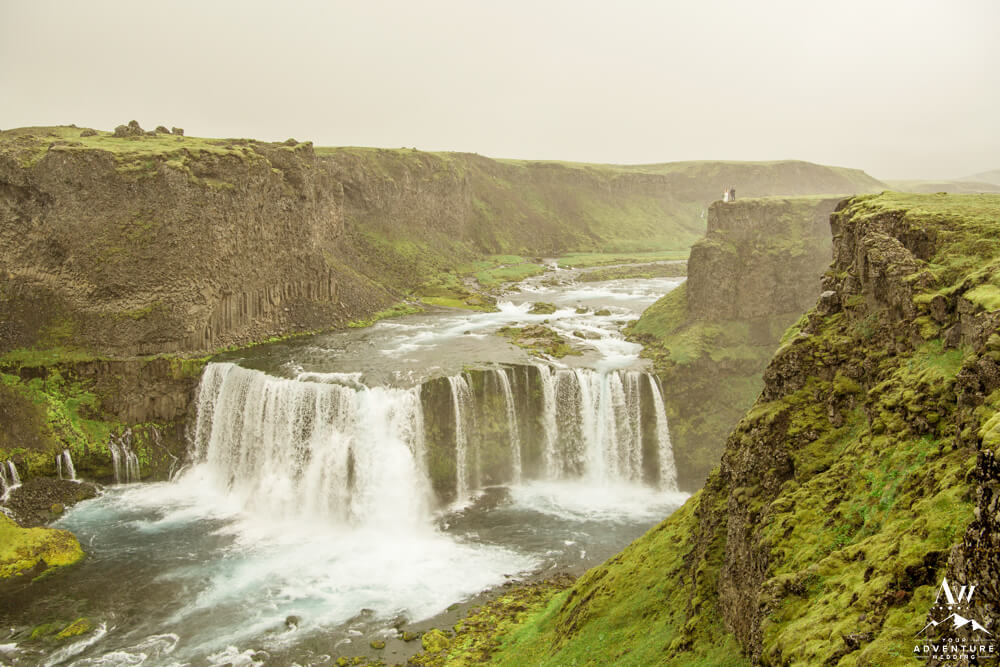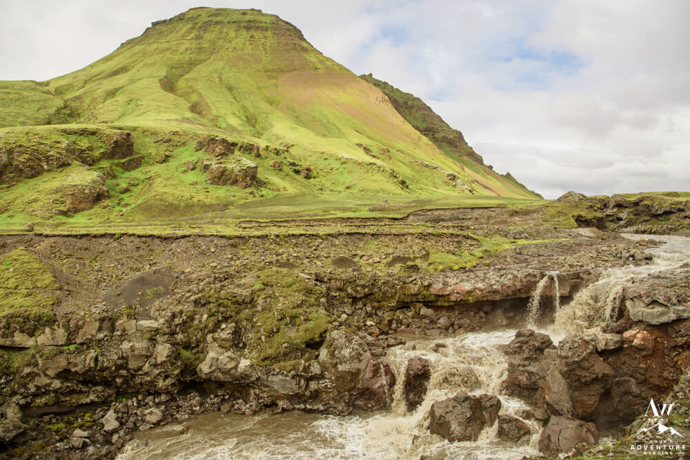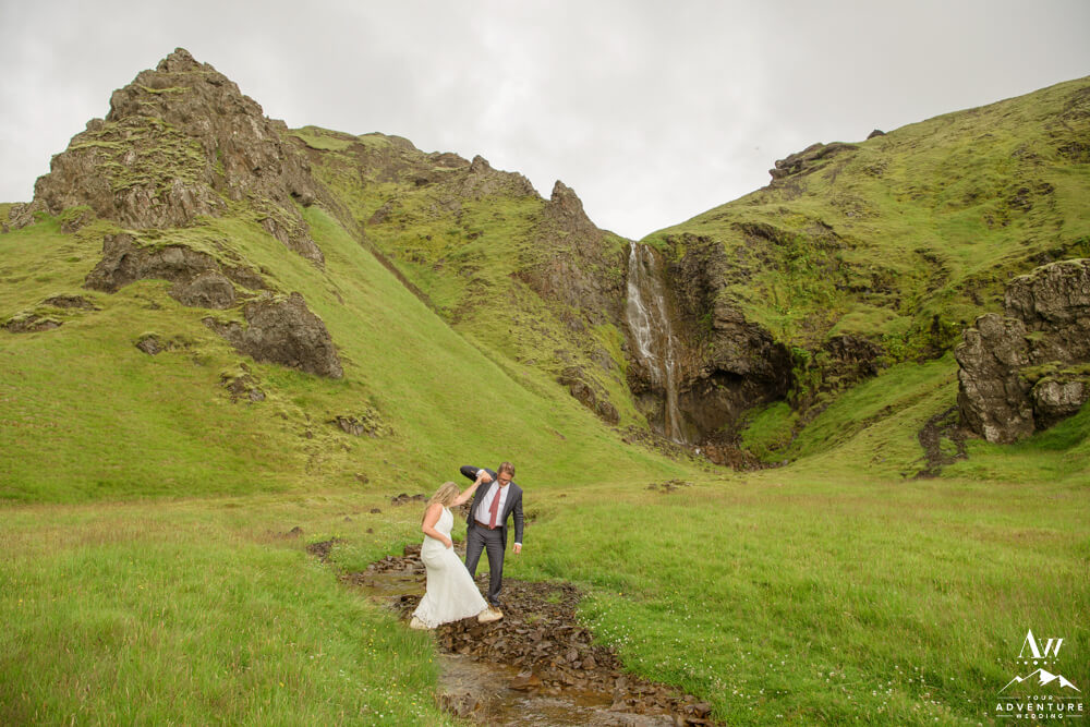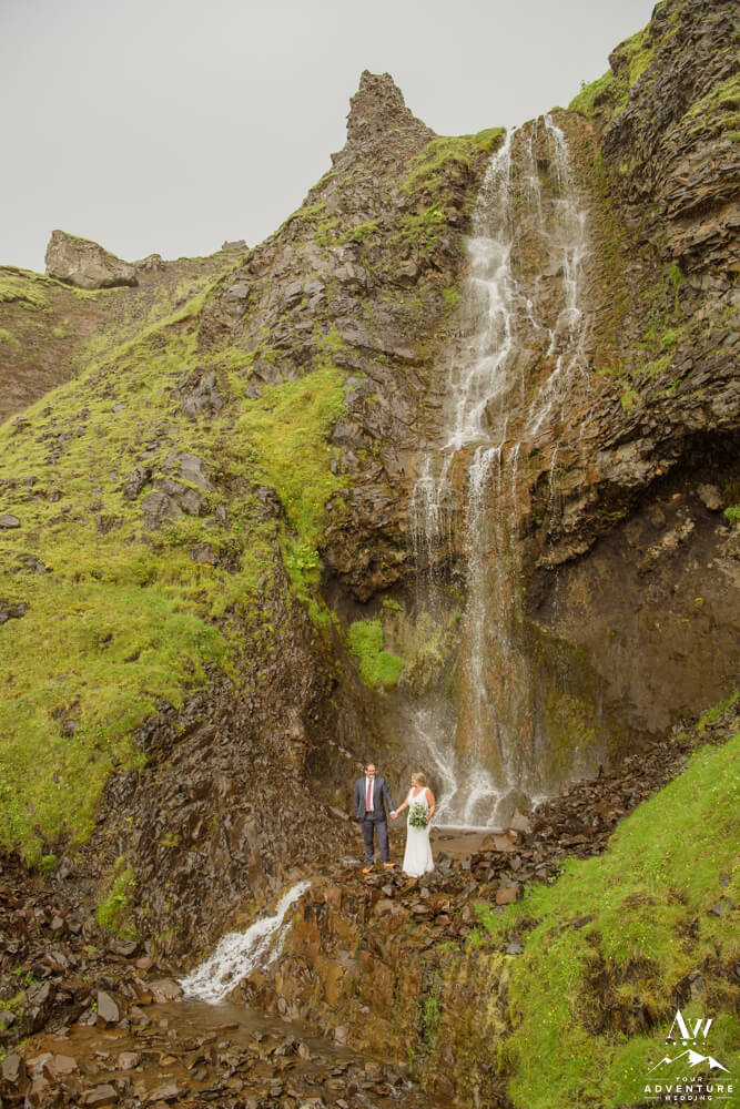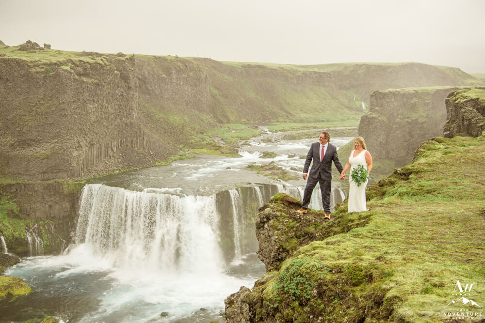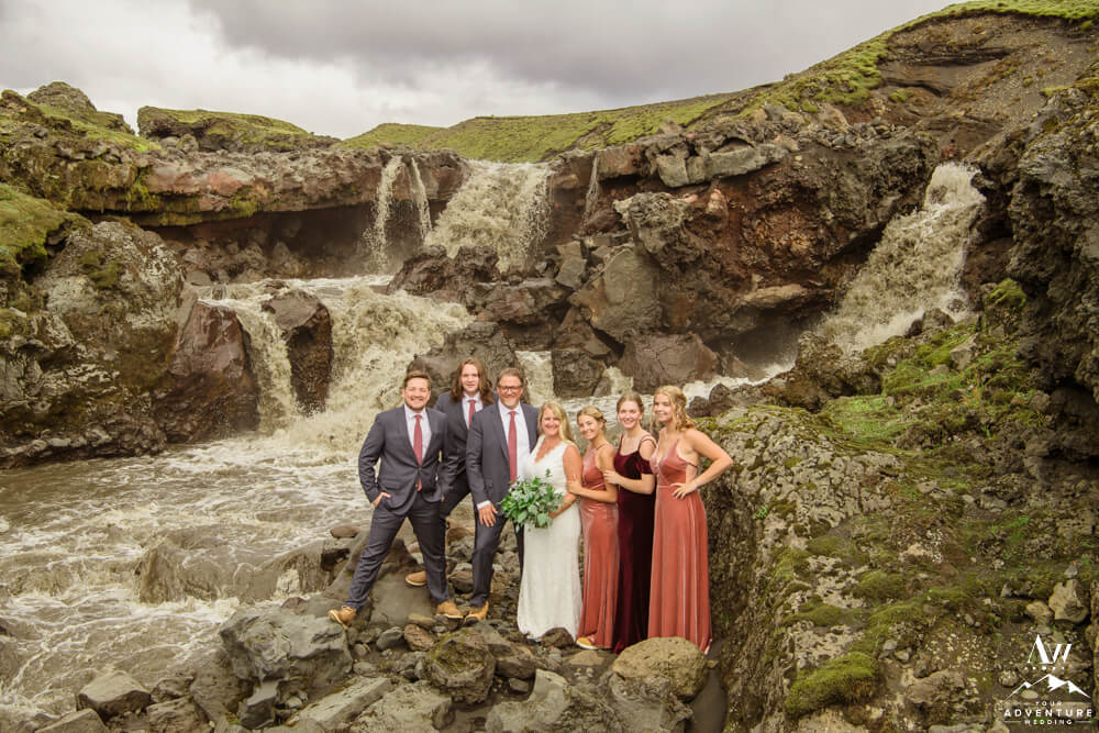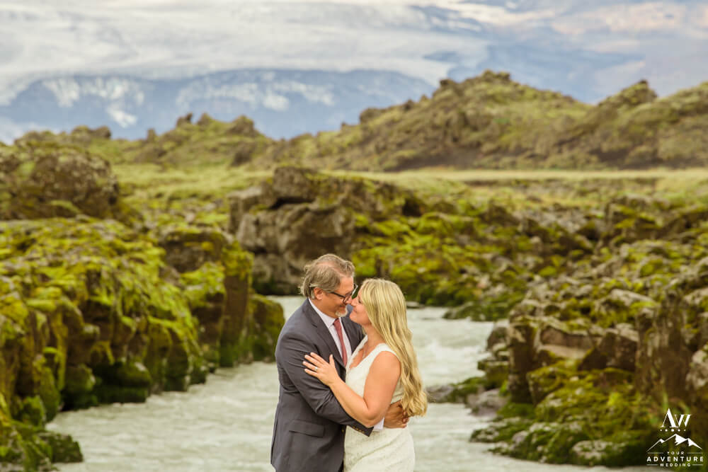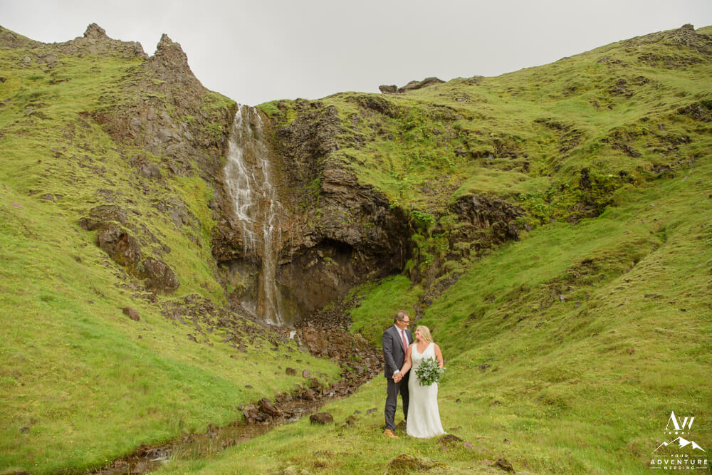 August in Iceland is hands down our most vividly green month. Therefore, exploring around in the Icelandic highlands is always a good idea if you’re a seeker of these famous greens. And deep into the highlands you’ll find this incredible waterfall Kelly and Greg spent time exploring during their blended family destination wedding!
