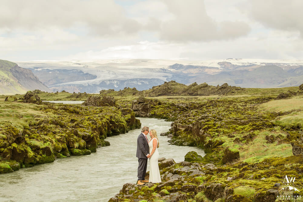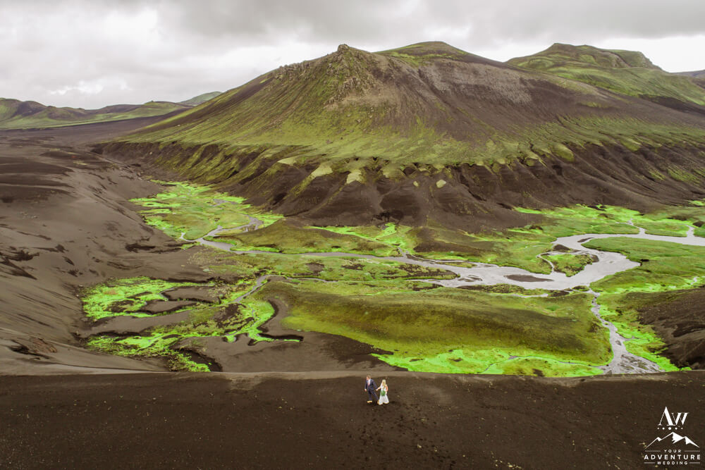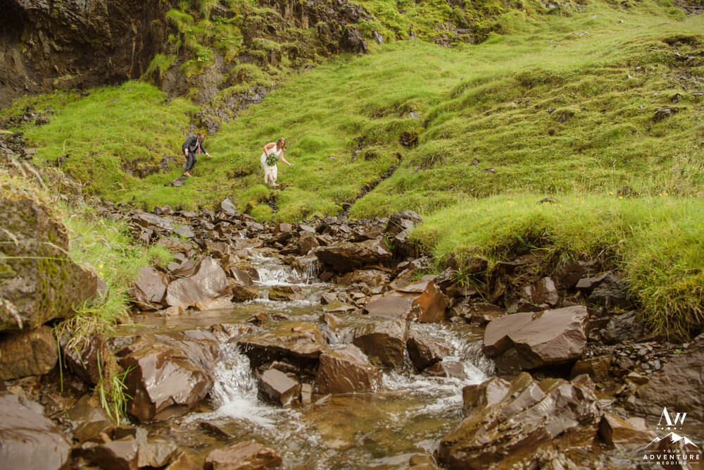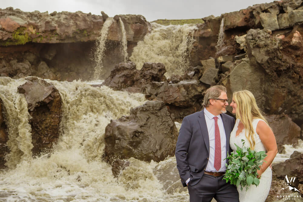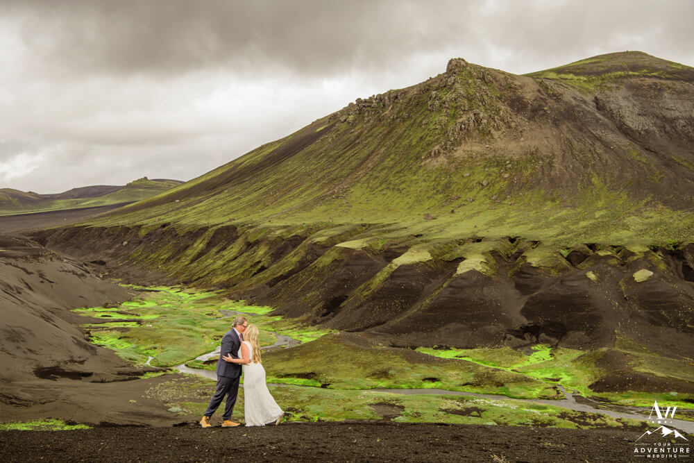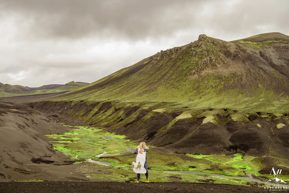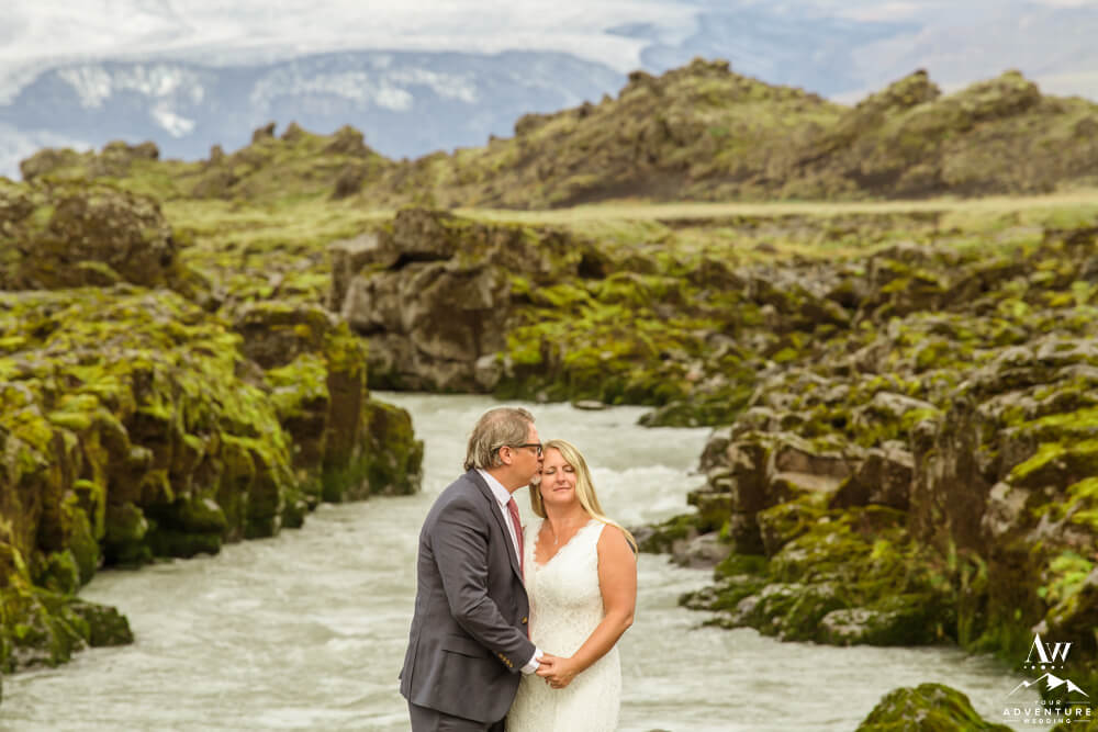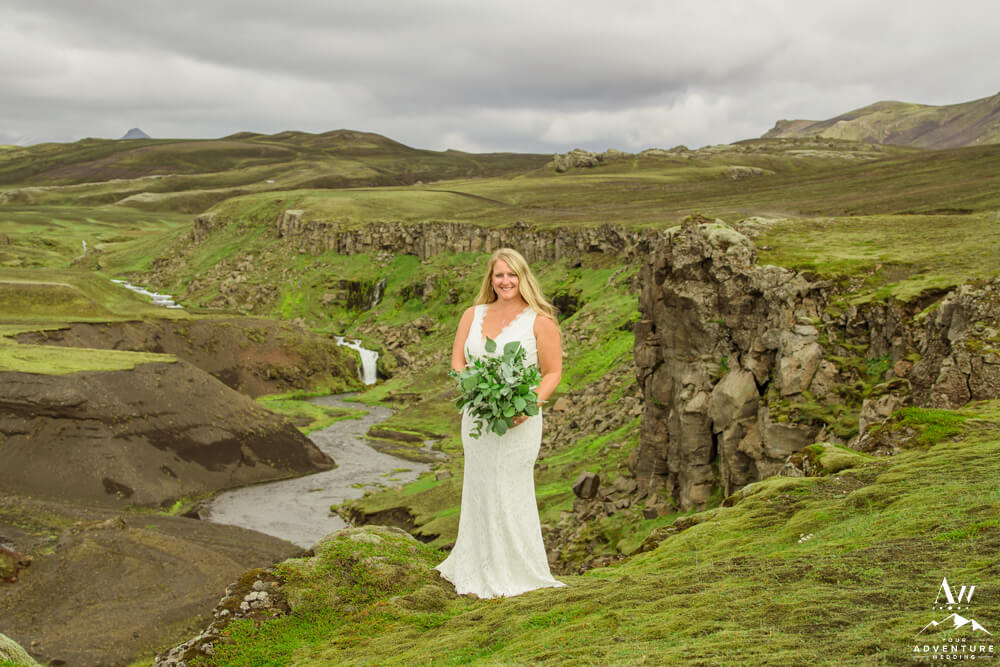 August in Iceland is hands down our most vividly green month. Therefore, exploring around in the Icelandic highlands is always a good idea if you’re a seeker of these famous greens. And deep into the highlands you’ll find this incredible waterfall Kelly and Greg spent time exploring during their blended family destination wedding!