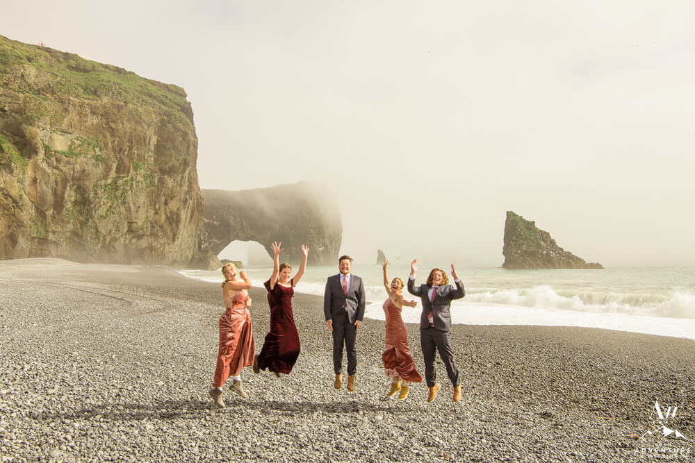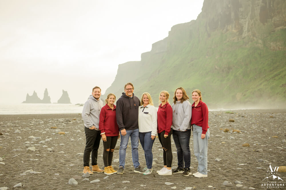 Rounding out their adventurous blended family destination wedding, the group ventured to Vikurfjara black sand beach for a few final photos before dinner.
