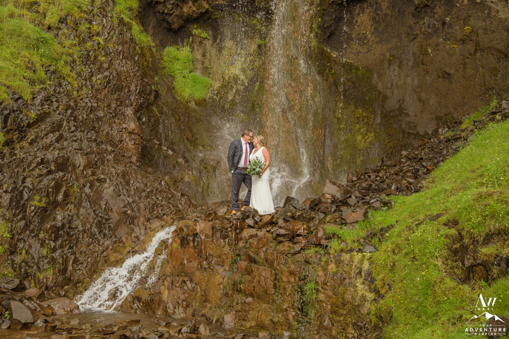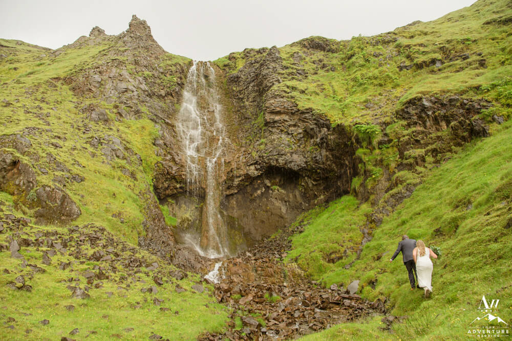 There is something to be said about the feeling you get when you arrive to our private property locations. To illustrate, there are no ropes, barriers, signs or man made eye sores. Just you and nature! The newlyweds and their children spent time running around this sweet trickle private property waterfall and savored every second playing in the rain too! After all, embracing the weather in Iceland is critical to a unforgettable adventure.