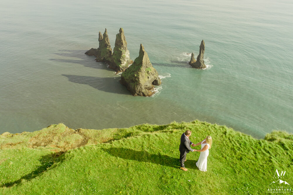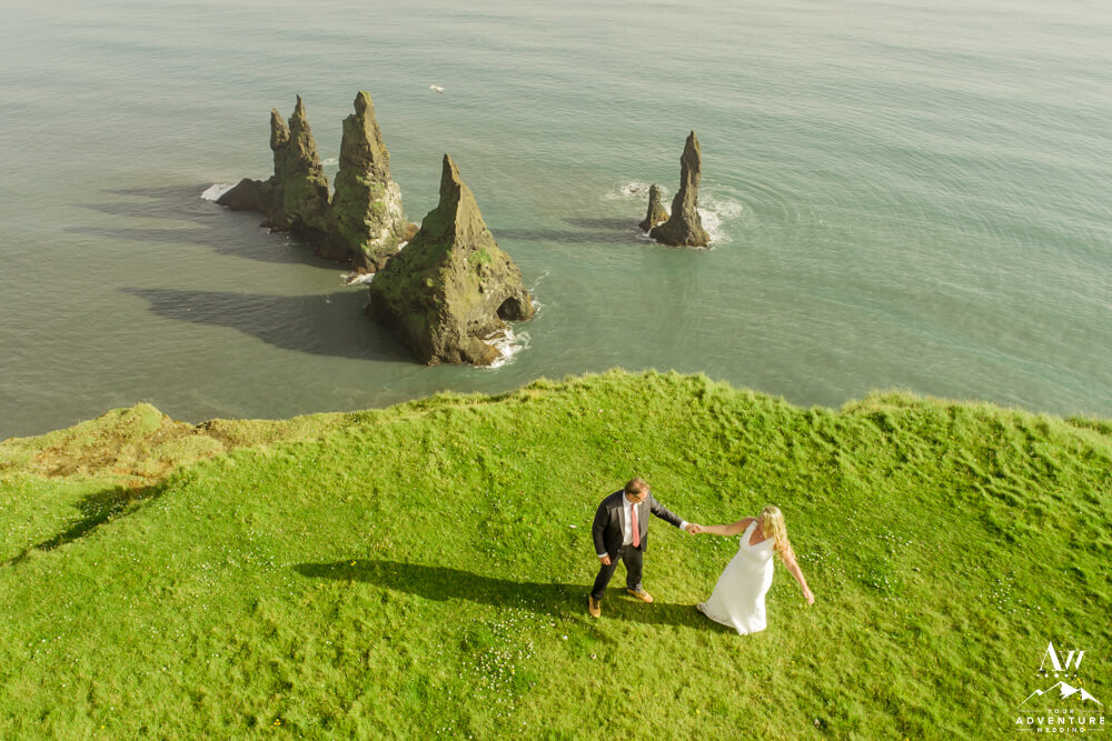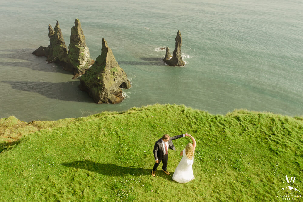 How many couples can say they shared a dance as newlyweds on top of a mountain with basalt rocks underneath? And oh la la Kelly and Greg have some fantastic moves! Furthermore, our Iceland wedding photographer was able to capture the once in a lifetime moment via the drone too, pretty darn special!