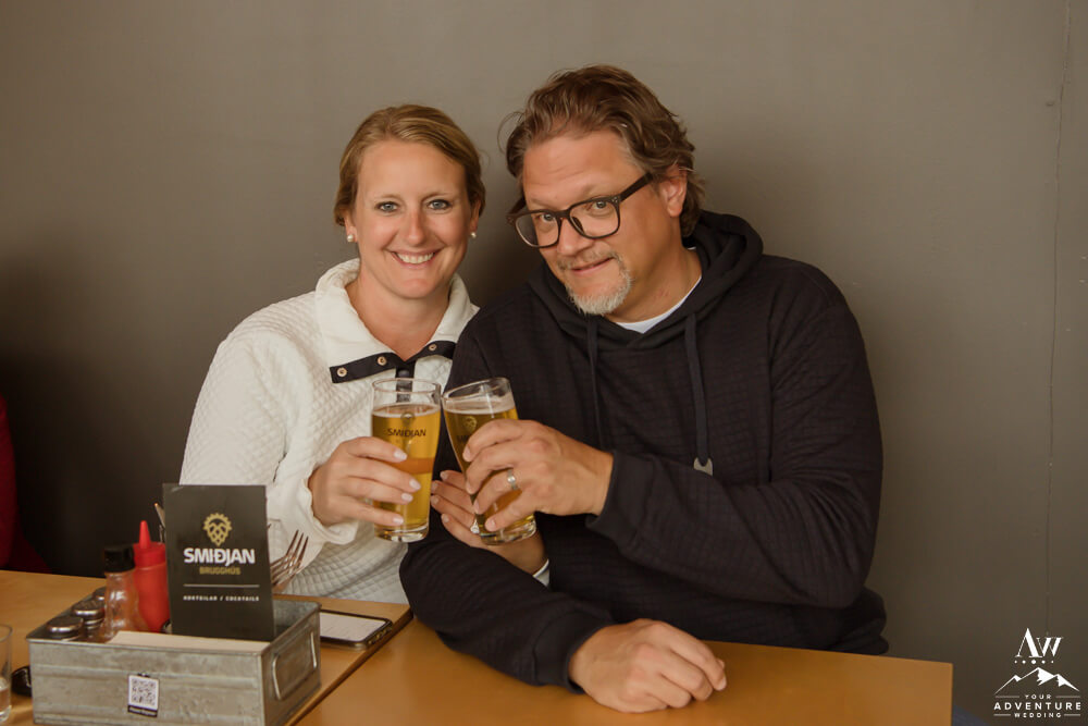 Afterwards, dinnertime brought this lovely blended family destination wedding Smiðjan Brugghús. Why? Because they serve the best burger and beers in South Iceland! And sometimes a casual dinner makes more sense than a fancy sit-down one. That’s the beauty of an experience driven wedding too… You don’t have to follow any “rules.”