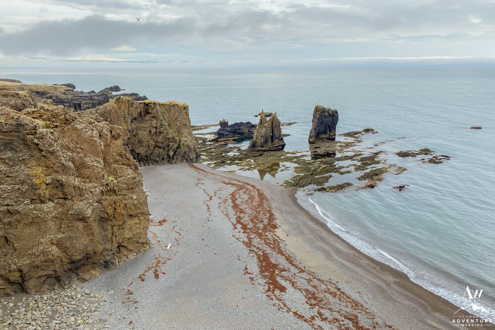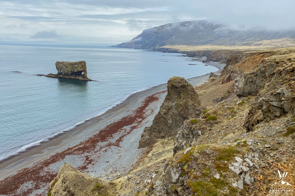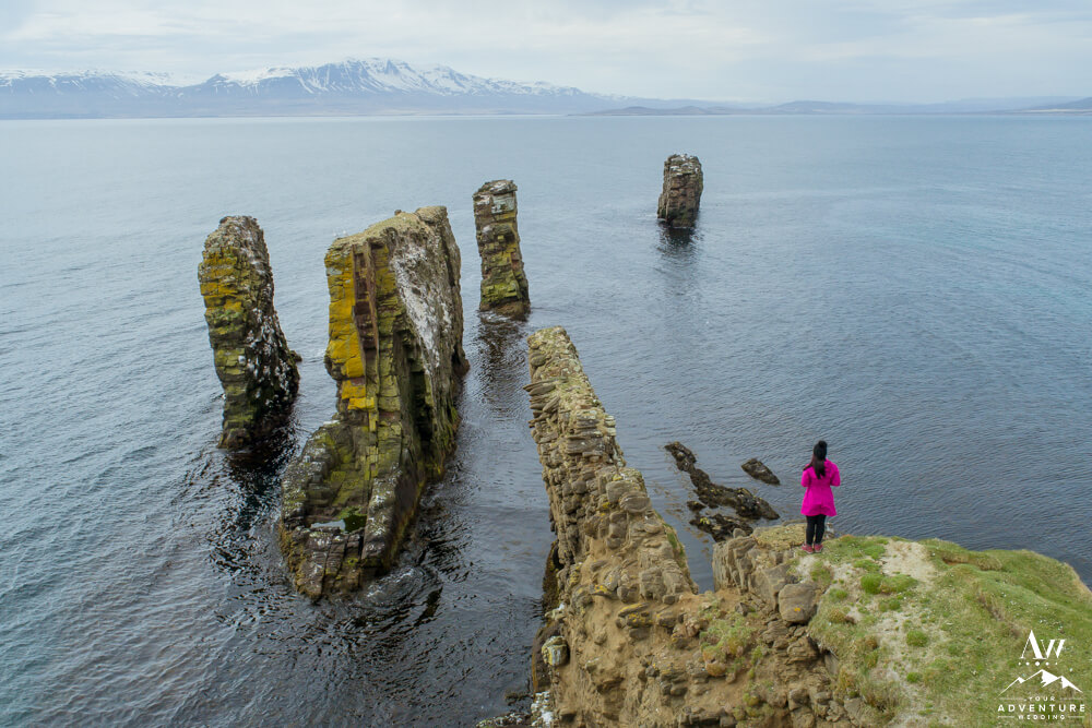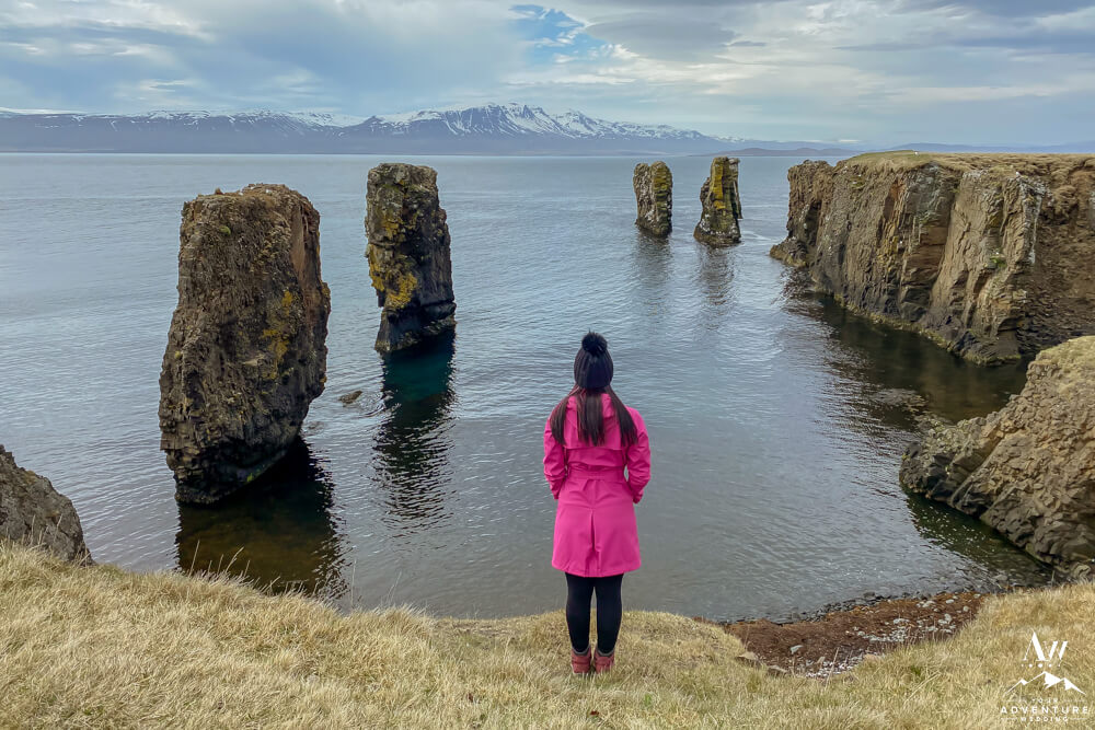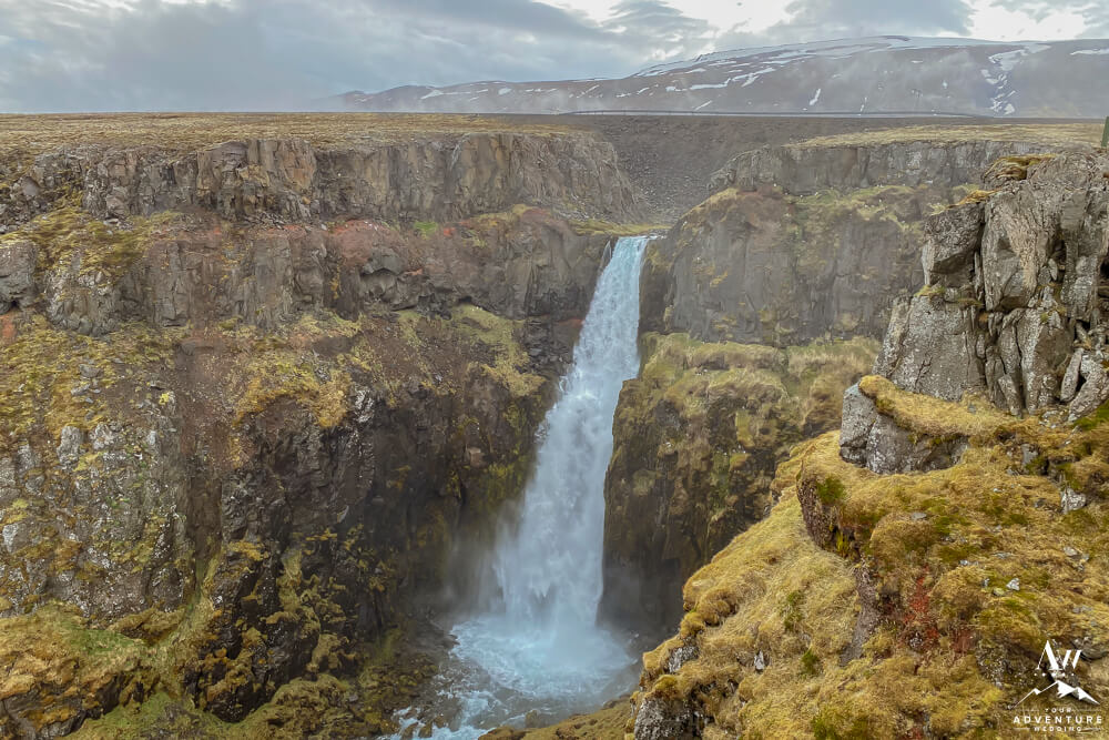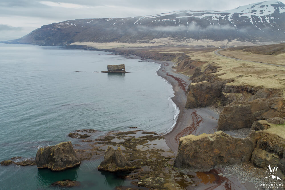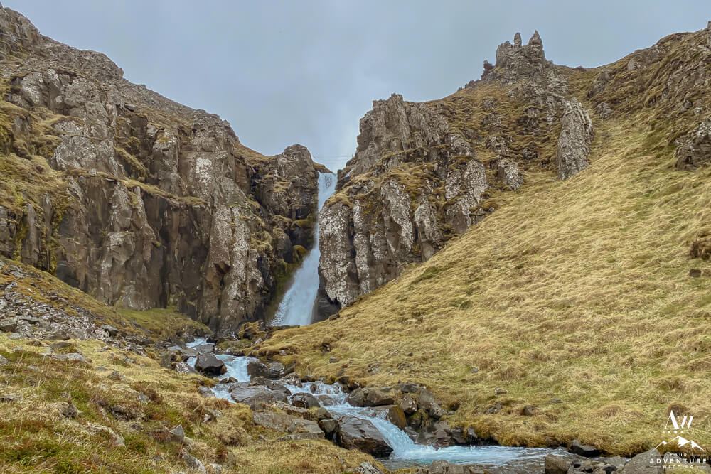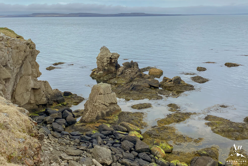 Being within a fjord area, water is abundant especially coming from inside the mountains. Therefore, waterfalls usually follow from the cliffs, lava, or from the salmon rivers. Firstly, the most known waterfall is named, Gljúfursárfoss which can be found on the other side of the fjord on Road #917. Secondly, the entire road (#917) opposite the town is full of waterfalls on the right hand side (if driving towards), worth a look! Thirdly, there is a stunning lava rock black beach waterfall on the way to Fuglabjarganes Cliffs. Fourthly, many private property waterfalls can also be found here near the exclusive fishing lodge and surrounding farms.