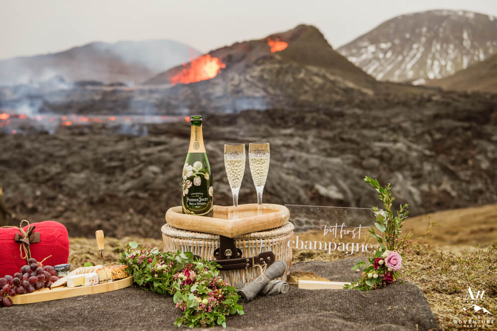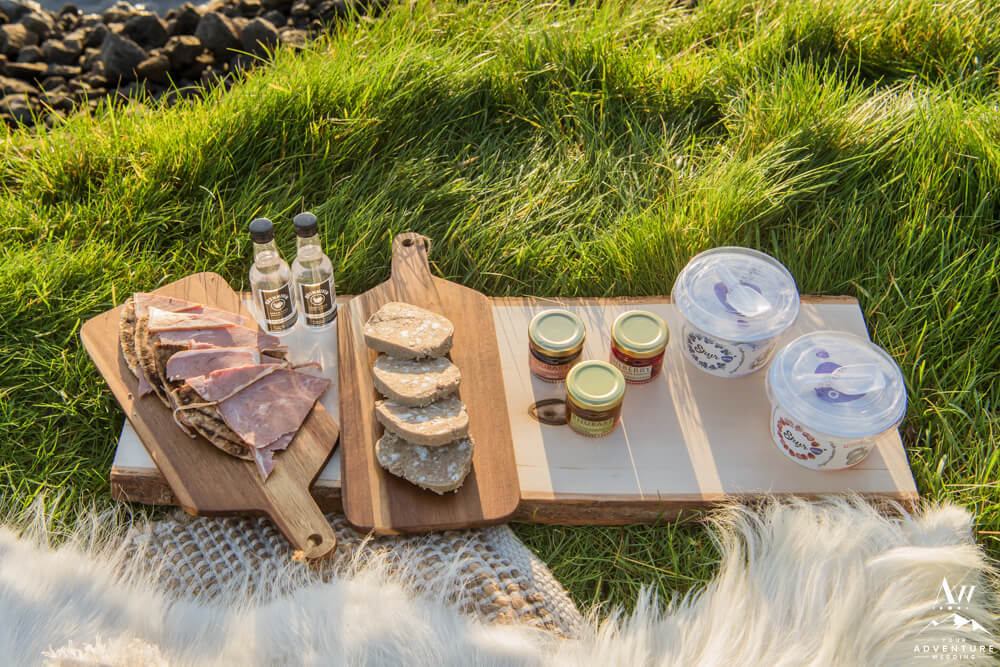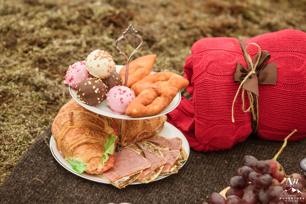 Keeping things simple for your elopement luxury lunch could mean an uncomplicated setup. For instance, a blanket, a pillow or two, plates or not, and champagne. Basically just enough to add but not take away from the beauty of your Iceland picnic location. Food options could vary too and we speak more on that topic below so stay tuned! Furthermore, a simple luxury lunch cost could vary between $200-500 USD depending on your inclusions and setup.