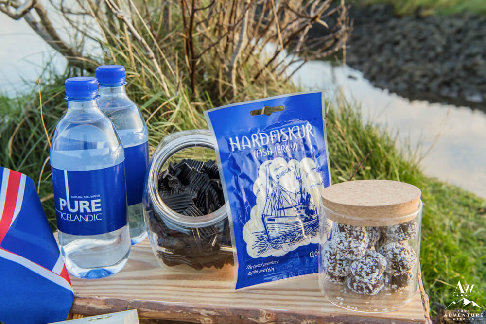 Interested in partaking in local traditions and Icelandic delicacies? Well then, you two may want to opt in for an Icelandic elopement luxury lunch! Firstly, you could taste native pastries. Secondly, you could have sandwiches made from smoked salmon, rúgbrauð, liver sausage, harðfiskur (dried fish kinda like jerky). Thirdly, wet your palette with trying local beers and / or Landi (Icelandic moonshine)! Fourth, conquer your sweet tooth with taking a bite into all kinds of Icelandic candy (licorice included)! Maybe you have more of a savory craving then nibble on local cheeses and crackers. Lastly, you could anticipate a cost between $995 – 1,500 USD depending on the setup and how many goodies you’re wishing to try.