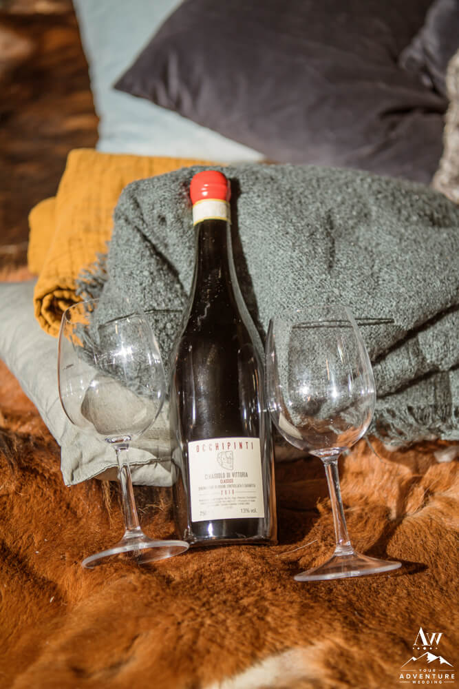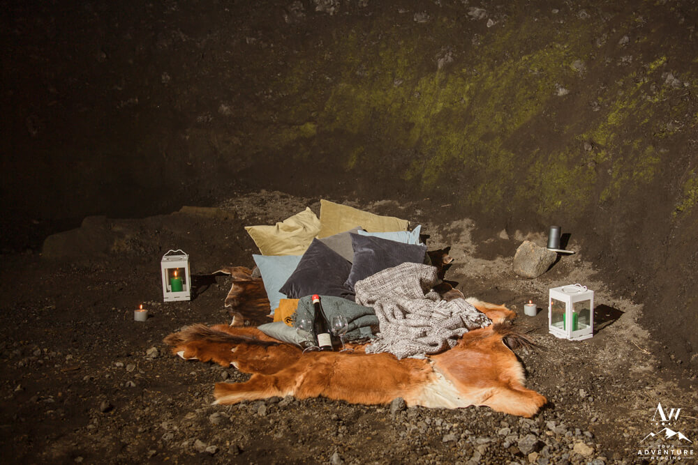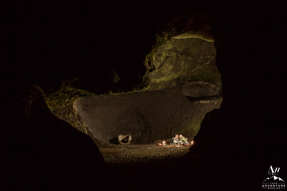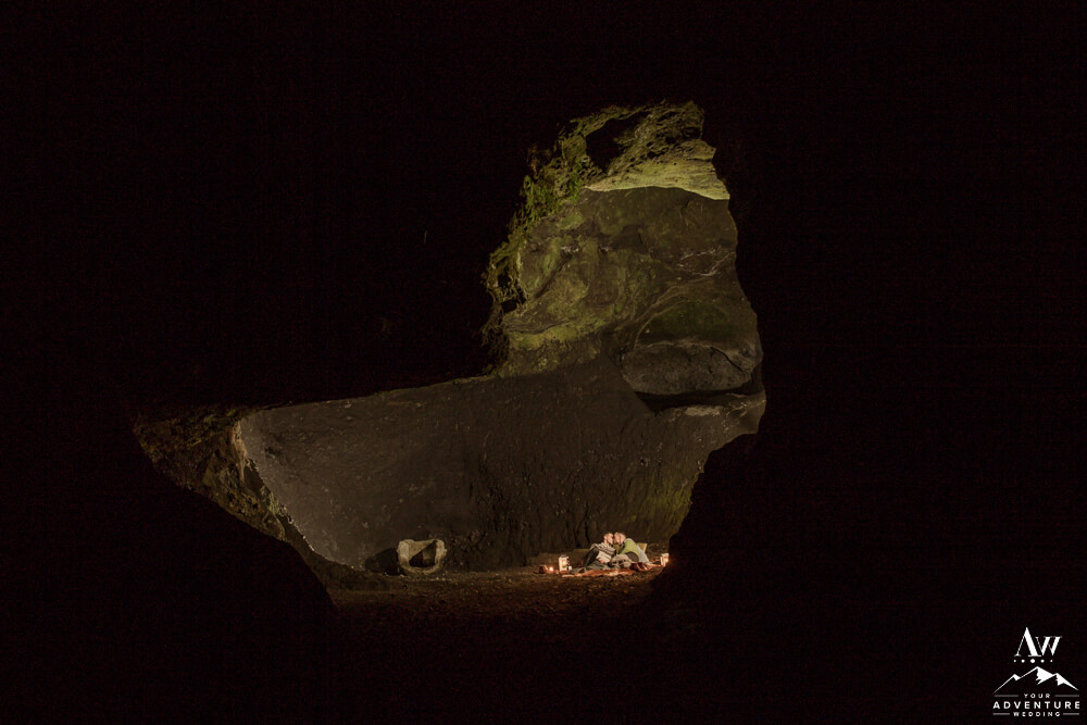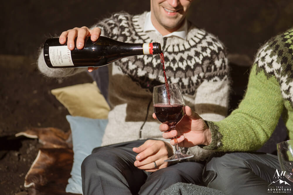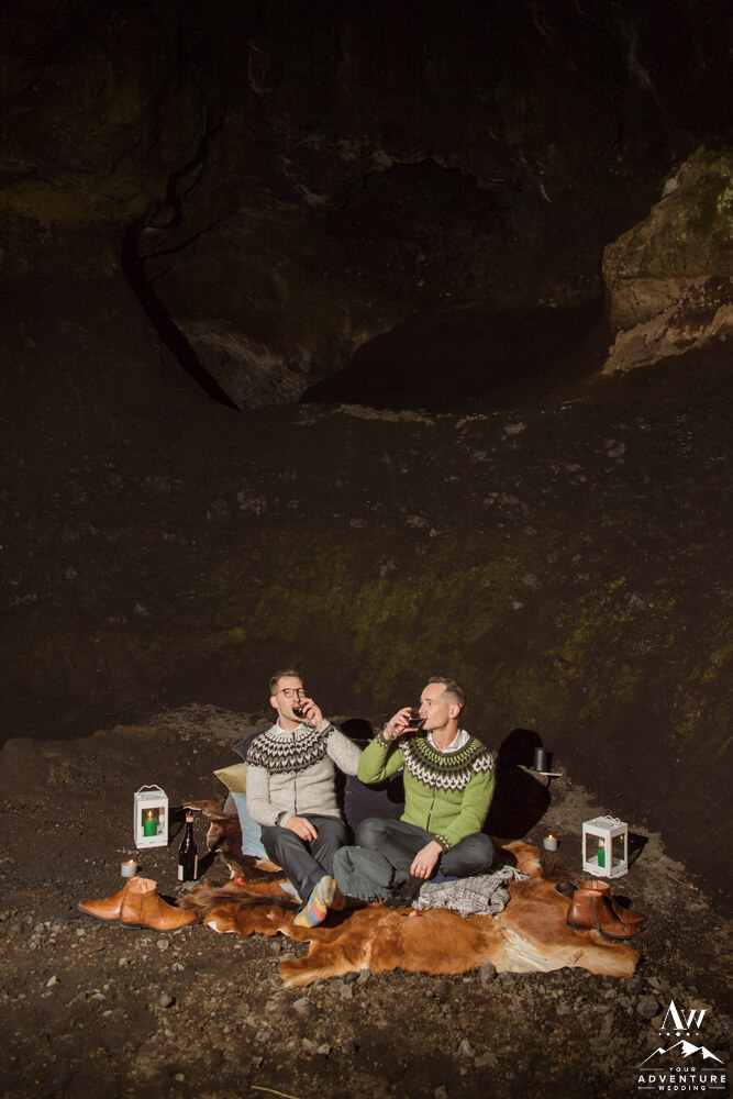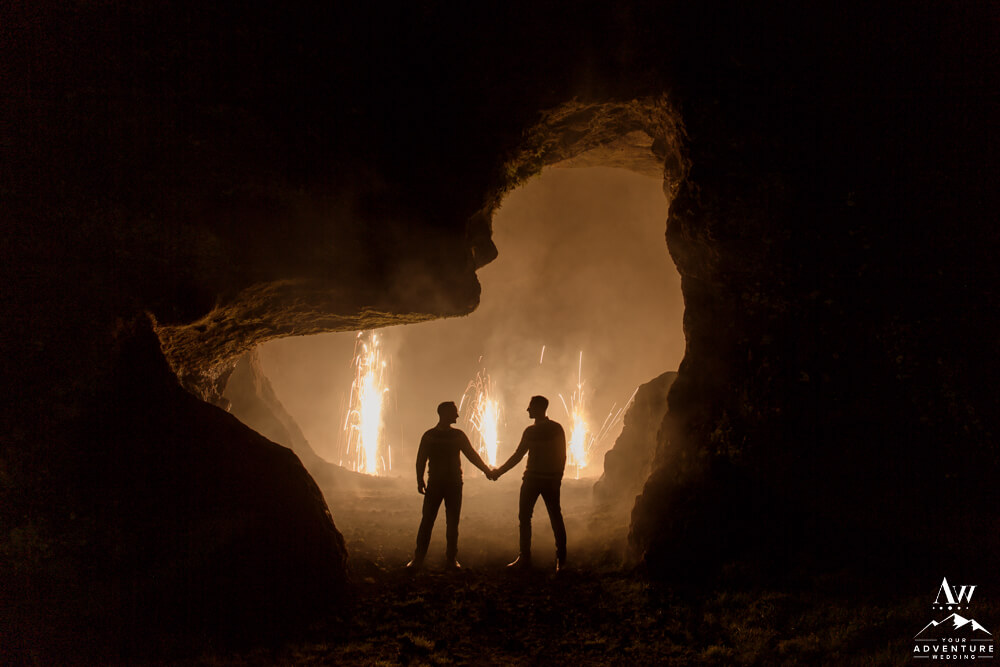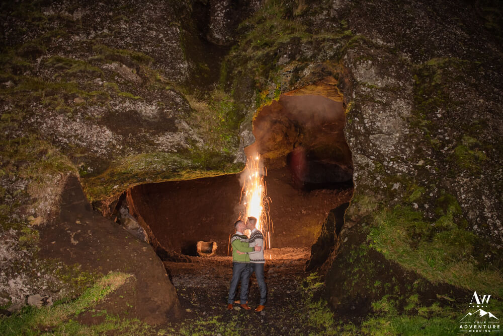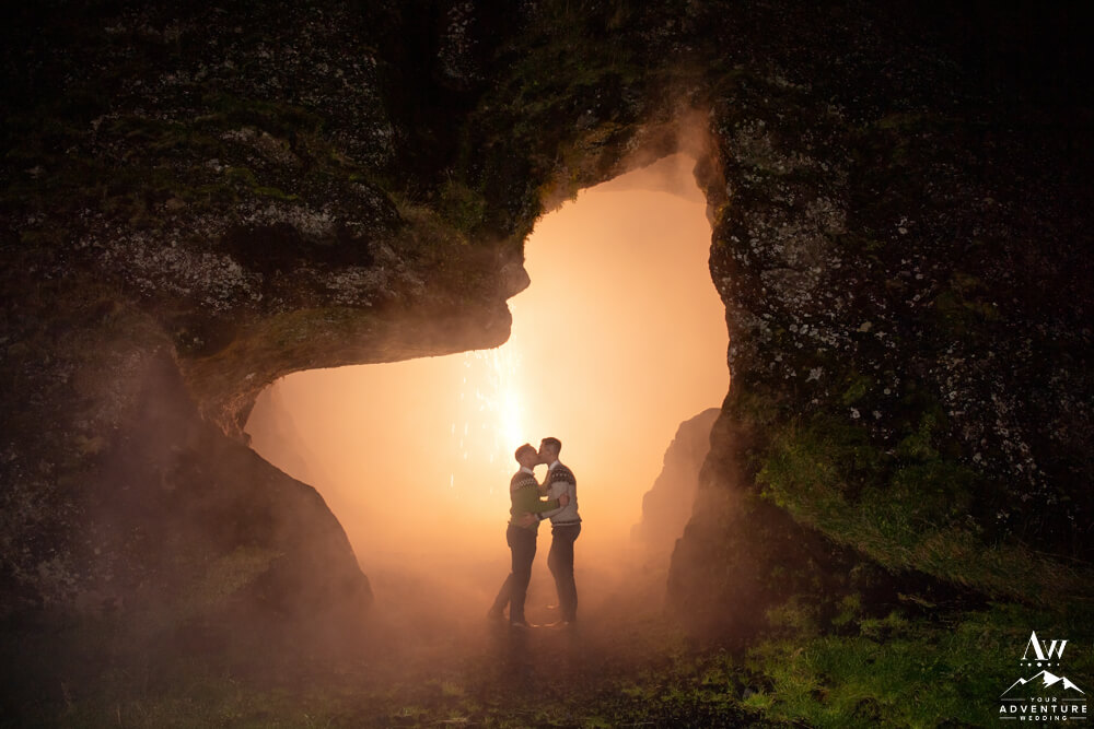 Don’t worry that wasn’t the end of their highland wedding adventure. In fact, it continued into the night after a delicious dinner in Vik. To illustrate, it was important to Rory and Bob that they share a sweet little picnic in one of our exclusive caves for their nightcap. After all there just wasn’t enough time in the daylight to see it all! Lastly, we finished the night in a big way with ground fireworks which turned into some amazing photos!