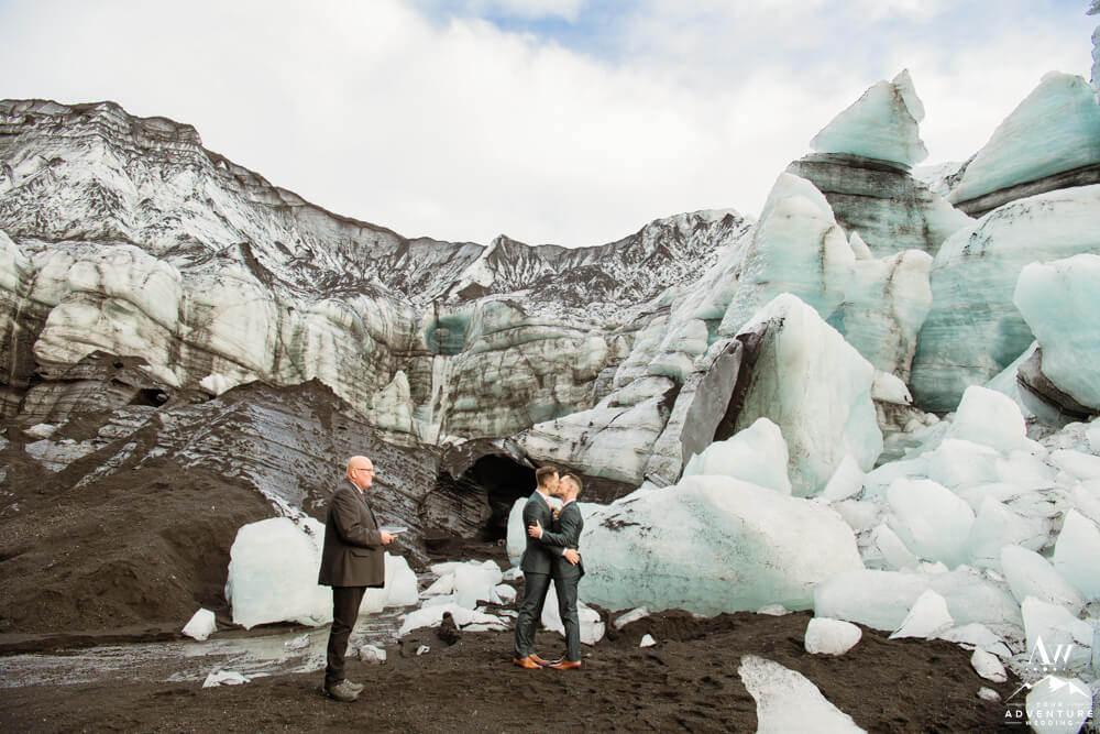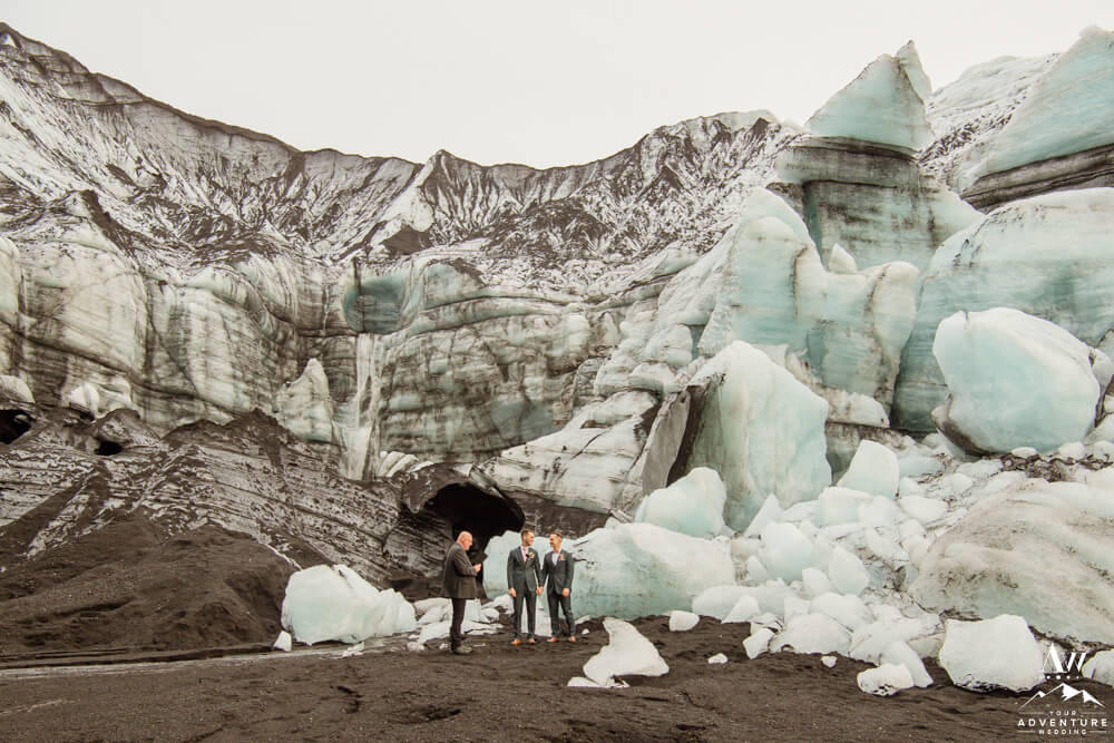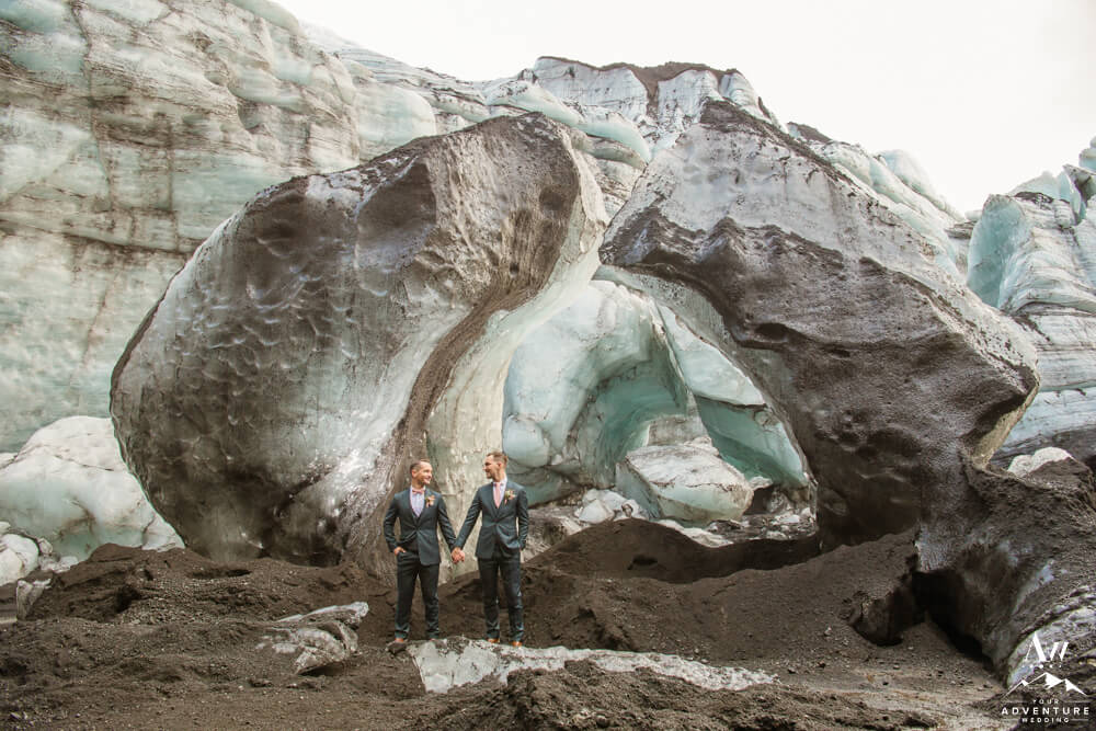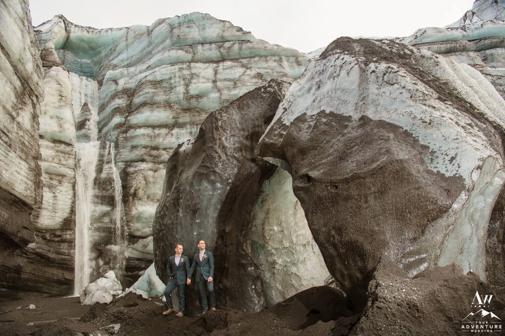 Upon arriving to their highland wedding ceremony location, these two experienced the stimulating energy that comes along with a subglacial volcano area. Maybe it’s the drastic contrasts or the thrill of an eruption being overdue, I don’t know! But the area is very alive!! Because glaciers are ever changing from day to day, the features you could get married in front of evolve.