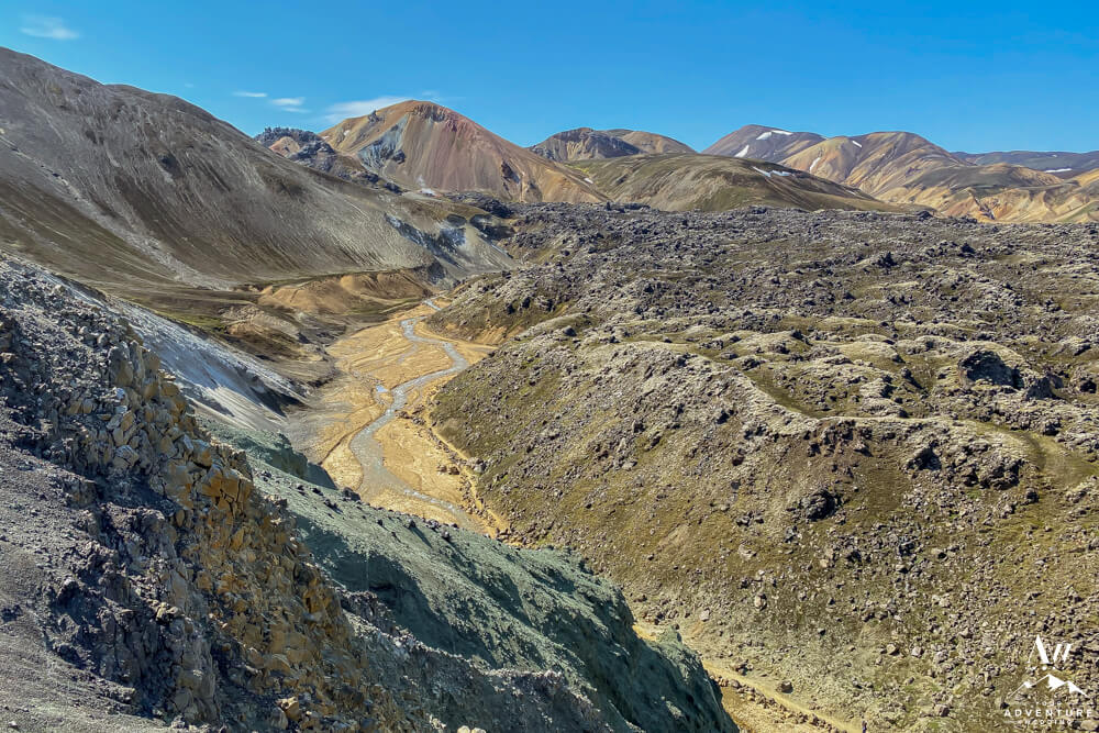 Bravo you badass for making the trek to the Summit!  Now it’s time to figure out what way you want to head back to the campground…  First, you could head back the same way you came to continue taking in the fabulous colors.  Second, you could do the route we did back which was through the Landmannalaugar geothermal area and lava field but it does require a deep river crossing by foot (like knee high on a 5’4” person).