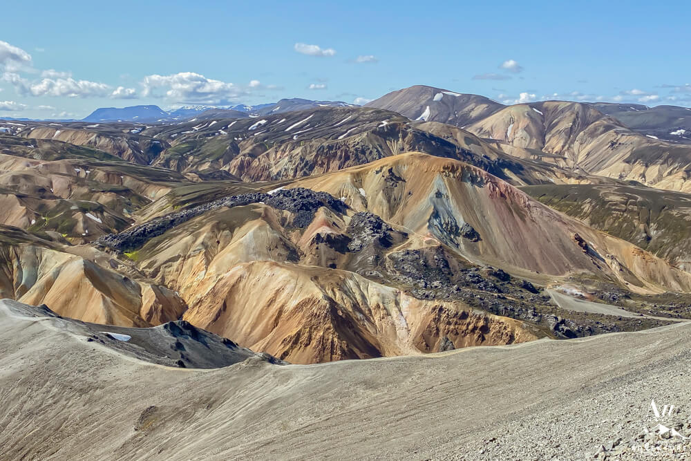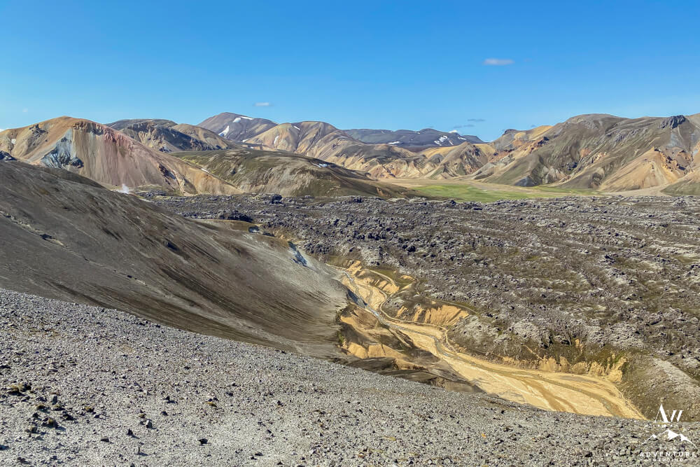 • Laugahraun Loop is a super popular hike in Landmannalaugar.  You can expect to hike just under 3 miles in 1.5 – 2 hours.