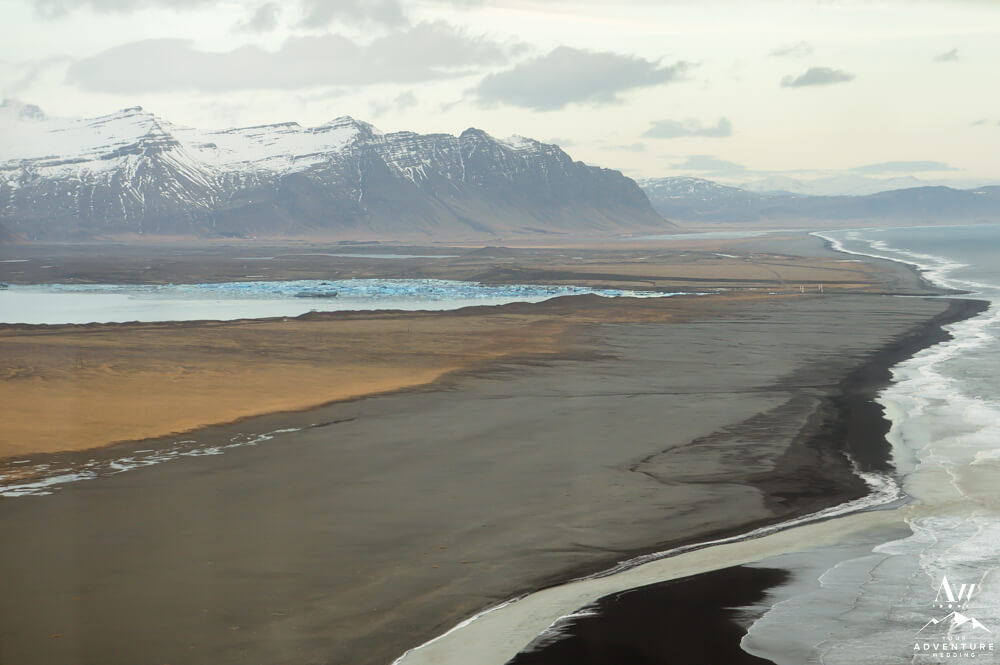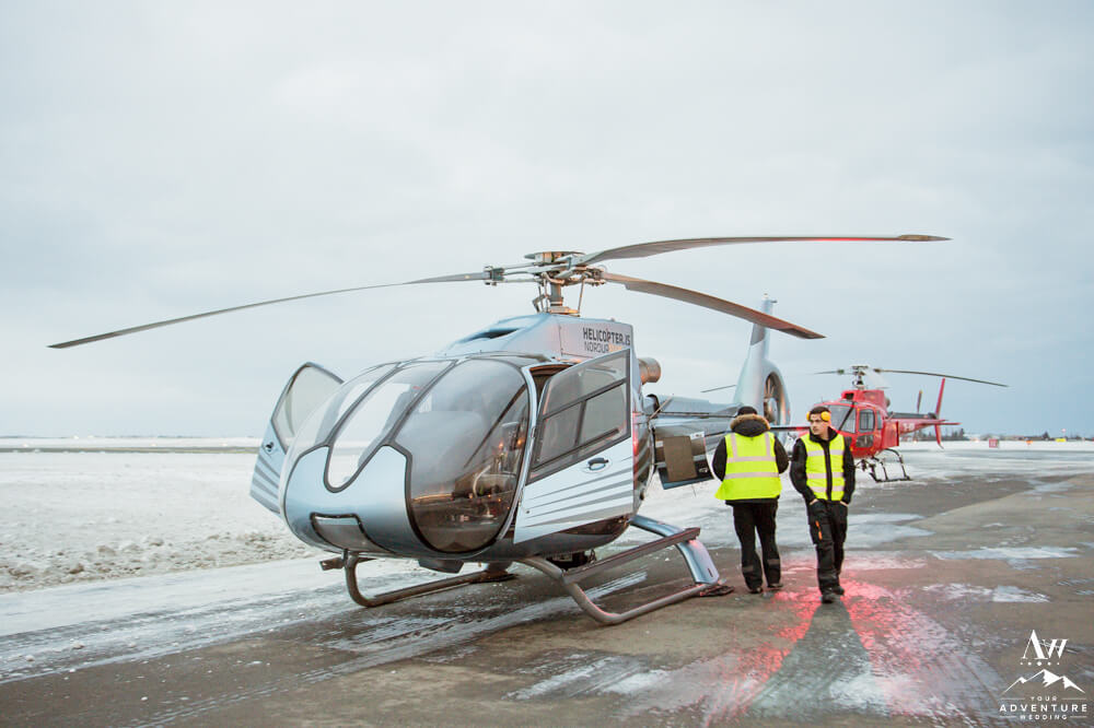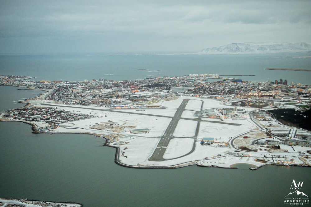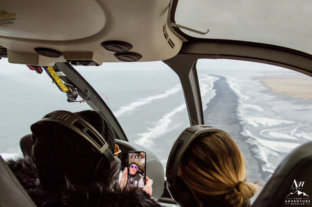 Next, let’s rewind back to the morning January 24th 2022… To make this fully a surprise, two of our team Iceland elopement photographers met at Norðurflug in Reykjavik before sunrise.  After departing from the Reykjavik Domestic Airport, it was time to fly to the 5 star Retreat Hotel to pick up Michael and Mayes!  Meanwhile, from their perspective it looked like photography duo was just another couple on a tour with them. 😉  The views from the Reykjanes Peninsula to Vatnajökull Glacier were indescribable!