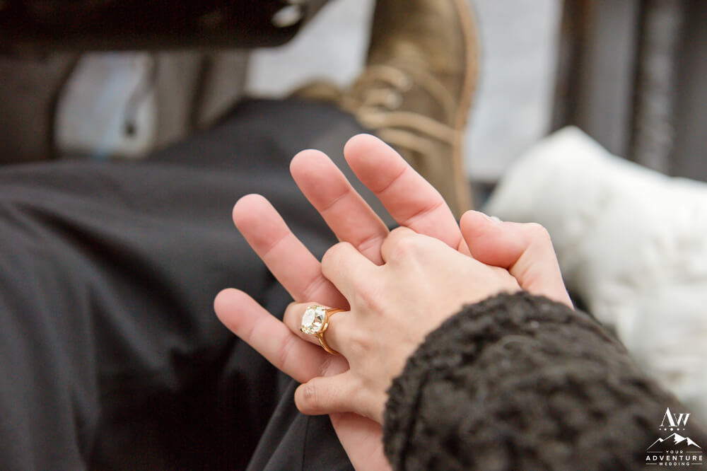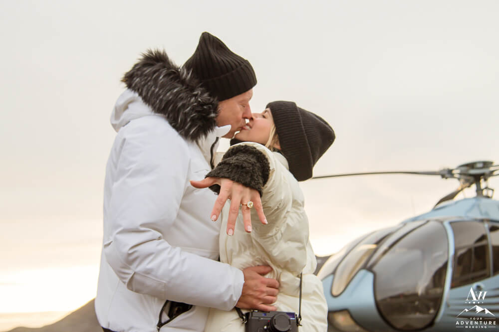 Being January in Iceland, the daylight hours are limited, so by 3pm sunset light  begins.  Therefore it was time to go back!  The ride back was just as beautiful as coming until we hit the town of Selfoss, it was then that weather came in.  Arriving back to the helicopter base, these two decided to walk around downtown a bit and then delighted in a fabulous dinner in one of the top Reykjavik restaurants!  Leaving inspired to plan your own ice cave proposal?  Feel free to contact us if so!