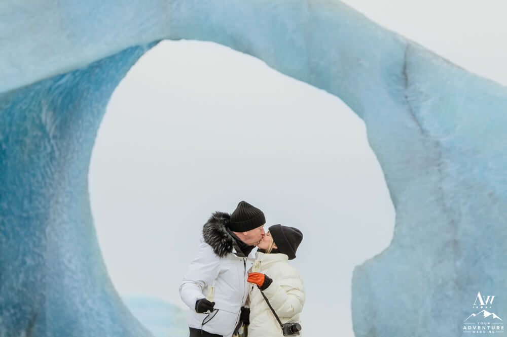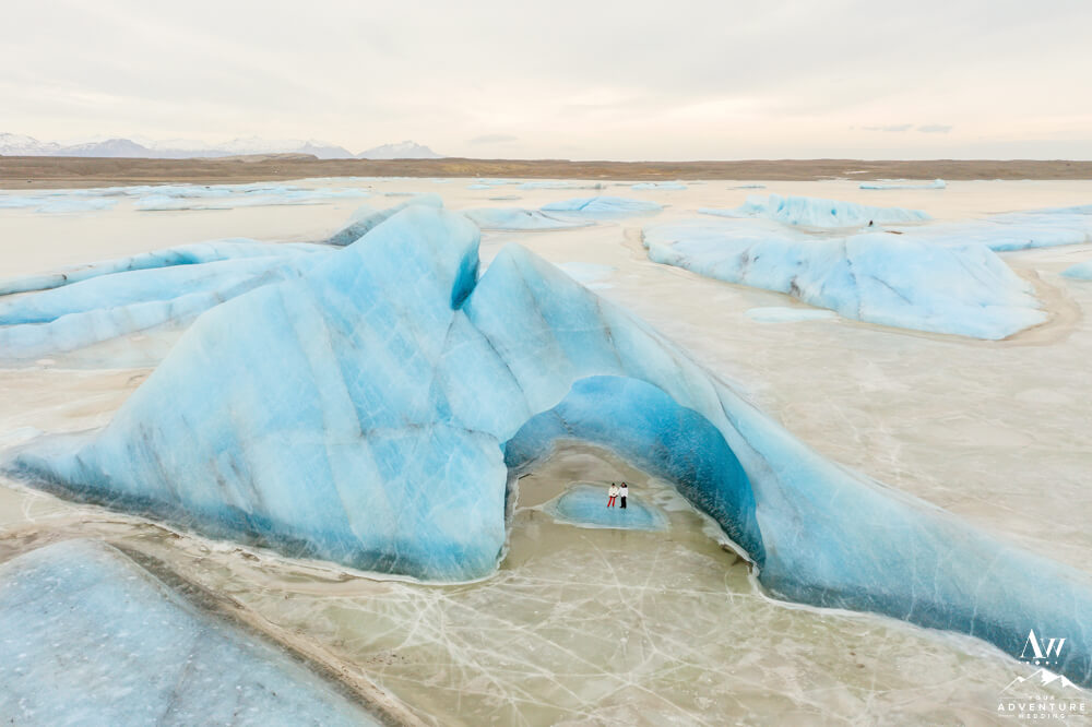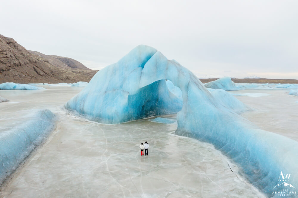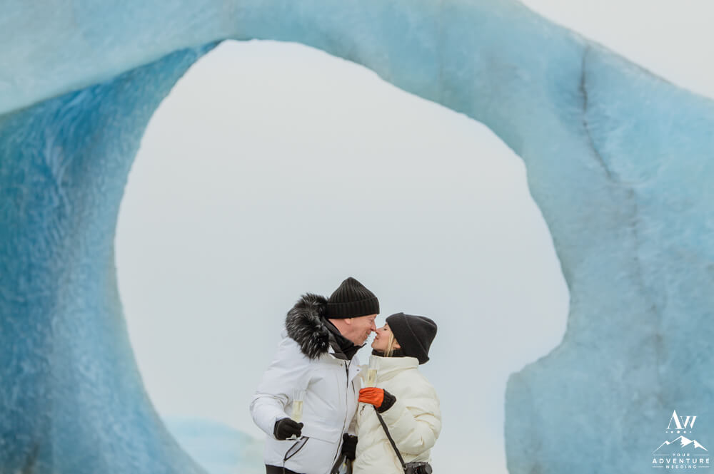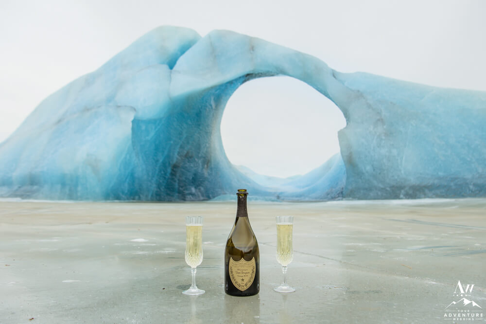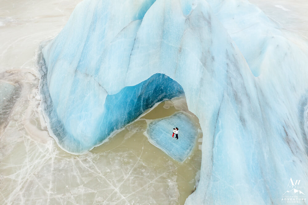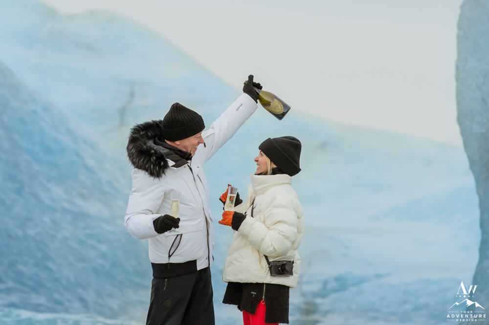 Continuing with the luxury ice cave proposal experience, our Iceland Wedding Planner team popped open a bottle of Dom Pérignon!  After all who wouldn’t want to share a bottle of bubbles at such a unforgettable place and moment in time!!  Further, Iceland engagement photos followed including some incredible drone shots!