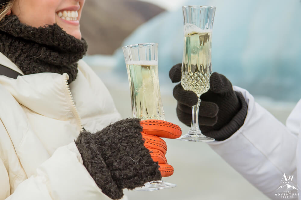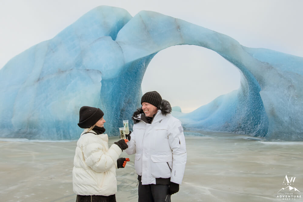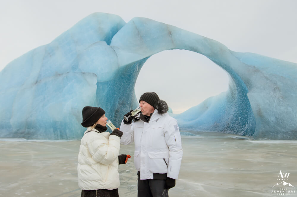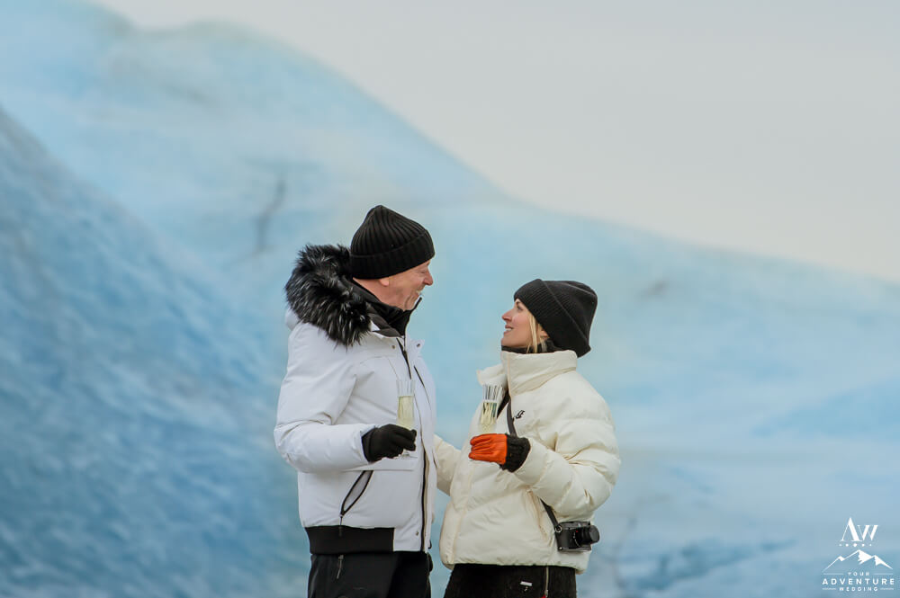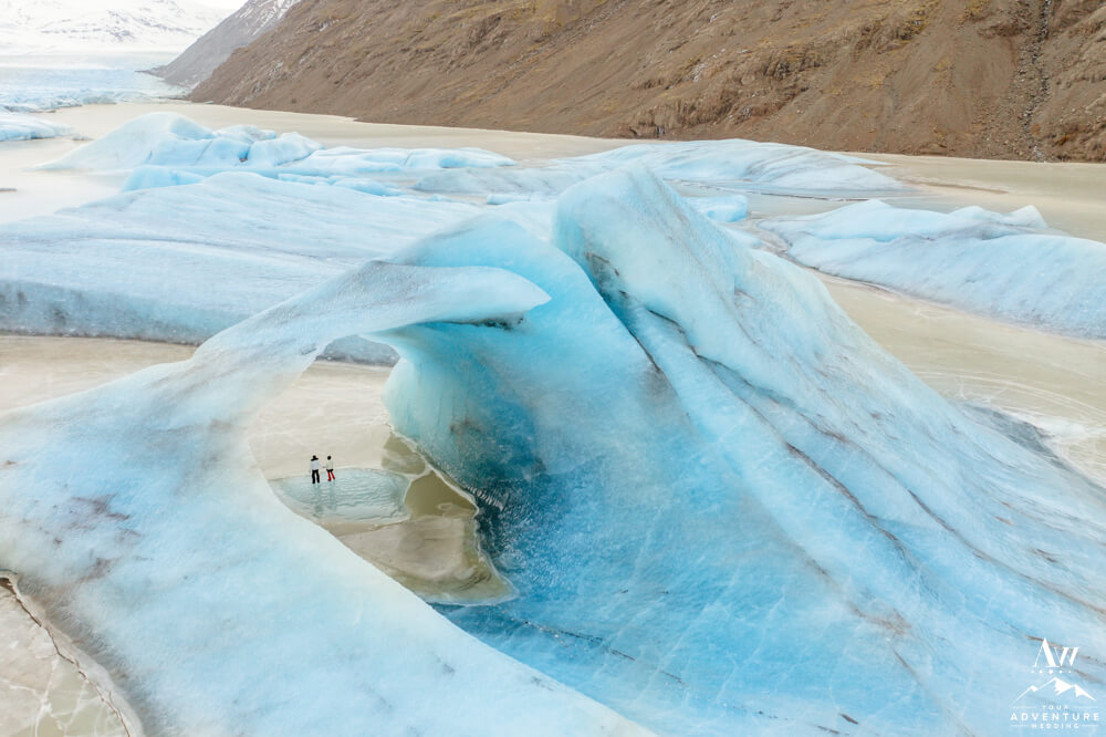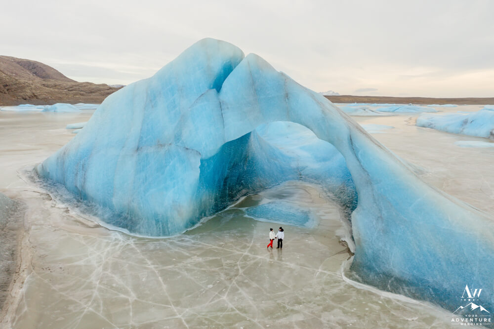 Continuing with the luxury ice cave proposal experience, our Iceland Wedding Planner team popped open a bottle of Dom Pérignon!  After all who wouldn’t want to share a bottle of bubbles at such a unforgettable place and moment in time!!  Further, Iceland engagement photos followed including some incredible drone shots!