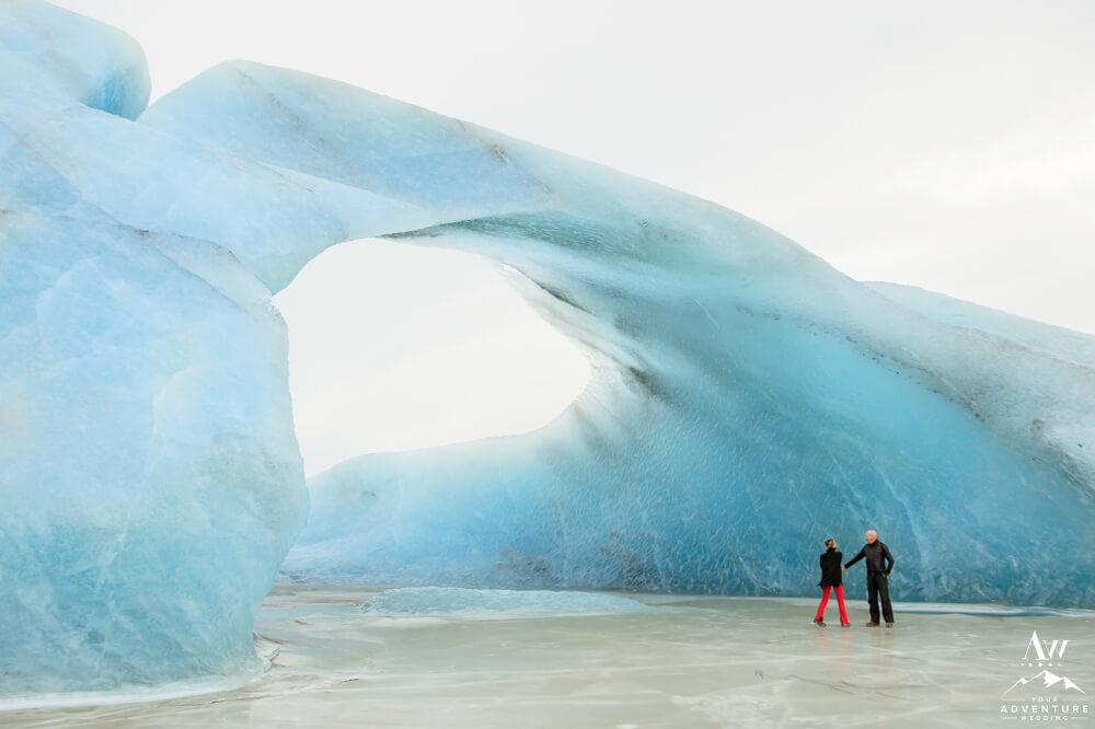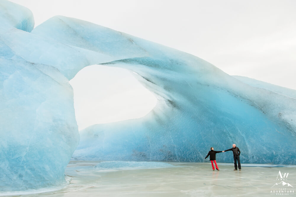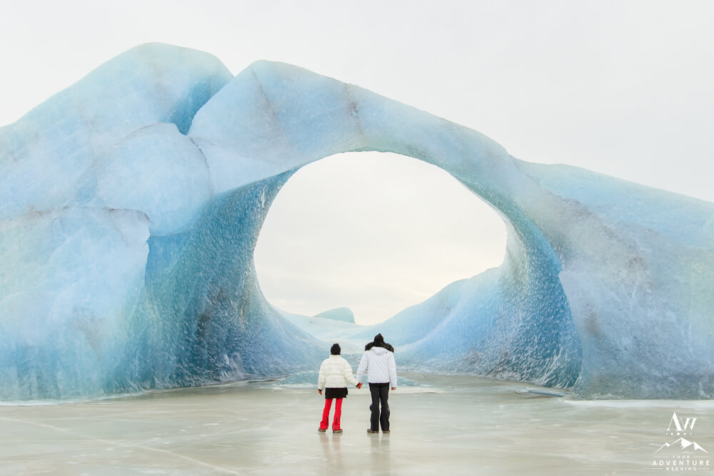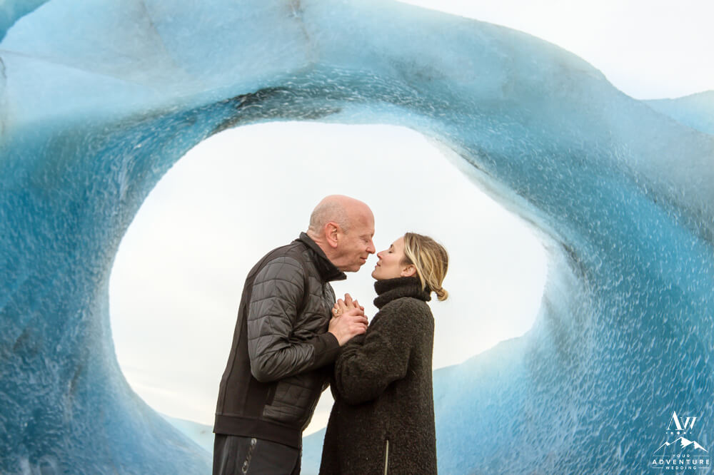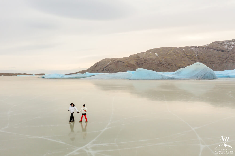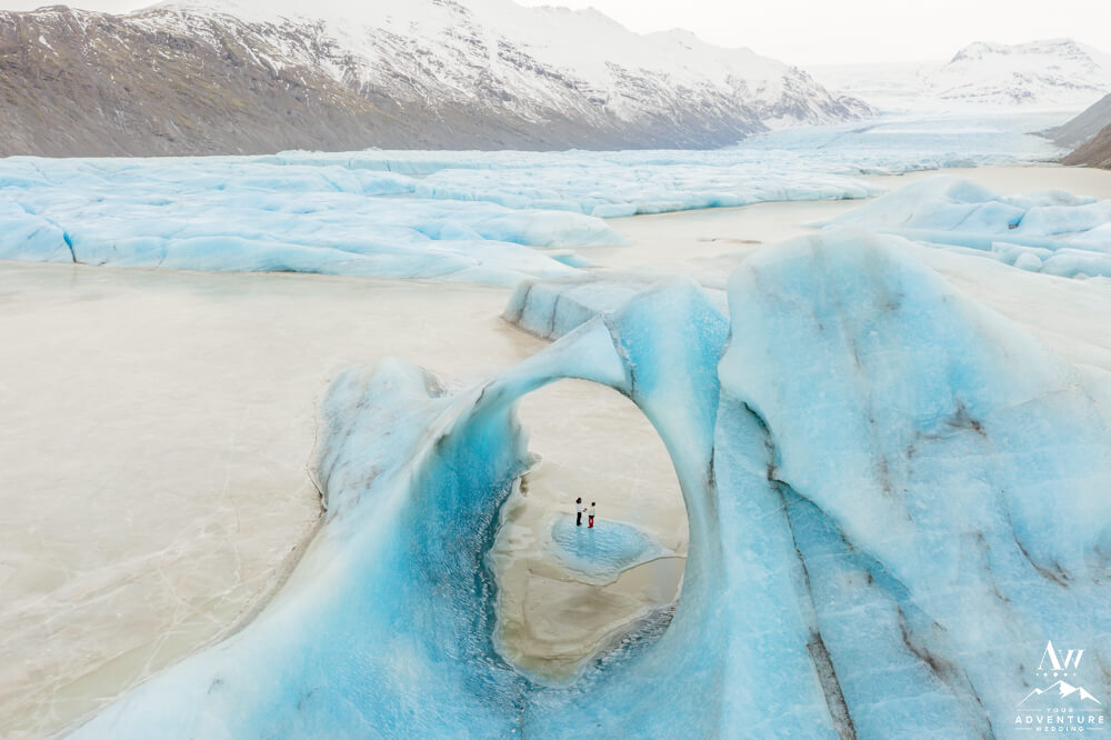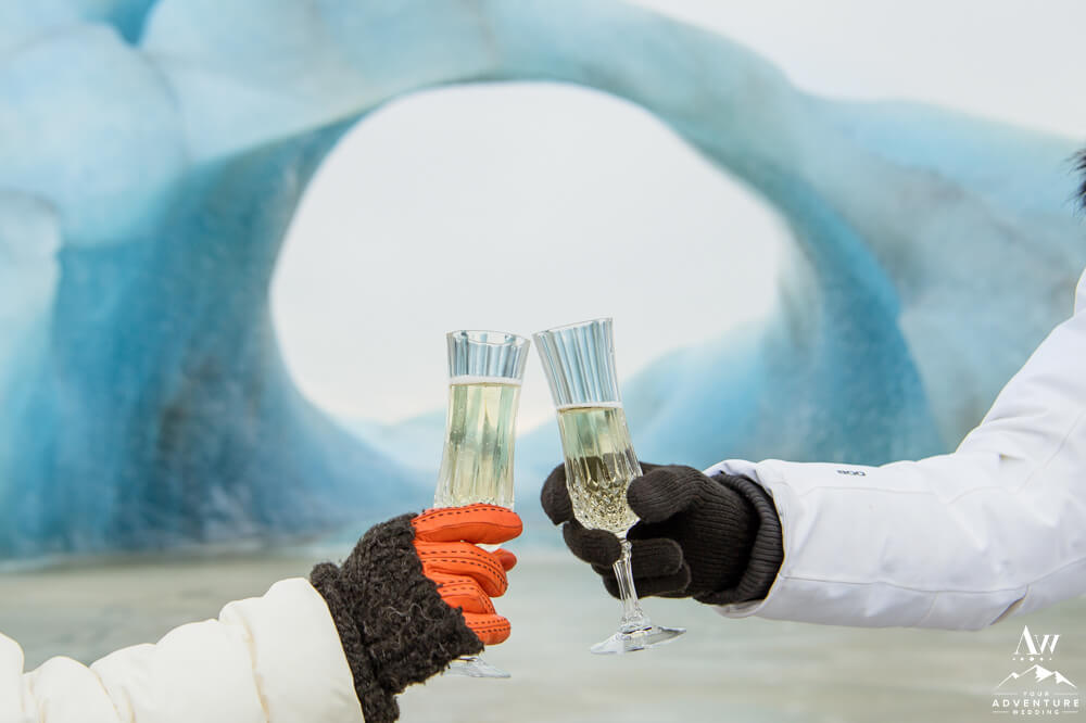 Continuing with the luxury ice cave proposal experience, our Iceland Wedding Planner team popped open a bottle of Dom Pérignon!  After all who wouldn’t want to share a bottle of bubbles at such a unforgettable place and moment in time!!  Further, Iceland engagement photos followed including some incredible drone shots!