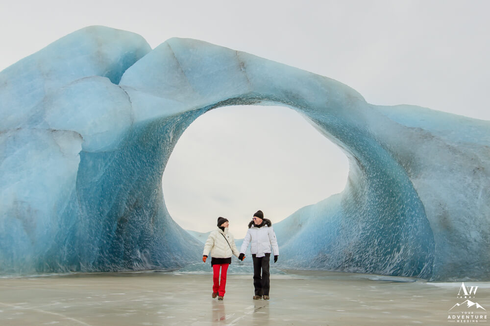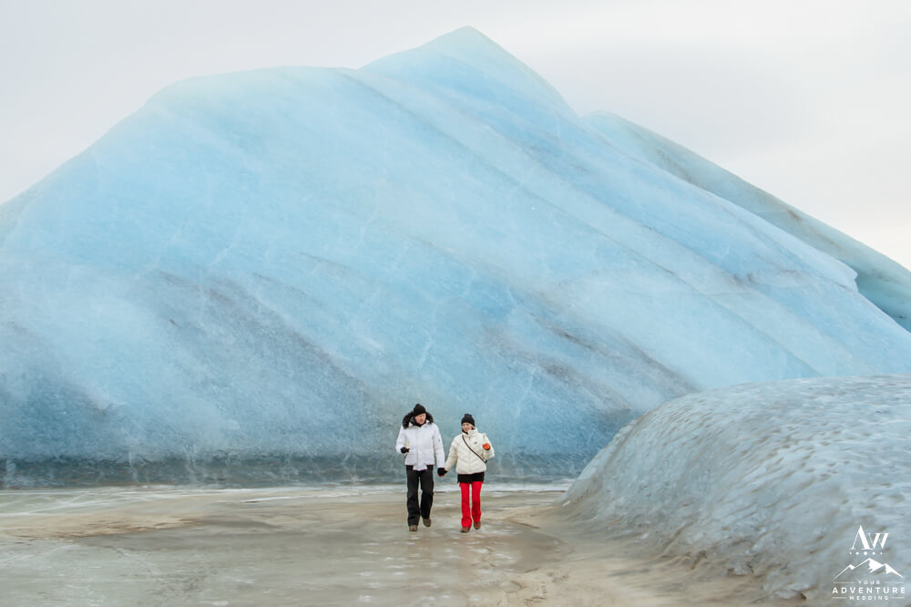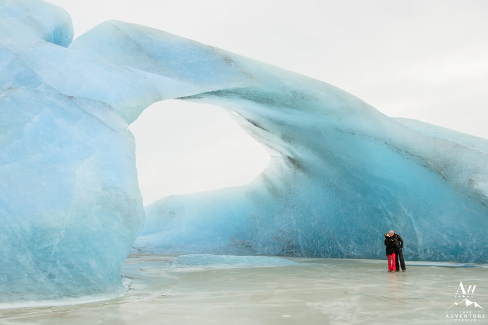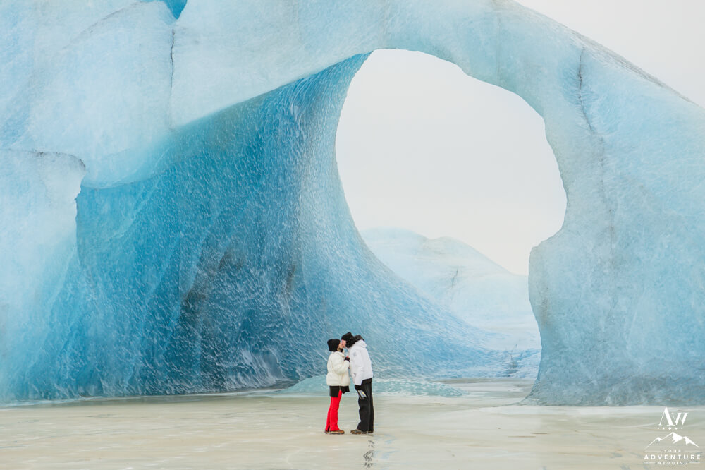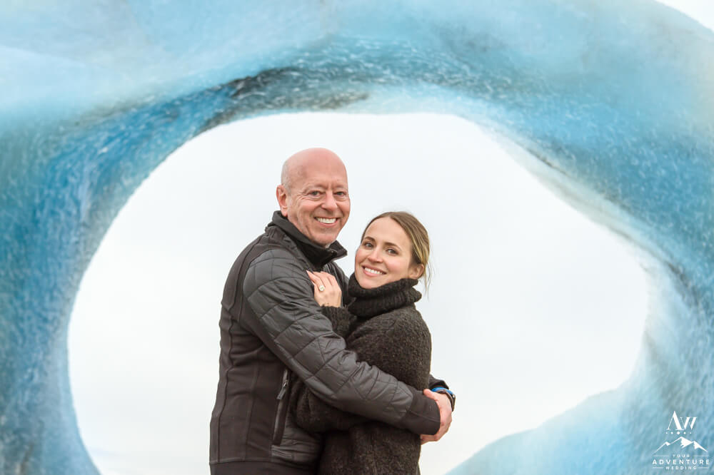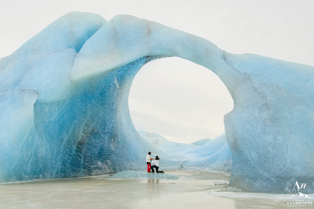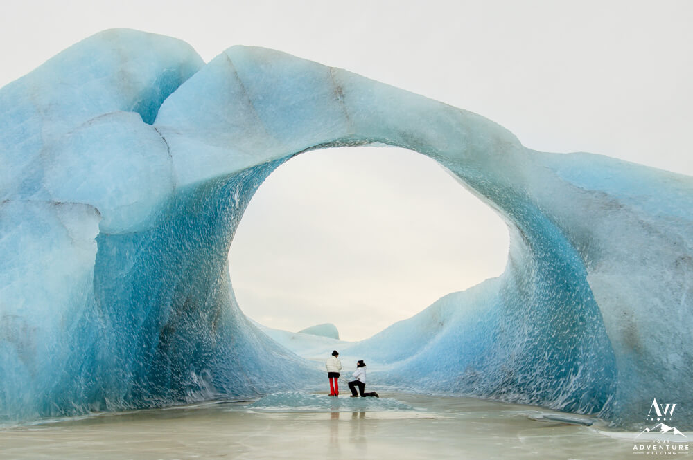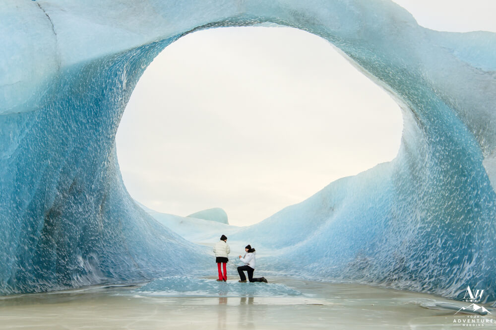 Additionally, Mayes still had no idea that the other couple were from our team and going to forever document her big lifetime moment!  To illustrate, then as planned Michael led her closer to the ice cave…  Mayes was looking around taking her own photos and Michael dropped to one knee.  Instantly when she turned around she was in utter disbelief that this was happening!  Of course she said yes and they spent time exploring this magnificent location!