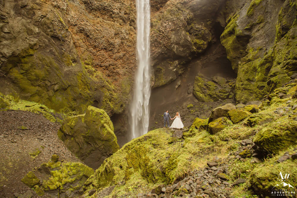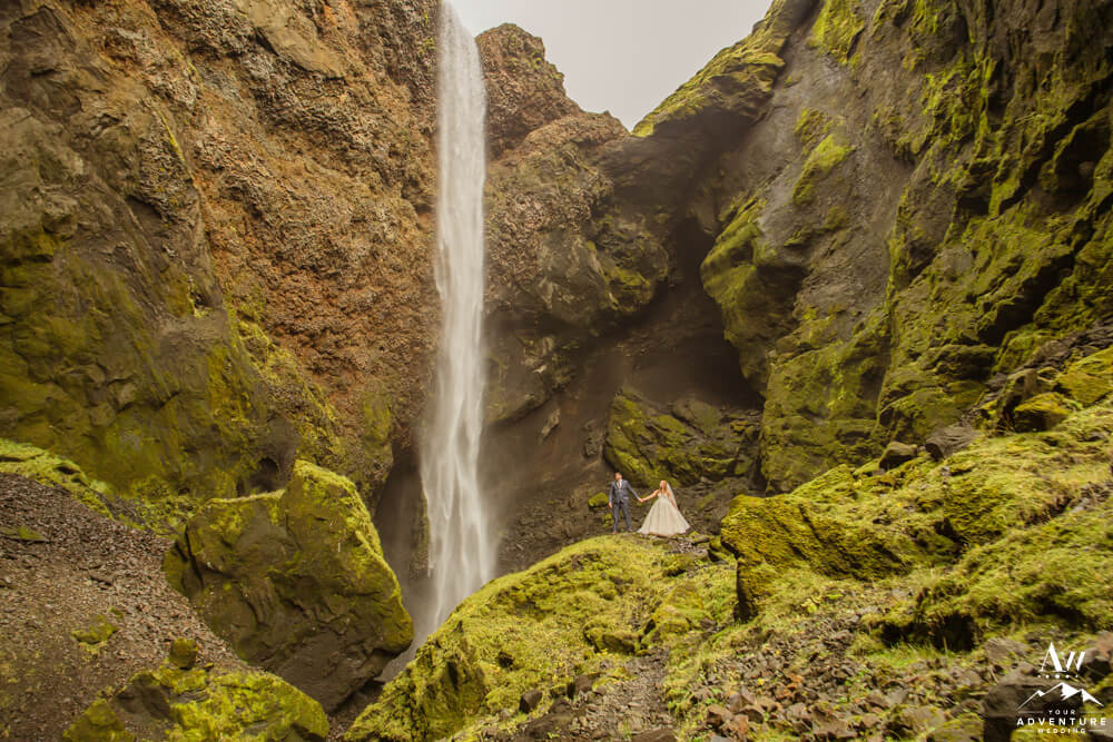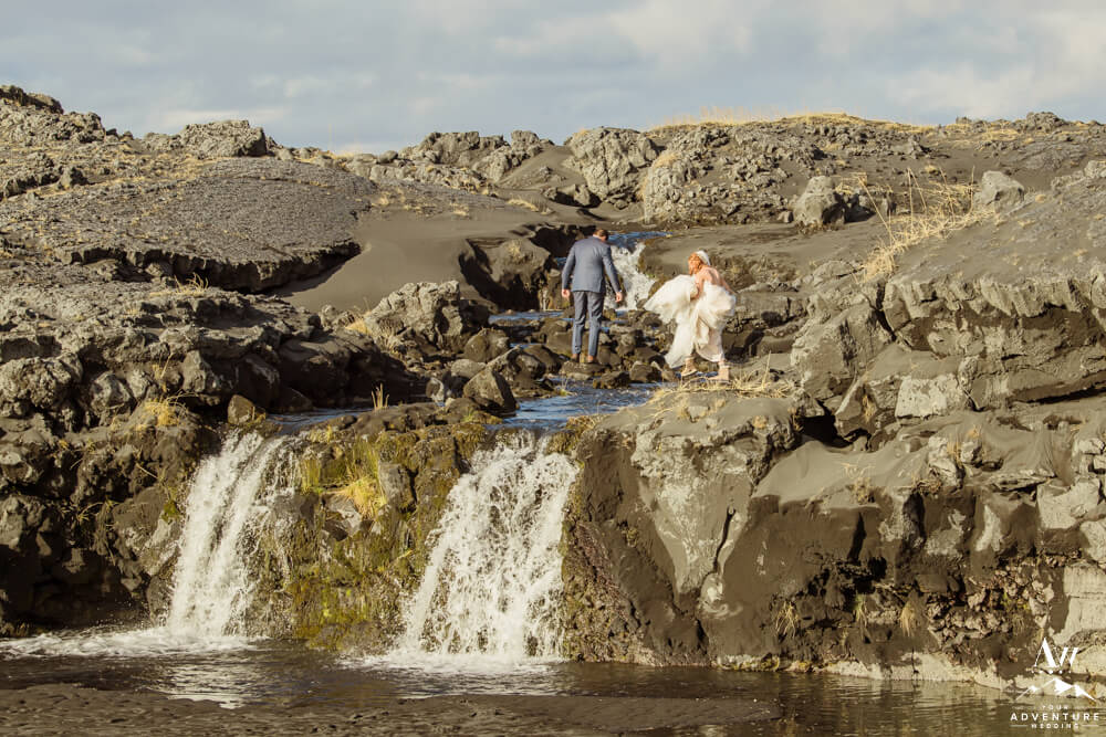Often couples who love the outdoors, want to have hiking incorporated into their elopement. Therefore, next on Ryan and Megan’s October Iceland elopement was heading to a waterfall in the highlands! Further, these two thoroughly enjoyed the trek, the views, and the cuddles!