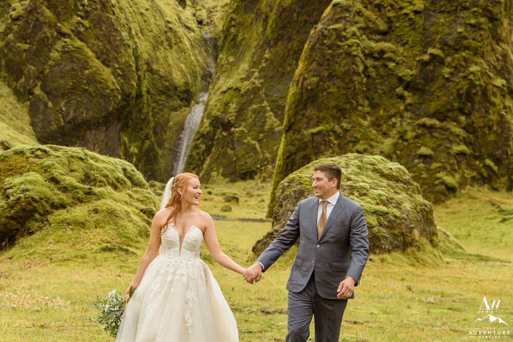 Rain, mist, fog, and low clouds make for unique fall landscapes. Why? Because they add a level of mystery to where you’re going and what you’re exploring. After all, if you cannot see the mountain and it suddenly appears, it’s pretty darn inspiring! Then add in the fact it’s cold outside, it’s the start of snuggle season and you have an uber romantic day together. Further, all of these elements set the scene for the sweetest, yet interesting October Iceland elopement!