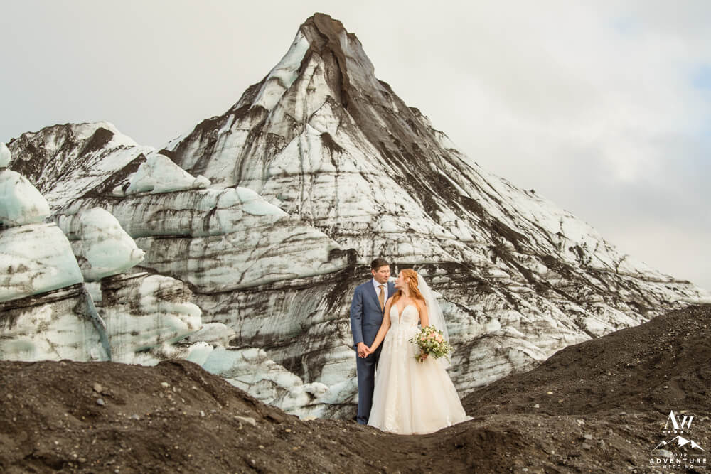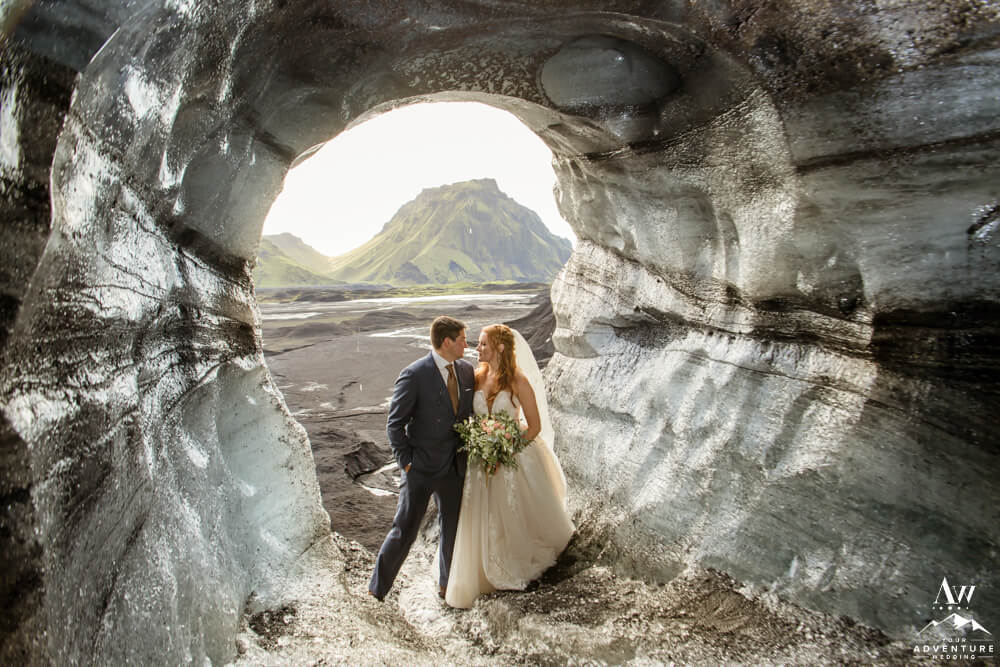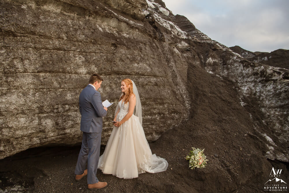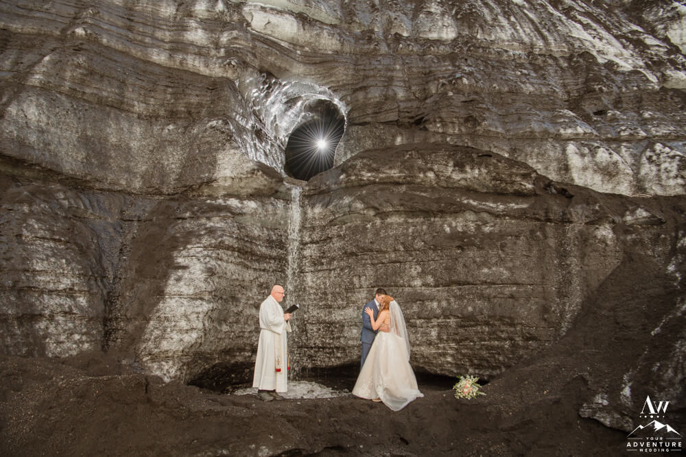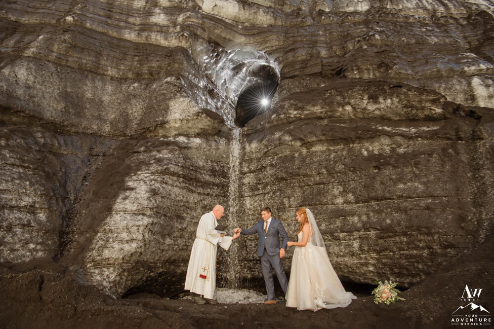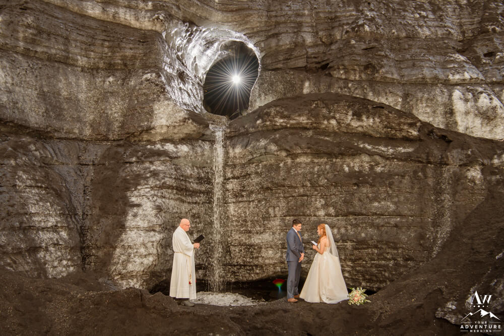 To illustrate, photographically the best location was in front of an ice cave. As the tunnel opening was too small for 3 people plus an Iceland elopement photographer. Therefore, the soon to be newlyweds held a intimate October Iceland elopement ceremony underneath an ice cave which included personal vows and exchange of rings. And it was oh-so magical!
