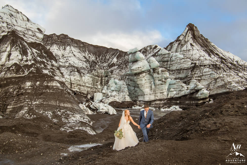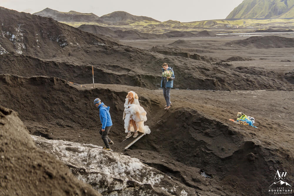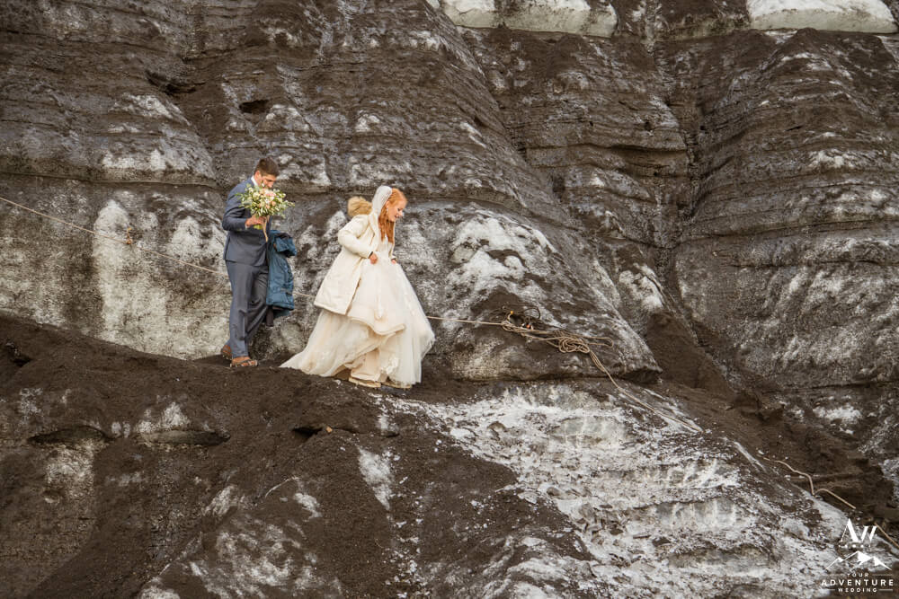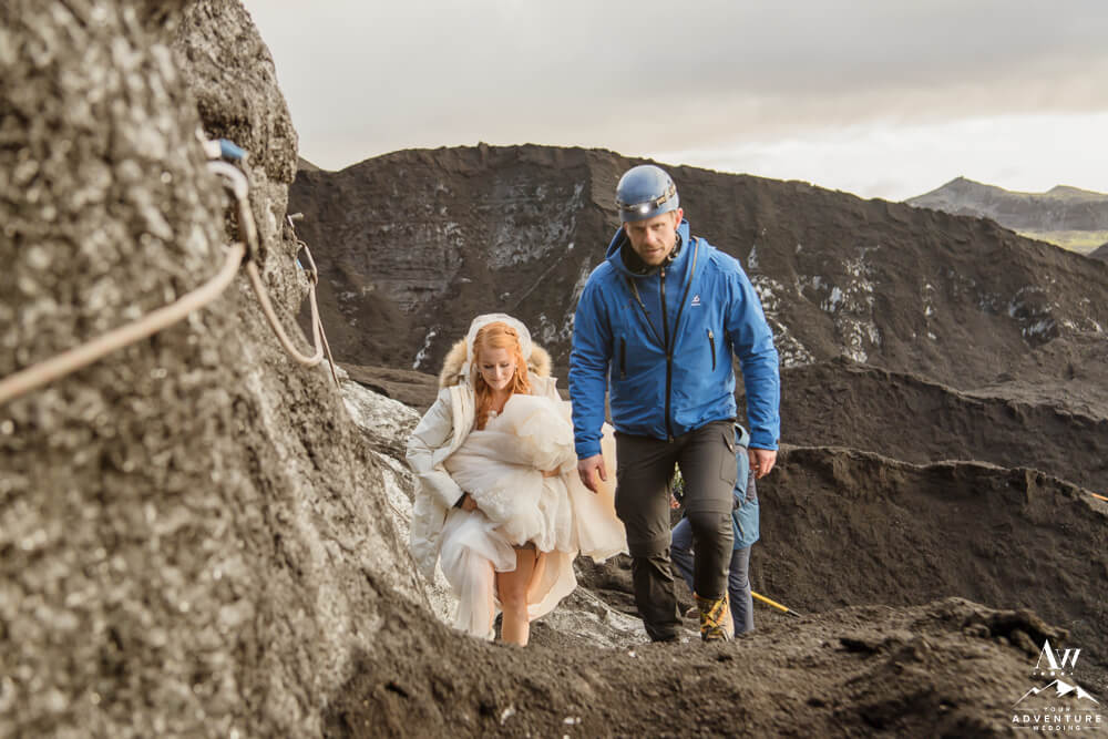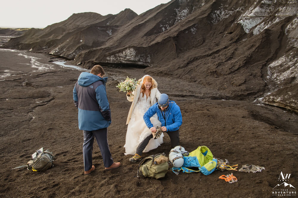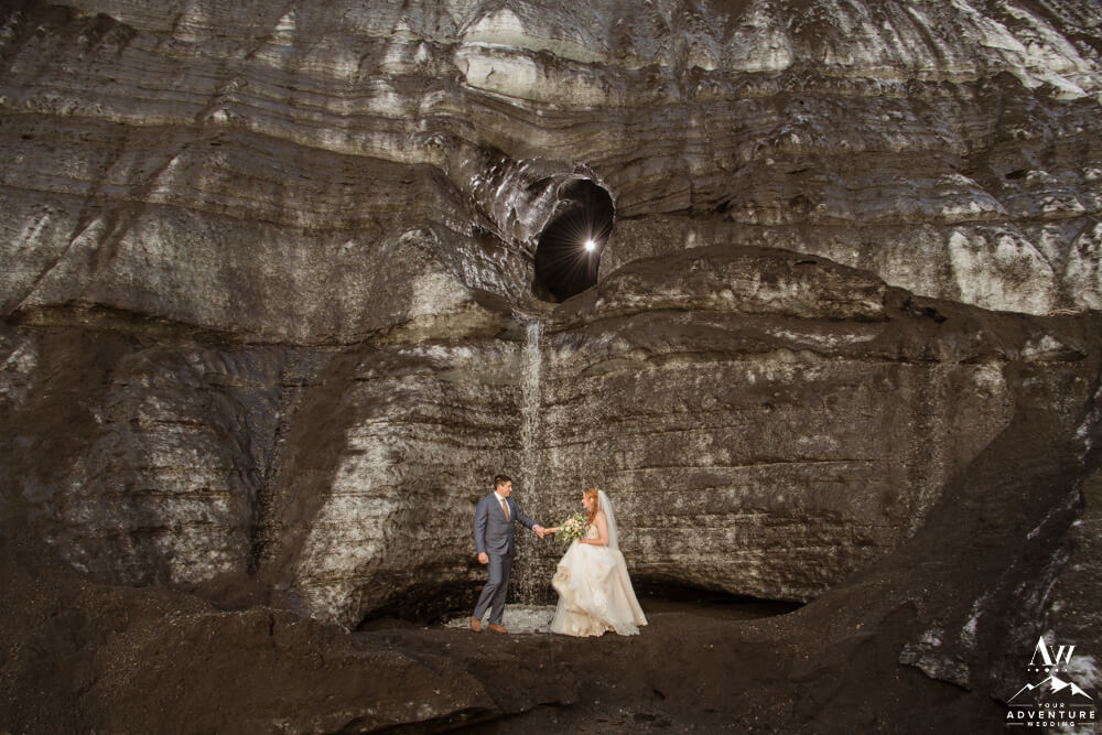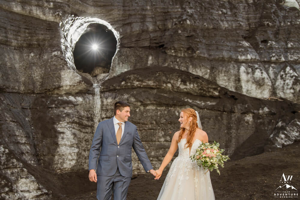 When planning an ice cave wedding, it’s important to remember the area is alive and ever changing. Likewise, you need to remain flexible in regards to locations. But being enthralled by any glacier features, Megan and Ryan leave it to our team to devise the perfect spot. Our team took into consideration their desired adventure level. Next, the week leading up to their day, we scouted the area to decide what our Plan A, B, and C would be.