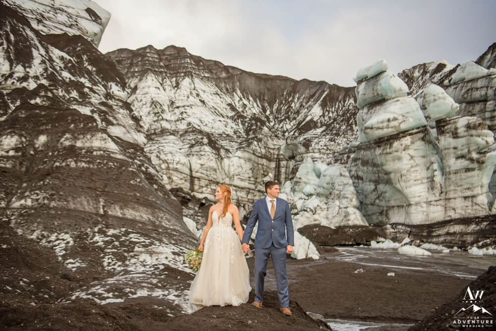 Following their October Iceland elopement ceremony, these two went exploring! First, they realized how unique their ceremony spot is! Second, they hike up to experience their first ice cave together. Third, trekking further around they see other intriguing glacier features. And they had so much fun discovering these rare places!!