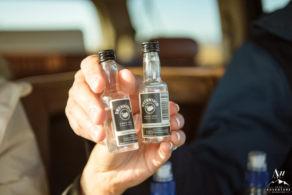 At the end of the night these two tried hunting for Northern Lights. But no avail as it was just too cloudy. So they just enjoyed the kransakaka tradition instead! Ready to potentially plan your own October Iceland elopement? Please contact our expert adventure wedding planning team to get that convo started!