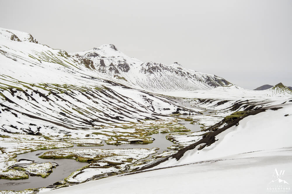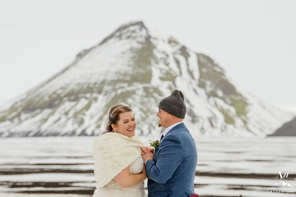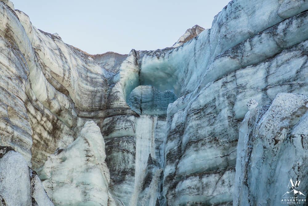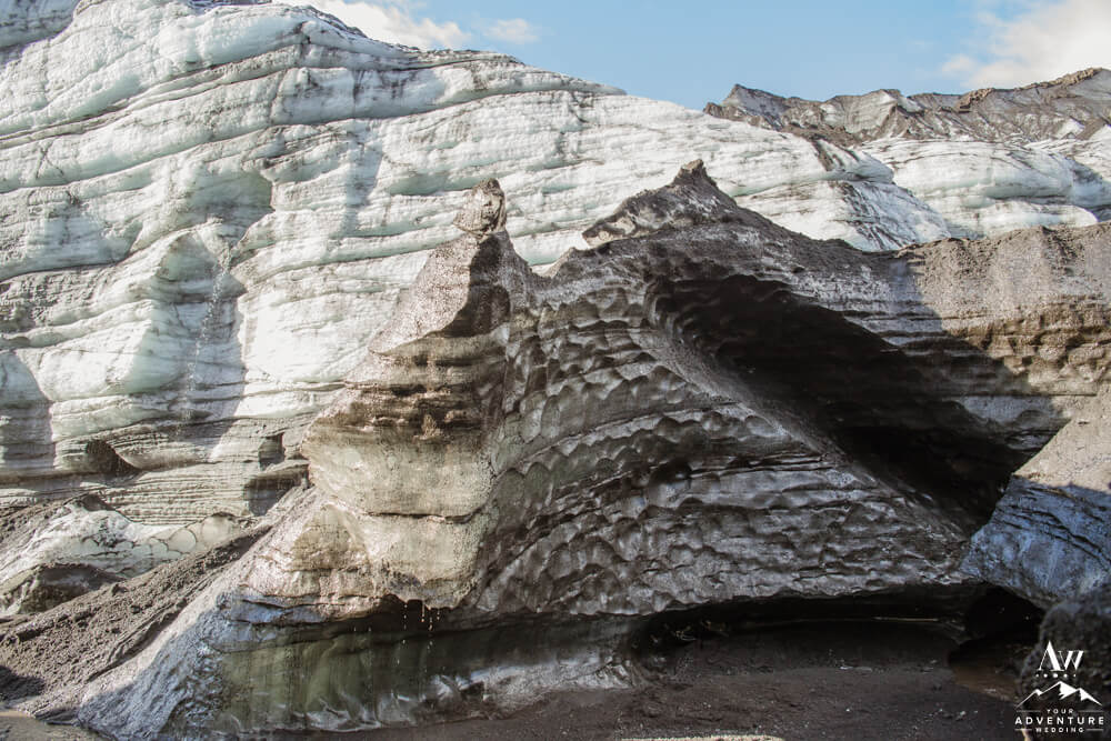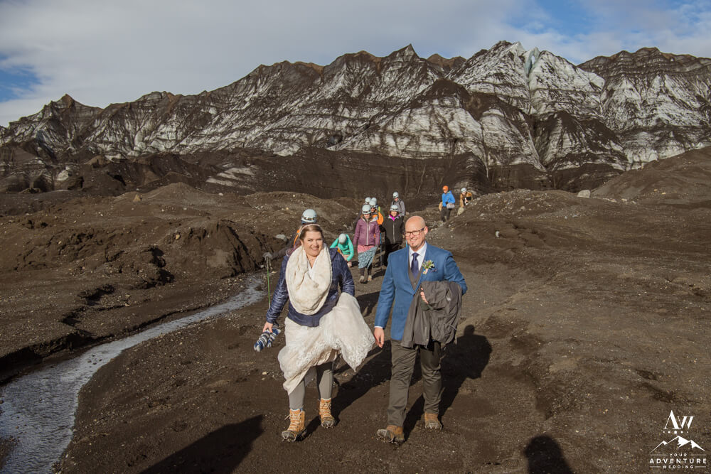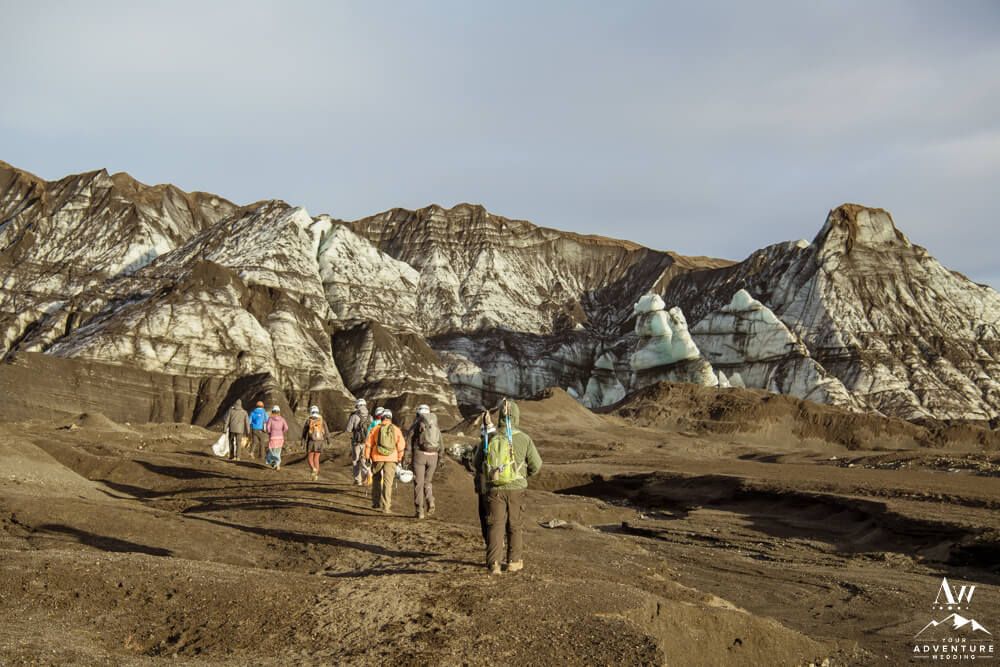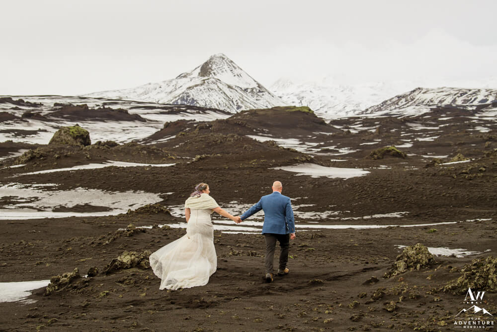 Did you know Iceland’s forth largest glacier is named Mýrdalsjökull? Further, there are many outlets that emerge from it, both touristy and not. However, most outlets require special transportation like a super jeep or helicopter to access safely. Also, this glacier has a sleeping giant beneath it… Katla Volcano. Therefore, it is fitting that we share with you today a Katla Glacier wedding adventure!