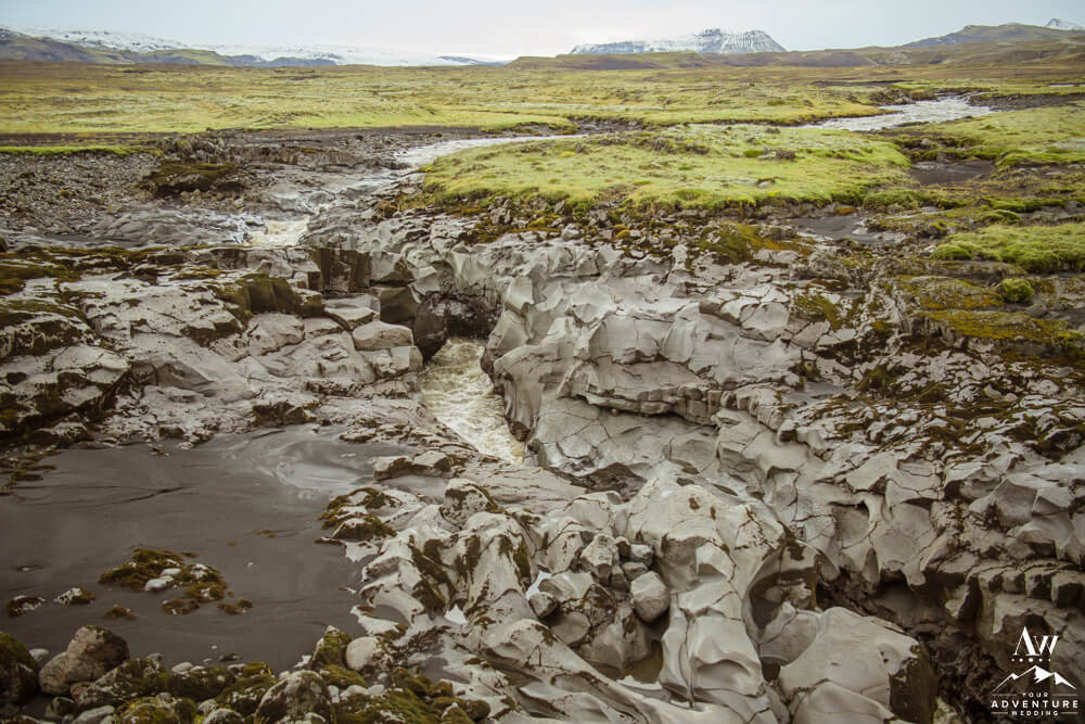 Meanwhile the group were enthralled by the scenery they encountered on the ride up to the glacier! Upon arriving our team equipped them with helmets, crampons, and specific directions. Why? Because glacier quick sand is a thing, believe it or not!