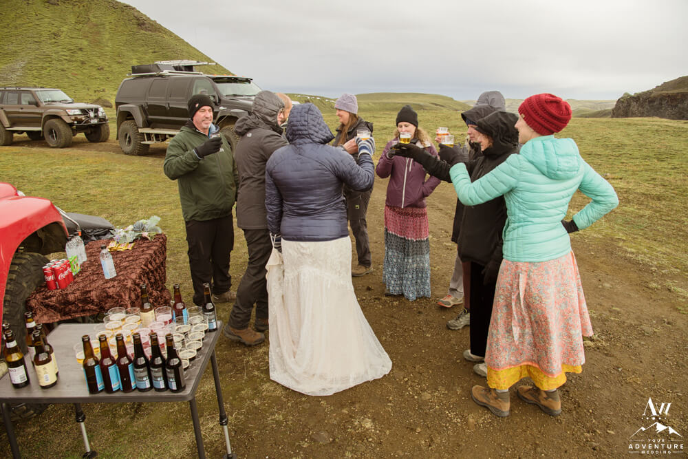 Can you imagine having a BBQ and a curated Icelandic beer tasting at a magnificent highland waterfall? It’s possible! After all, when you hire our Iceland Wedding Planner team we specialize in unique experiences! But could this waterfall top their Katla Glacier ceremony? Likely not but judge for yourself below 😉