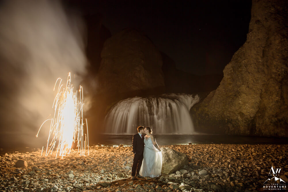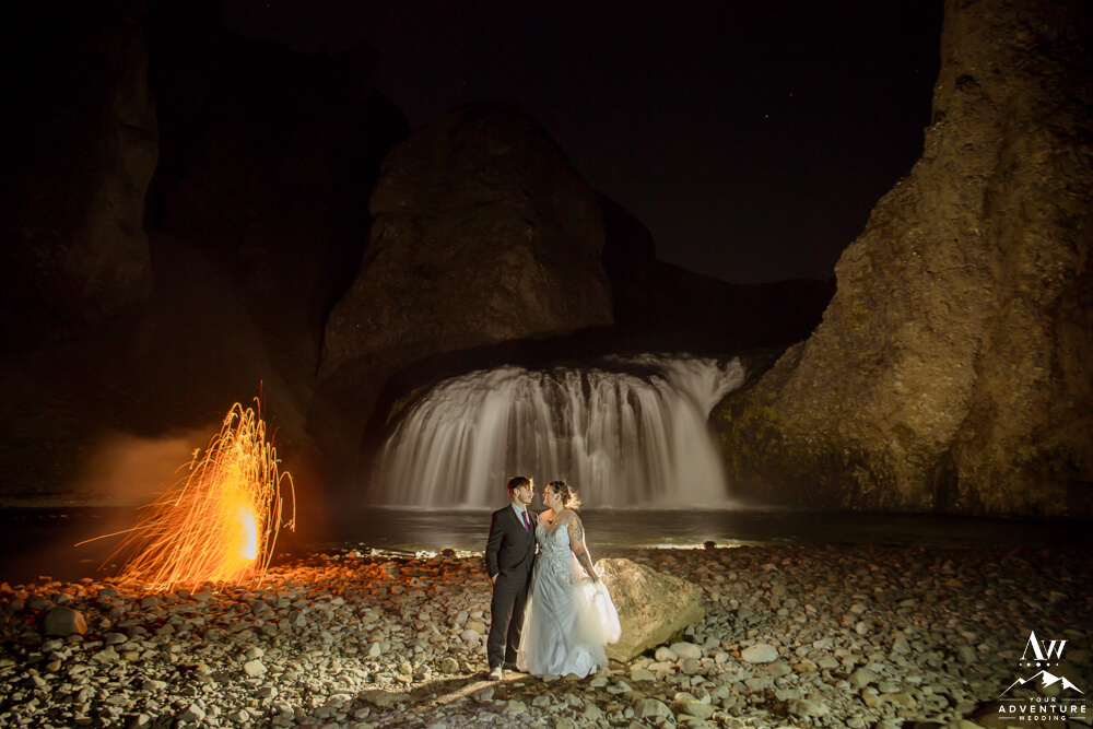 Lastly, the weather in Iceland does not always cooperate when it comes to Northern Lights. There are other cool things to do to end the night! For instance, waterfall exploring, at night! Add in a ground firework or two, some lights, and an adventurous couple and BOOM, MAGIC happens!