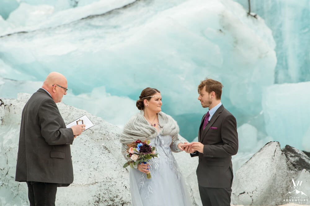 Next, Ashley and Zach shared with each other lifetime oaths they intend on keeping too! Once the ceremony was finished the newlyweds toasted each other and explored this breathtaking glacier area…