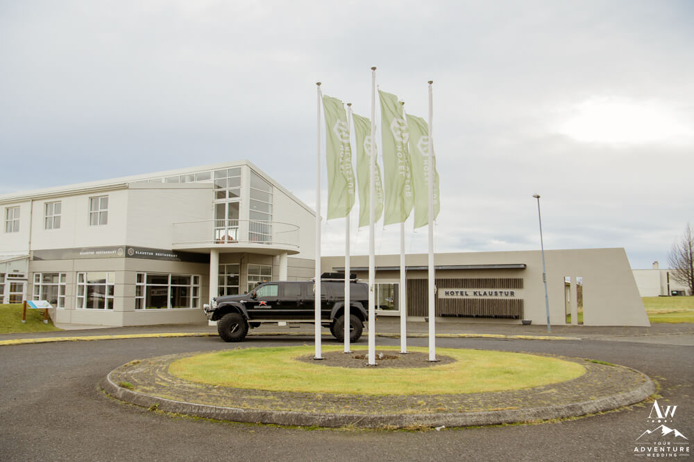 Next, like many couples who were scheduled to get married in the Fall of 2020, these two had to make the hard decision of rescheduling. But then it would make October 19th 2021 that much sweeter when it finally came! And when the day arrived, it began at Hotel Klaustur well before sunrise. Our hair, makeup and Iceland elopement photographer getting right to work crafting! Shortly before they were ready to load into the super jeep for their undiscovered elopement adventure, Ashley surprised Zach a day of gift.