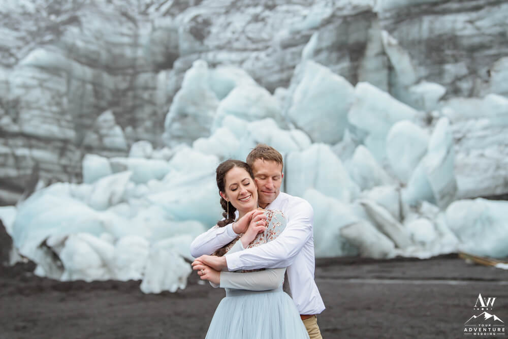 Next on Jess and Shawna’s day of eloping with no rules, they wanted to witness the beauty of the famed mountain from Star Wars Rogue One. Following enjoying that beautiful backdrop they wanted to experience Mýrdalsjökull glacier. But there was a race against time as the sun was tucked behind massive layers of clouds and was setting shortly too. However that excitement just added to the adventure. Meanwhile, these two discovered an ice cave and a stunning ice valley which was the remainder of a once massive ice cave in 2019.