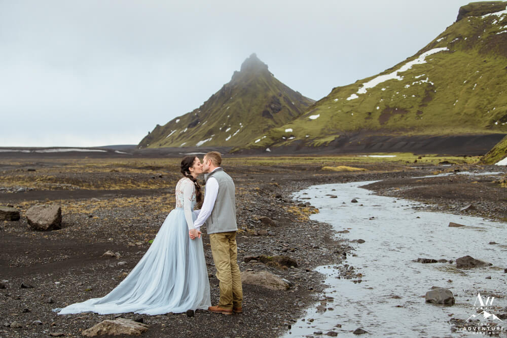 The morning began in Vik Iceland, with our teams wedding photographer capturing all of their alternative details. To illustrate, how bad ass is a blue wedding dress, painted combat boots and coat, plus Jess rocking outdoor gear instead of a formal suit?! No rules for eloping, bring it on!! After a quick first look and exchanging day of gifts, these two were on their way to eloping!