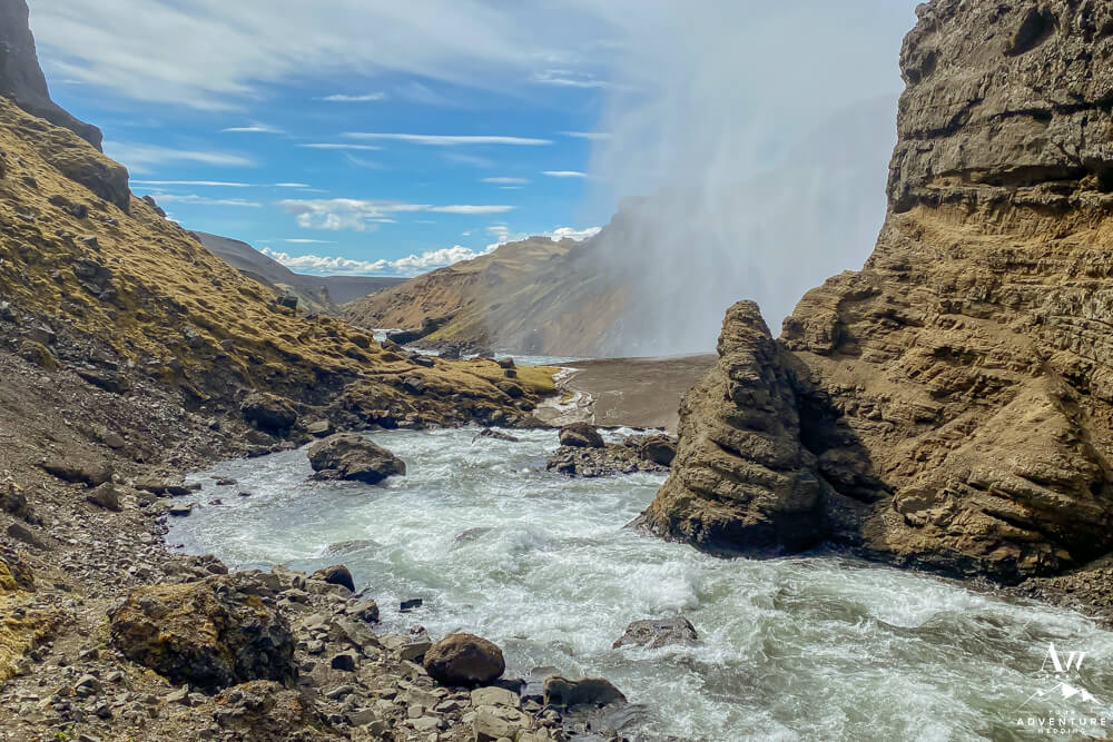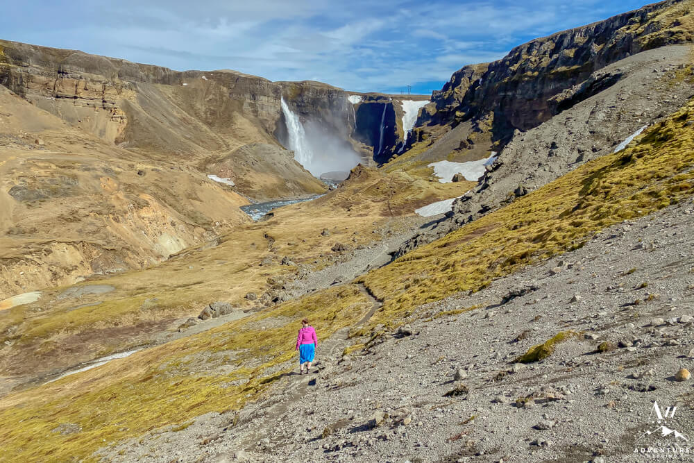 Meanwhile, keep the journey going and continue the hike further into the Háifoss Canyon to Granni Waterfall!  Personally, I prefer this view than the main… And far less people continue on too so maybe you’ll have it to yourself!
