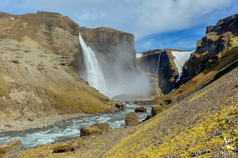 Next, back to the tall waterfalls in Iceland topic… If you do not have the stamina or the time to hike to Glymur Waterfall or Hengifoss then Háifoss is perfect for you!  But how do you get there and when can you visit?  Being in the south and on the edge of the central highlands, Háifoss is not a year round location if you do not have the right vehicle or knowledge of the area.  Meanwhile, here is the rundown of specifications to get you started…