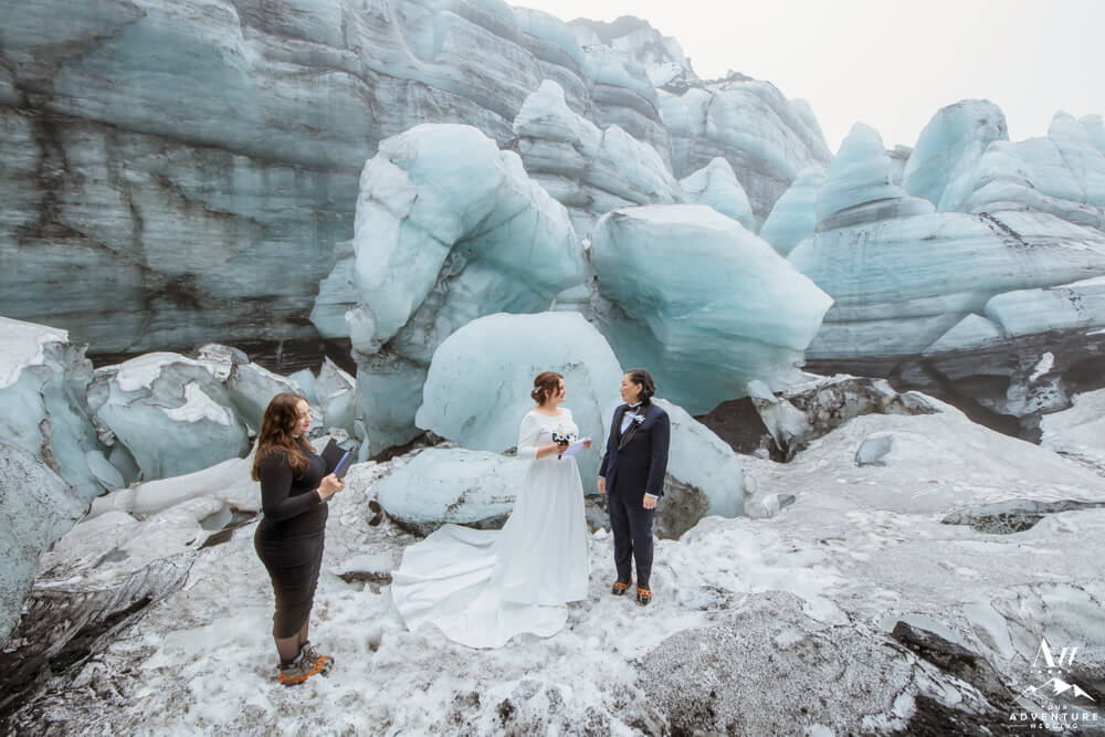 Over 400,000 glaciers across 50 countries line our little planet called earth.  So imagine being a couple who has to narrow down where their glacier elopement will take place.  Hard choice!  But luckily Iceland has 13 insanely beautiful ones to choose from!  And that brings us to our fabulous couple, Amie and Heather whose story we will tell today…