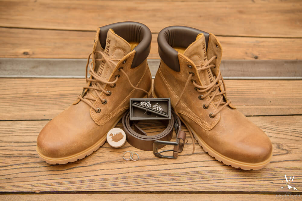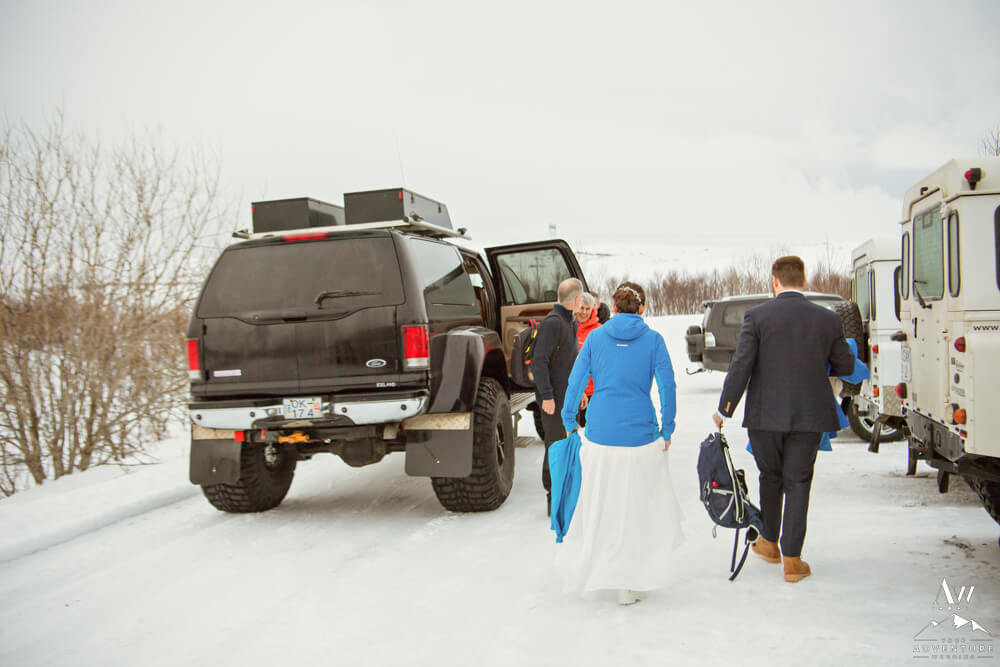 The morning began at a luxury house instead of a hotel and with our hair and makeup team dolling Marie up so she felt like a bride! Also, our Iceland wedding photographer got to work documenting all of their perfect details. For example, Marie had two wedding dresses and Steven had some handsome groom details too! Next, their group of of 15+ guests grabbed their “go bags” and loaded into the super jeeps for the day…
