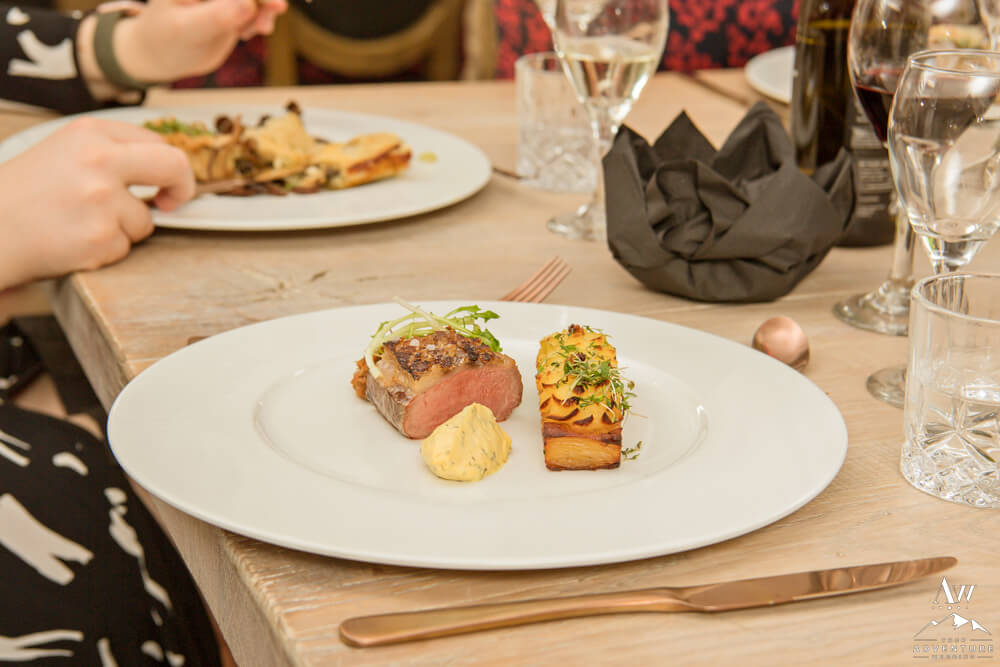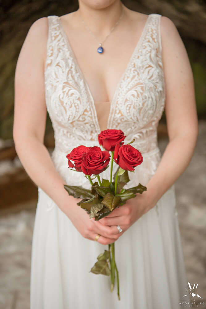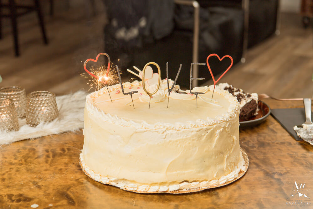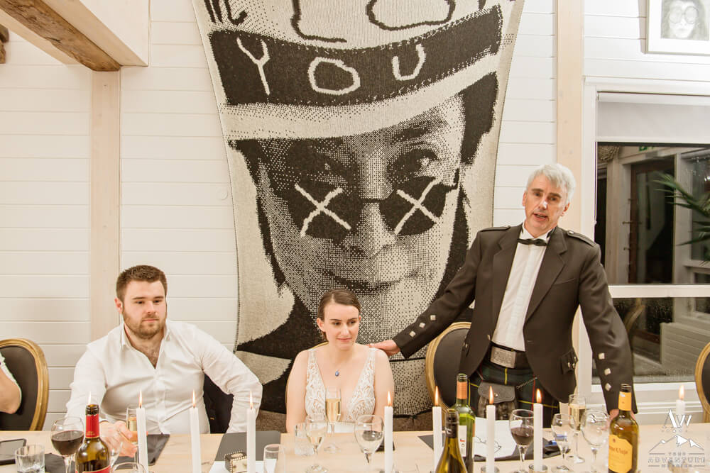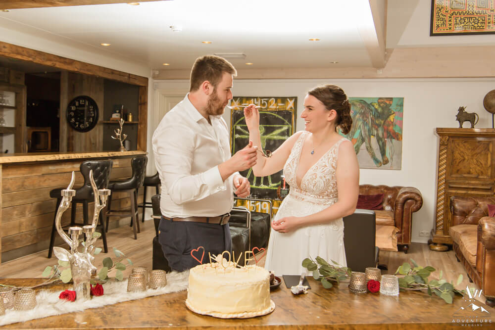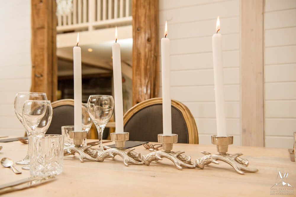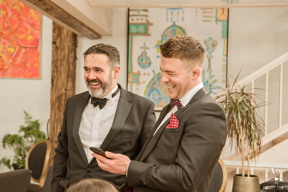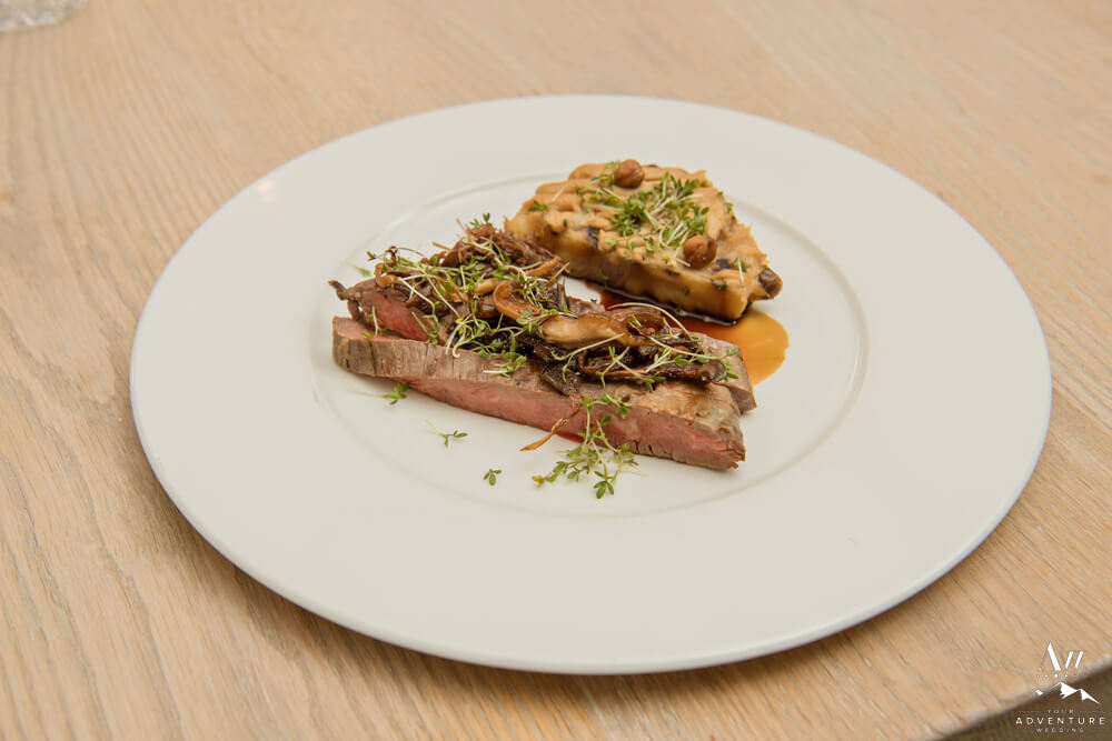 So upon returning to the lodge after the adventure day, they jumped in the hot tub while our team and catering team setup! The group delighted in a 4 course wedding meal that was truly a traditional yet culinary experience. Lastly, they ended the night with toasts, laughs, and make your cheeks hurt smiles! Inspired by Steven and Marie’s March wedding adventure? Please contact us to get an idea of what it would take to plan something similar!